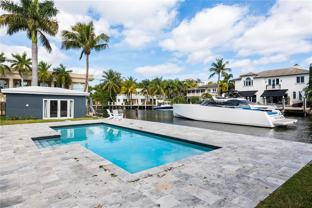 Perfect income producing home with verifiable numbers! Quiet & GATED neighborhood on the desirable community of Riviera Isles, just a short walk from the beach and Las Olas. The property includes main and a 1 bedroom guest house, a one of a kind private garden with a large heated pool and 100FT WATERFRONT with NO FIXED BRIDGES, easy ocean access. Highly required EAST EXPOSURE. Open floor plan, large impact windows. Kitchen with a Chef’s Island imported marble floors and countertops. Large French doors open up to a patio with BBQ and outdoor entertaining area. The houses on the left and right are also for sale. Come for this one, or see all of them! Endless opportunities.