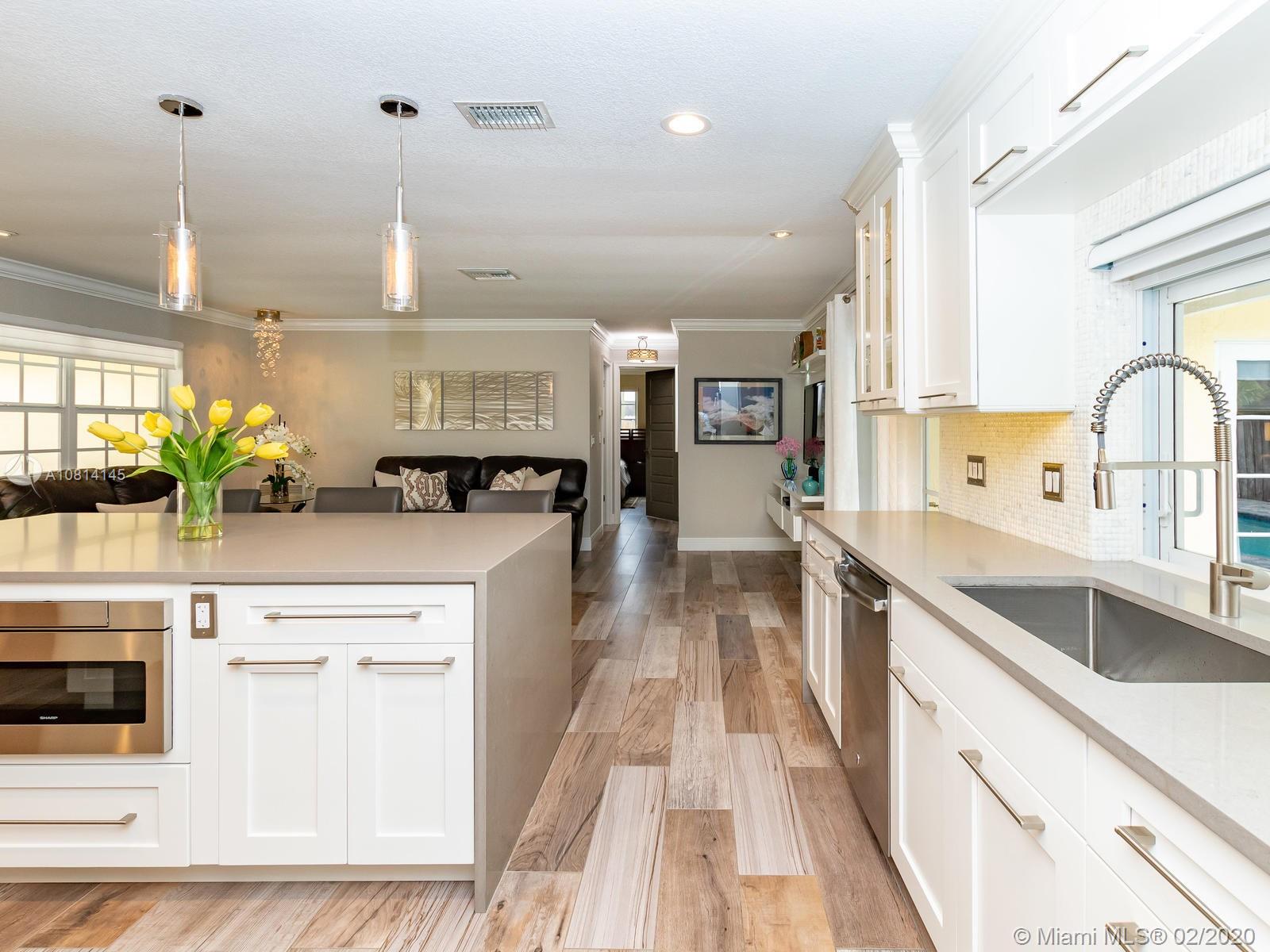 Wow,Wow,WOW!! This is what you've been waiting for! One story, 3 bed 2 bath, pool home in a cul-de-sac w/ impact windows & doors, +No HOA! This beauty was completely remodeled in 2017 & boasts a huge kitchen island w/ tons of storage & waterfall quartz countertops, mother of pearl backsplash & top of the line appliances. There are stunning tile floors & Hunter Douglas window treatments throughout. Both master & secondary bath have been beautifully updated. The master offers a massive walk in closet w/built-ins, + doors that lead out to the pool area. All new interior doors & custom designer closet doors in the 3rd bdr & hallway closet. Lots of paved outside space around your pool to entertain! Adjacent to the pool you'll find a large fenced yard,perfect for kids & pets!DON'T miss this one!