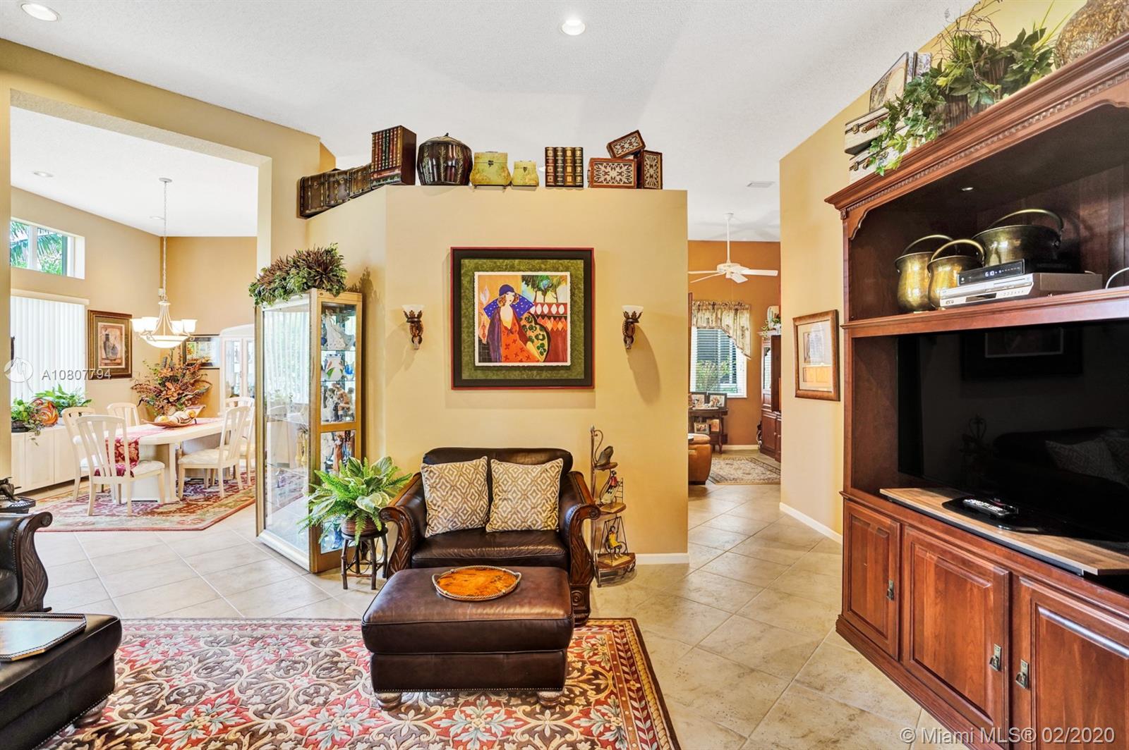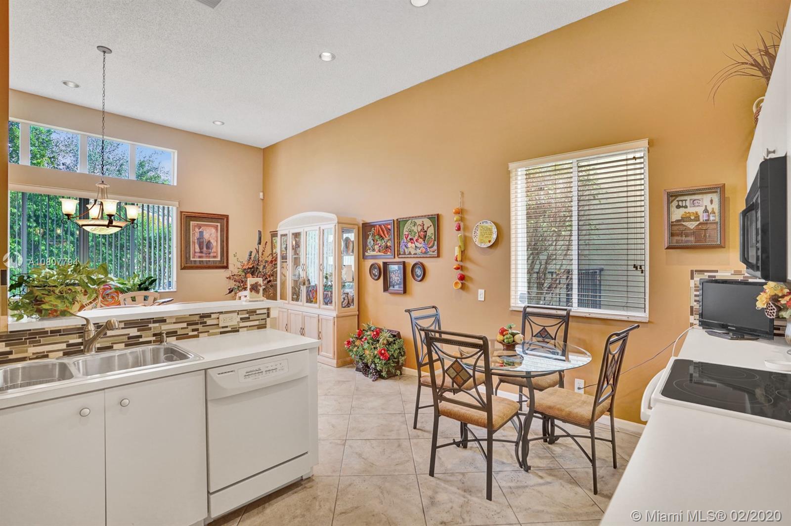 Pristine & beautifully maintained 3 Bed 2.5 Bath single story home w/covered patio (freshly pressure cleaned), located in desirable Camellia Island community. Home offers Spacious floor plan (see attached), with high ceilings & recessed lighting throughout. Open kitchen concept with breakfast bar & eat-in kitchen area meticulously maintained & clean. Master has large walk-in closets and spacious master bathroom including shower and tub. Other features include full accordion shutters, Brand new hot water heater, updated washer/dryer, updated AC, & more. Low quarterly HOA includes guard gate, securing community, Child play area, Basketball court, sand volleyball court. Close to Weston Town Center with restaurants, shopping & more. A+ schools! Seller is leaving home warranty as a bonus.