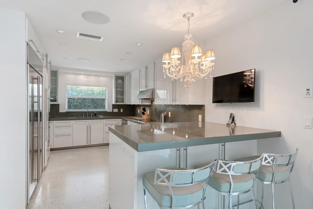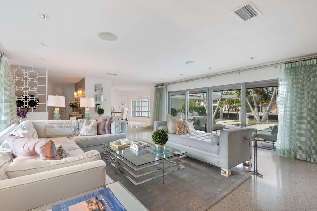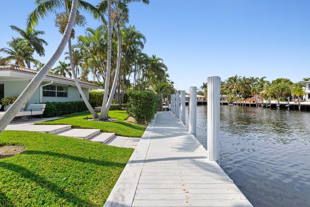 Waterfront Living at its Best! A stunning and remarkable renovation has created this truly drop dead gorgeous home in the heart of Coral Ridge. Designer furnishings throughout available separately for turn-key purchase. Amazing top to bottom renovation featuring high impact windows and doors, smooth ceilings with recessed lighting, high-end finishes and fixtures, luxurious en suite bath in every bedroom, large living room, unique circular dining area, and exquisitely updated kitchen. Views to the resort like pool area and waterway from most every room!. Preferred East of Bayview location with 100' of deep-water dockage in the Bayview School District. Convenient to Beaches, Galleria Mall, Shopping, Dining, and minutes to Downtown Fort Lauderdale and Las Olas.