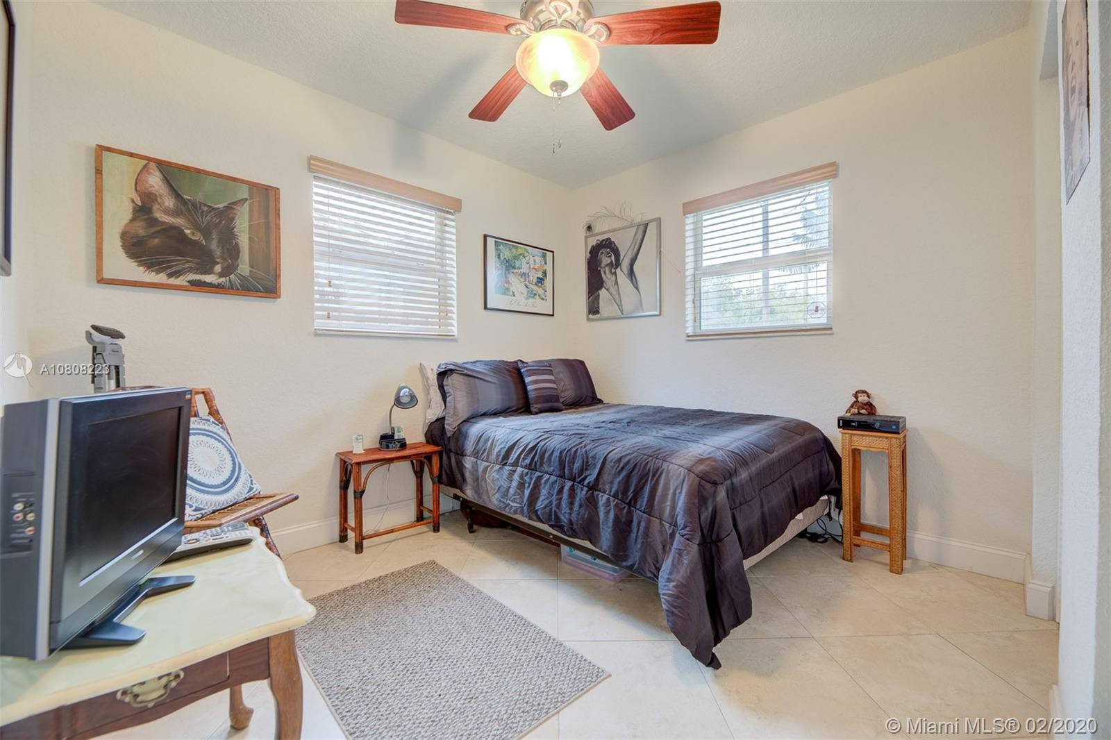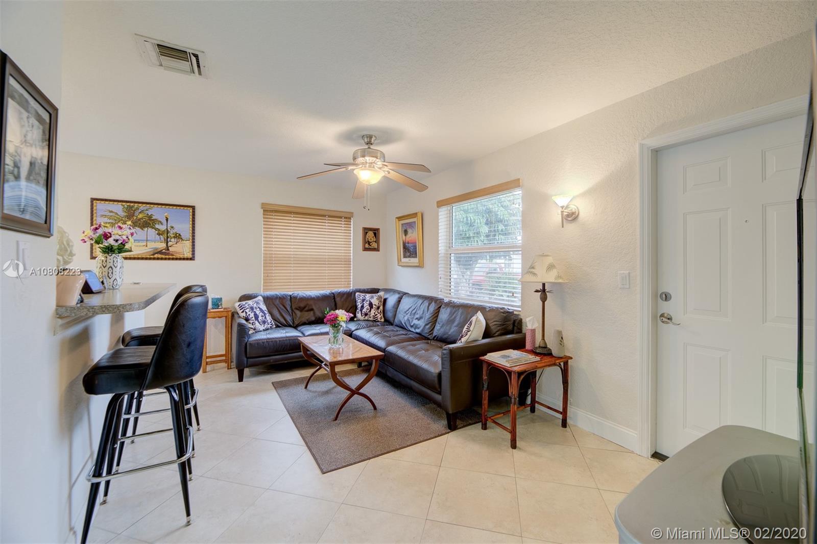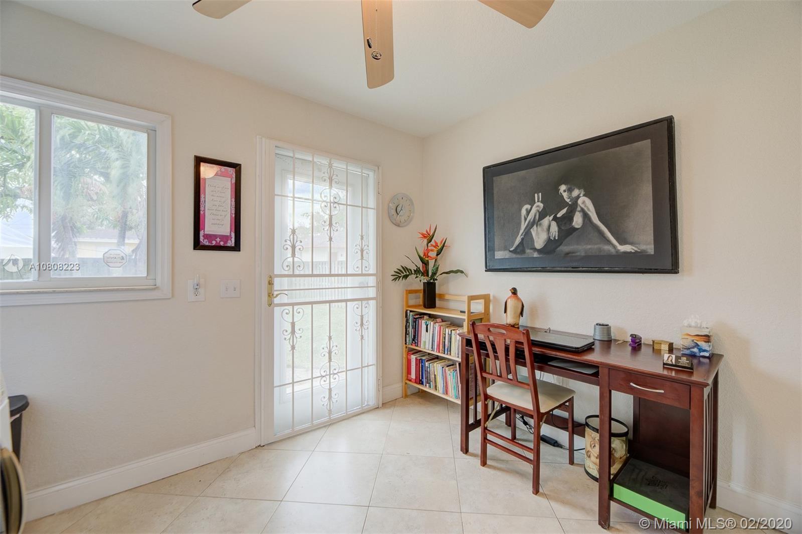 Cozy single family home located in a family oriented neighborhood with great neighbors. The home has 2 bedrooms, one bathroom and a bonus room which can be used as an office. Includes Central AC, and all appliances (microwave, range/oven, refrigerator, dishwasher, and washer/dryer). Very nice kitchen with open layout concept and high hat recessed lighting. Diamond cut tiles and textured walls throughout, fans and custom blinds in all rooms. Beautiful large fenced-in yard with fruit trees and a paver patio with walkways. Upgrades include hurricane impact rated windows with screens, roof gutter system and driveway. Close to major shopping center, highways and just seven miles from the famous Hollywood beach and boardwalk.