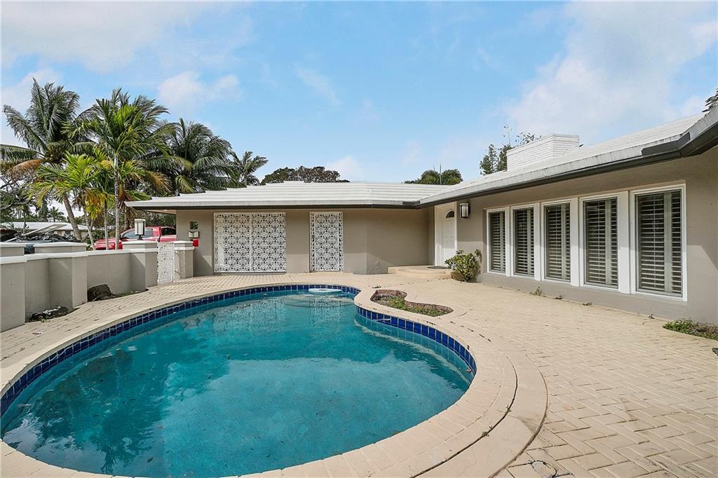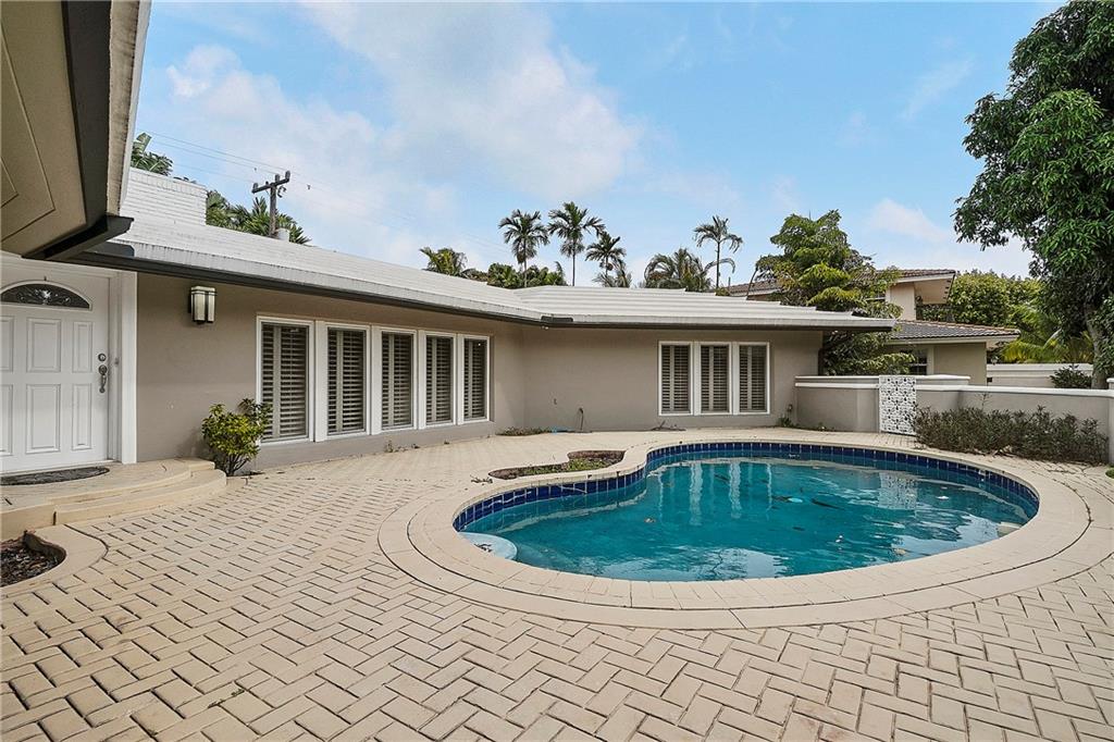 Incredible opportunity to own and remodel (or knockdown and build) on this OVERSIZED lot in the prestigious Coral Ridge neighborhood of Fort Lauderdale. Create the house of your dreams! Master bedroom with ensuite bathroom has been completely remodeled and current owner has floor tile to extend throughout main living area and other bedrooms. Large open-space floor plan combines the living area, dining room, and kitchen. Two large bedrooms are located on the east side of the house with the third bedroom located on the west side of the house, which creates a nice split. The house also features a split two car garage and a pool/patio. Included in the pictures is a design layout to make the bathroom in the third bedroom a guest bath and more accessible from the main living area.