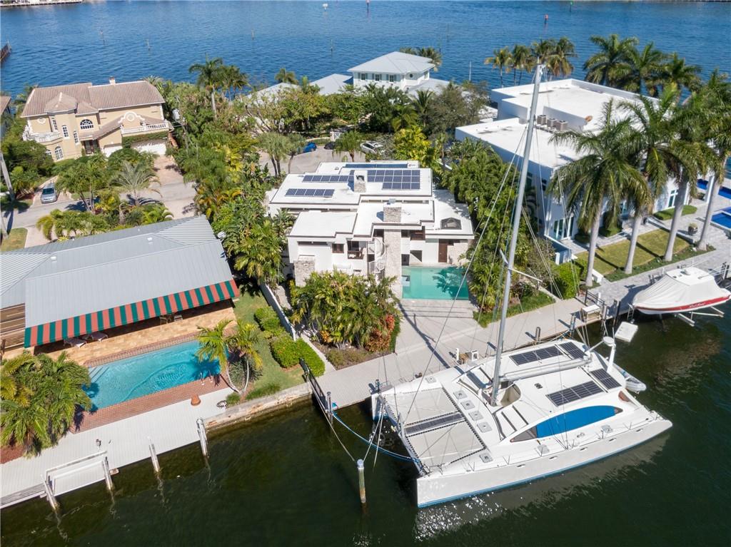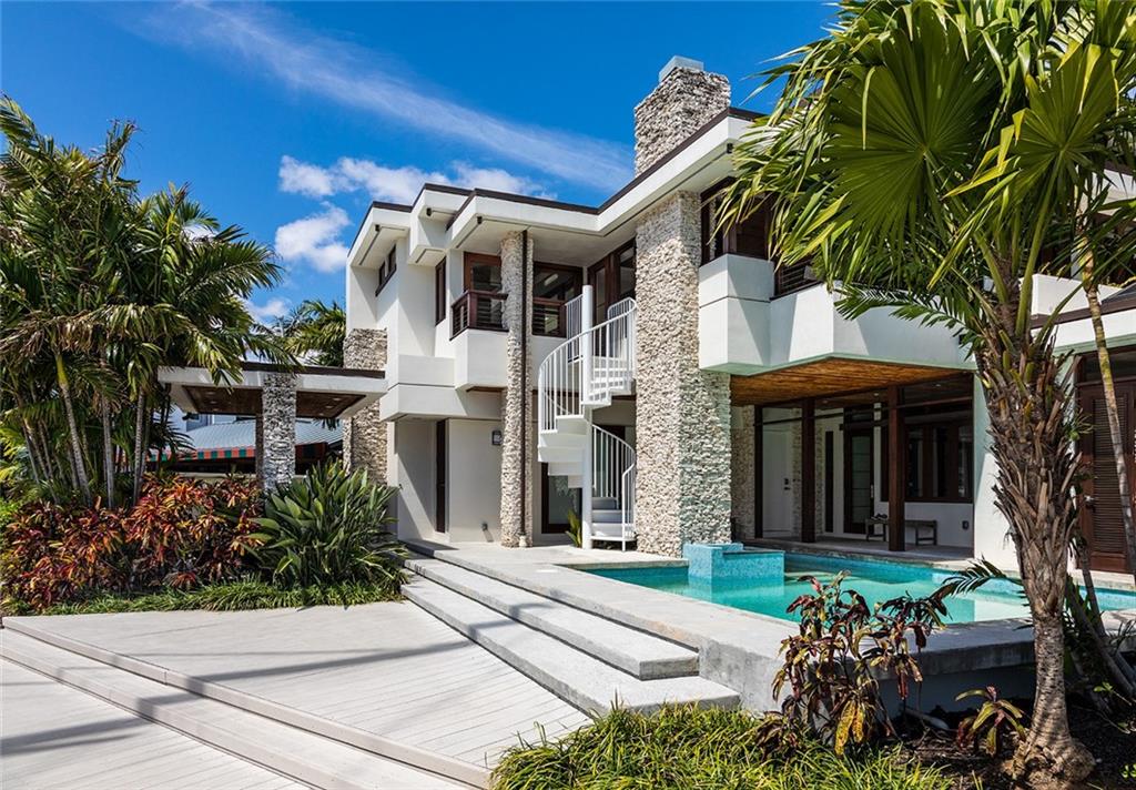 A rare opportunity to own the award-winning "Hanson Residence" that was inspired by Frank Lloyd Wright and designed by the noted architect Alberto Comas. This magnificent modern custom deep-water estate home was built with the finest architectural details & materials. A yachtsman's trophy dream home just one from the SE point of the Intracoastal & on a very wide canal. Just a "stones throw" to the Inlet/Atlantic Ocean. Amazing open water views & enjoy the Gulfstream breezes from this desirable SE rear exposure with great outdoor entertaining areas. The open living areas boast light & bright rooms w/ volume ceilings, double bedroom master suite, custom hurricane impact mahogany windows/doors, coral rock accents, stylish built-in furniture & more. PLEASE SEE THE ATTACHED 3-D VIRTUAL TOUR!