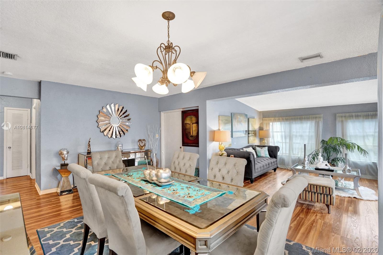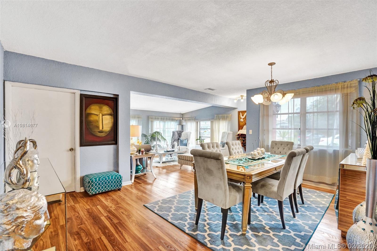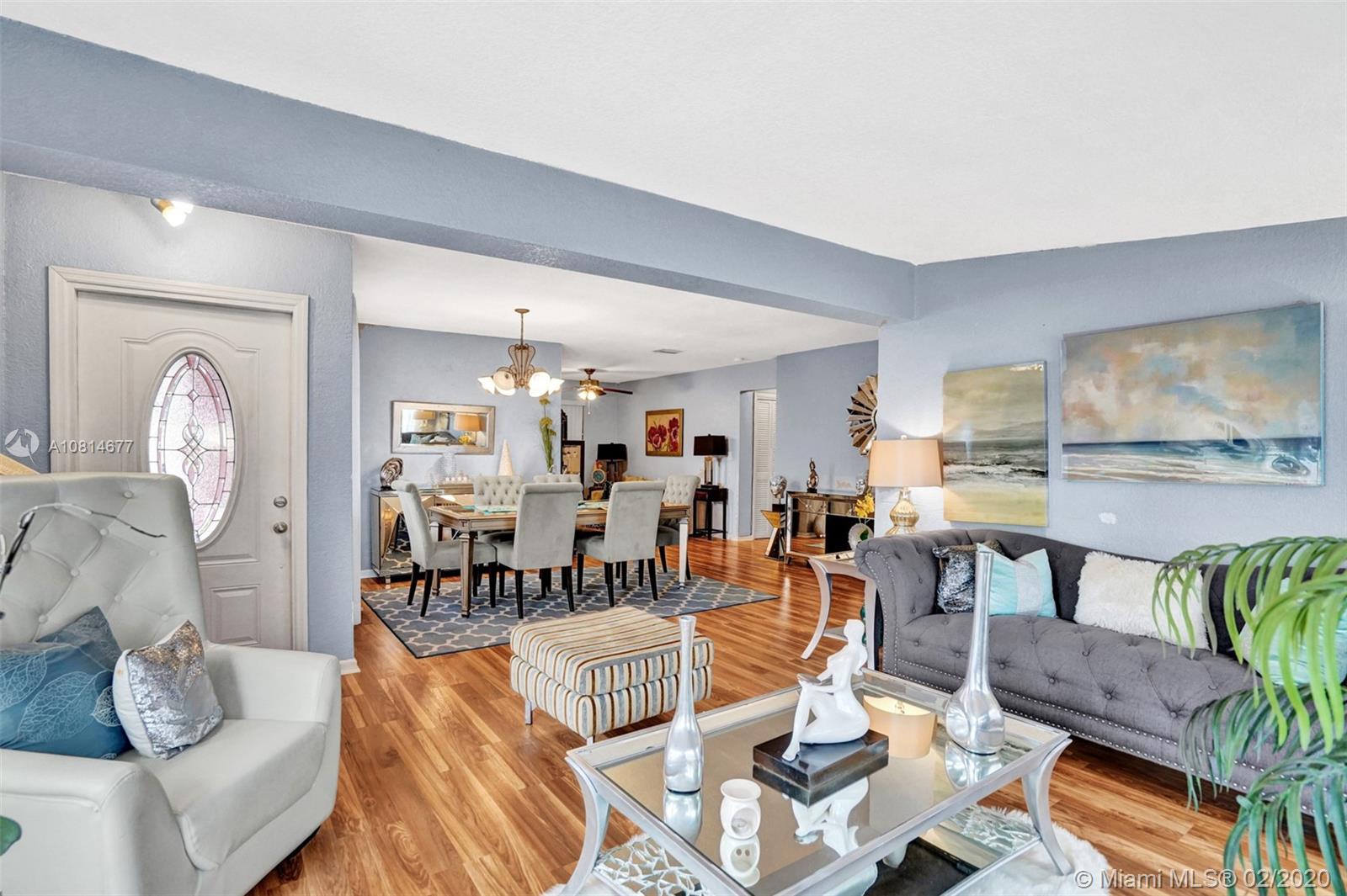 Walk into this bright open floor plan home. This beautiful home located in the sought out neighborhood of Pembroke Pines features four bedrooms, three bathrooms, one bathroom completely updated, new roof, new laminate wood floors, eat in kitchen with new white cabinets and stainless steel appliances.This home is equipped with new PVC pipes , a tankless water heater, accordion shutters, RainSoft water system throughout and a shed for extra storage. Master bedroom boost French Doors that lead into a magnificent serene large fenced in backyard with palm trees , pergolas, and a screened in patio. Great outdoor living space and great for entertaining. The circular driveway can accommodate up to six cars. Don't let this one get away!