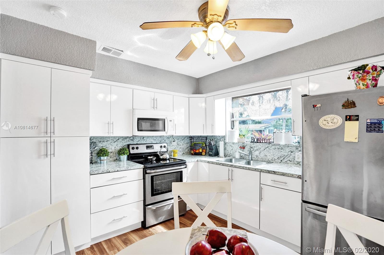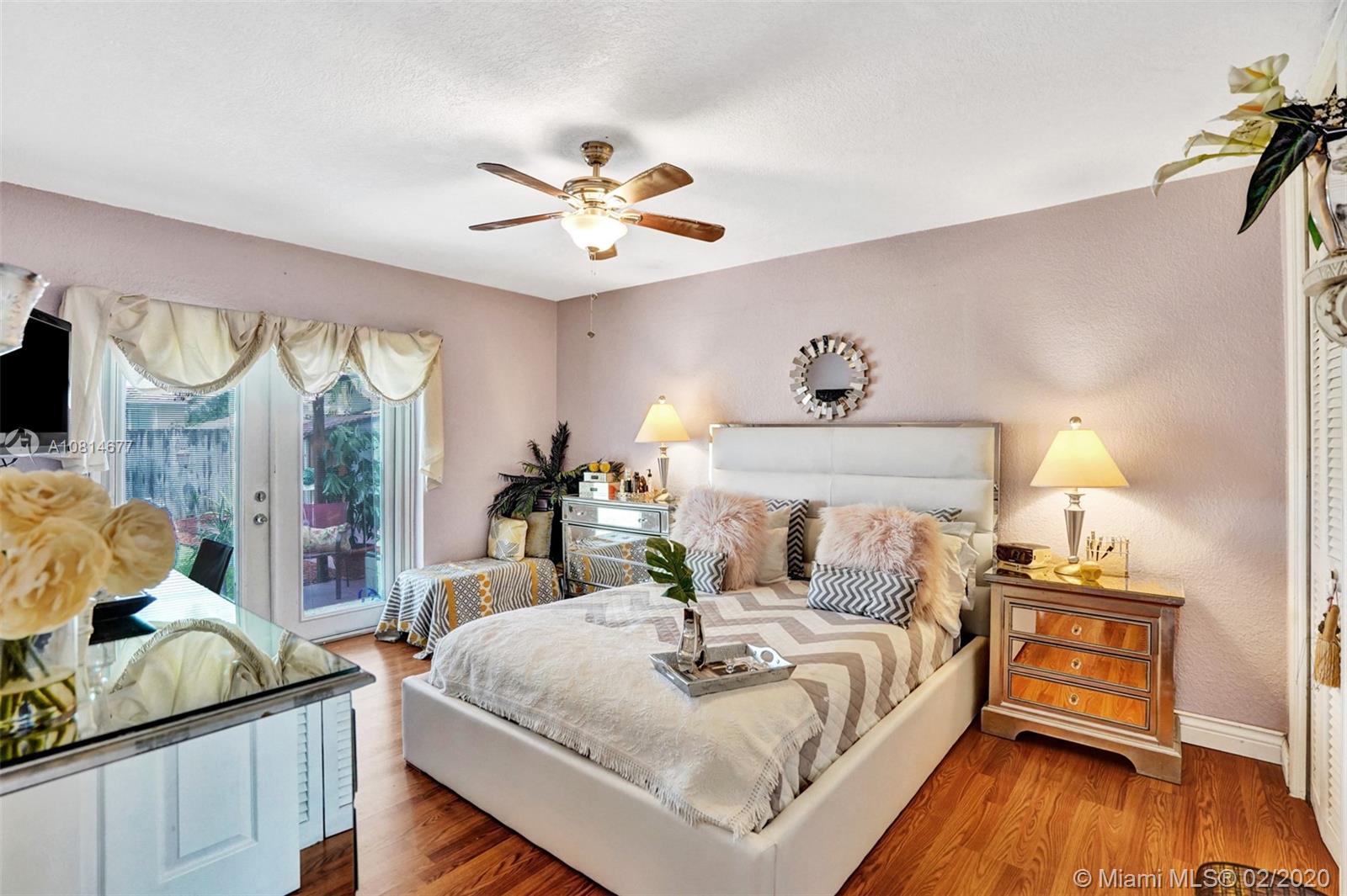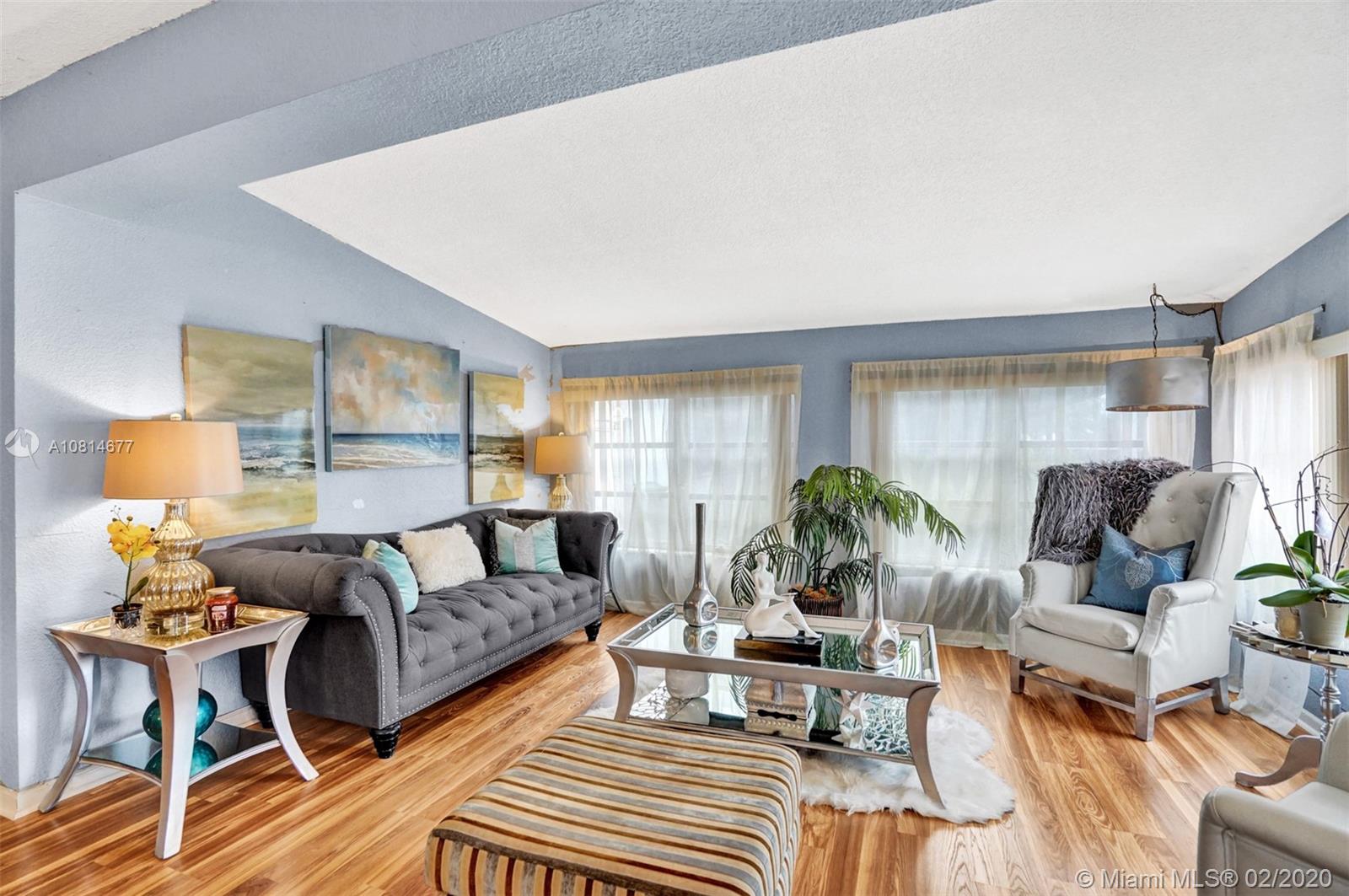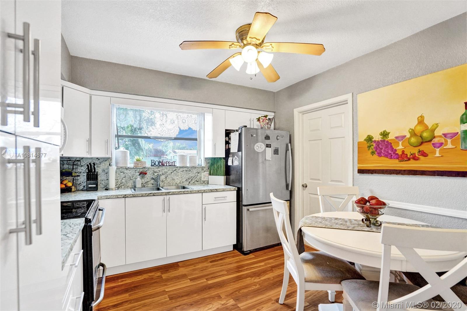 Walk into this bright open floor plan home. This beautiful home located in the sought out neighborhood of Pembroke Pines features four bedrooms, three bathrooms, one bathroom completely updated, new roof, new laminate wood floors, eat in kitchen with new white cabinets and stainless steel appliances.This home is equipped with new PVC pipes , a tankless water heater, accordion shutters, RainSoft water system throughout and a shed for extra storage. Master bedroom boost French Doors that lead into a magnificent serene large fenced in backyard with palm trees , pergolas, and a screened in patio. Great outdoor living space and great for entertaining. The circular driveway can accommodate up to six cars. Don't let this one get away!