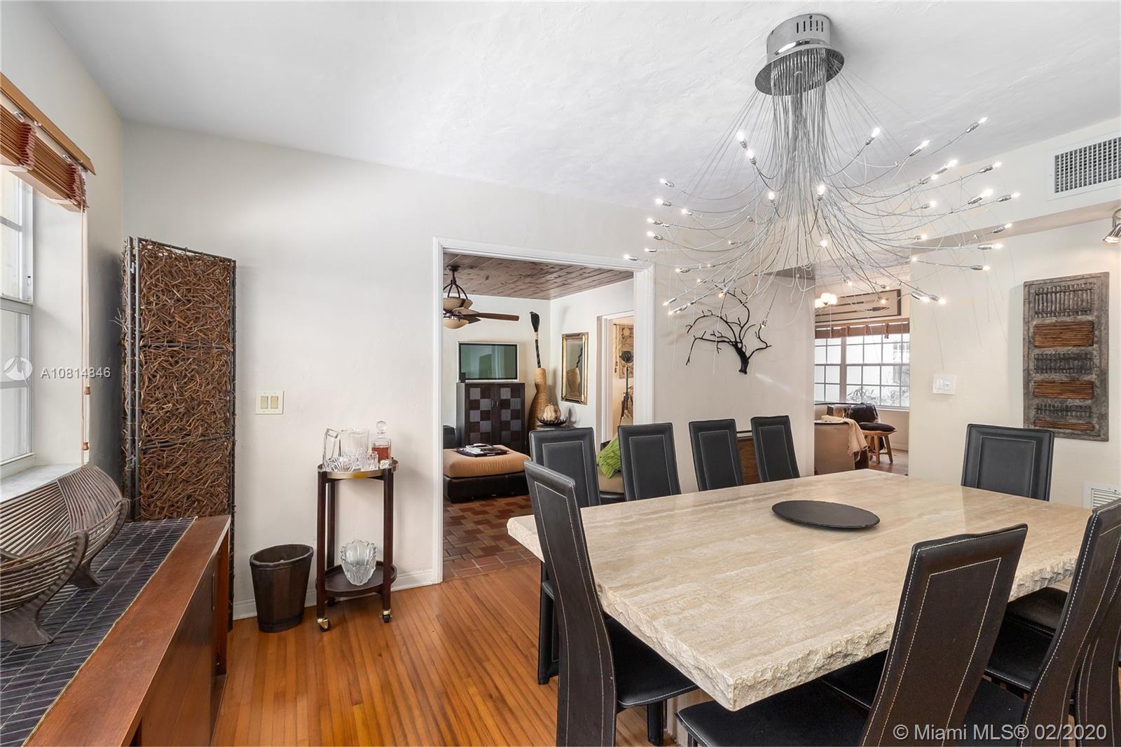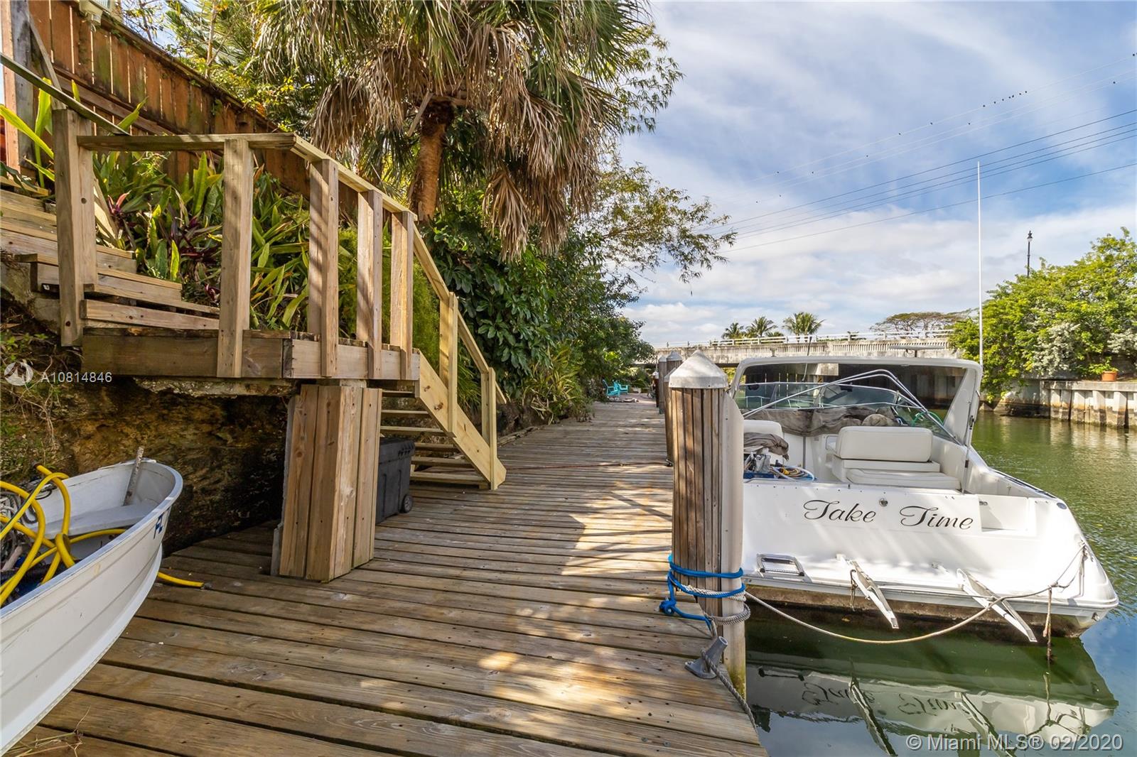 Miami Shores, mid-century 2/2 with a pool and 2 car garage. 75' on the canal with a dock and no fixed bridges and ocean access. Uniquely sited on the coral ridge, this home is at a high elevation with on a corner of the lot being in a flood zone. The house itself is in zone x500. The living room, which features a beautiful fireplace and original wood floors, leads directly to a spacious den that open out to a lovely covered patio area which adjoins the lush pool/spa area, then down a flight of stairs to your own 75' dock. This is the best of all worlds; a house with low risk of flooding located on a canal with easy ocean access-a boater dream. Come have a look!