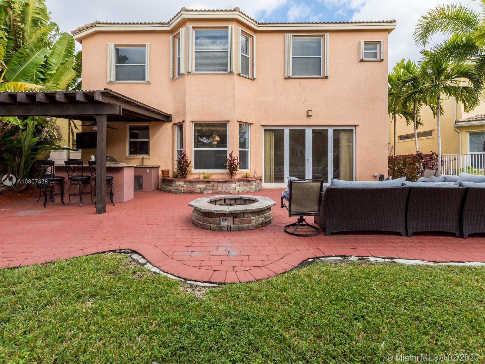 Enjoy this Aurora model with 5 bedrooms, plus a media room (convertible to a 6th bedroom), and 2 ½ bathrooms. Beautiful landscape front and back. If you like to entertain, you will be amazed by this tropical patio paradise. With a high end, fully equipped patio kitchen, surrounded by palm trees. Accordion shutters through the second floor. Walk inside this magnificent freshly painted home. Equipped media room with installed projector, video and sound system. The granite counter top kitchen comes equipped with top of the line sub-zero refrigerator, wolf double oven, cook-top and bell extractor. As well as a wine cooler. All this in the guarded community of Riviera Isles,resorts like pool, tennis, basketball courts, gym, kids park, a over 3.3 miles of area for walking, running and biking.