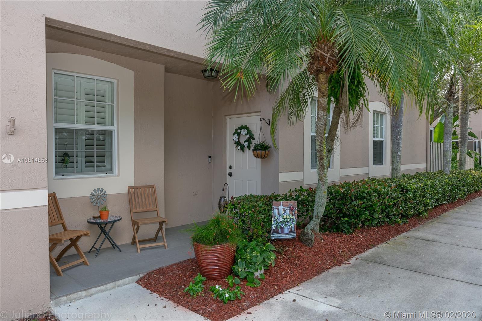 Back on market. Buyer could not close. Their loss is your gain! Make this absolutely charming 4 bedroom, 2.5 bath townhome in San Messina your home today! Zoned for A-rated Weston schools: Gator Run Elementary, Falcon Cove Middle & Cypress Bay H.S. Across the street from Imagine Charter School. Well-maintained home boasts wood flooring in living & dining areas, neutral (20"x20") tile in kitchen, carpet on stairs & upstairs bedrooms. Kitchen has stainless steel appliances, granite countertops & white cabinets. Newer washer & dryer. Oversized one car garage which has tons of extra storage with cabinets along one wall. Back patio is screened with a tile floor. Community has excellent access to highways I-75, I-595. Across the street from Publix & other shopping. Floor plan attached.