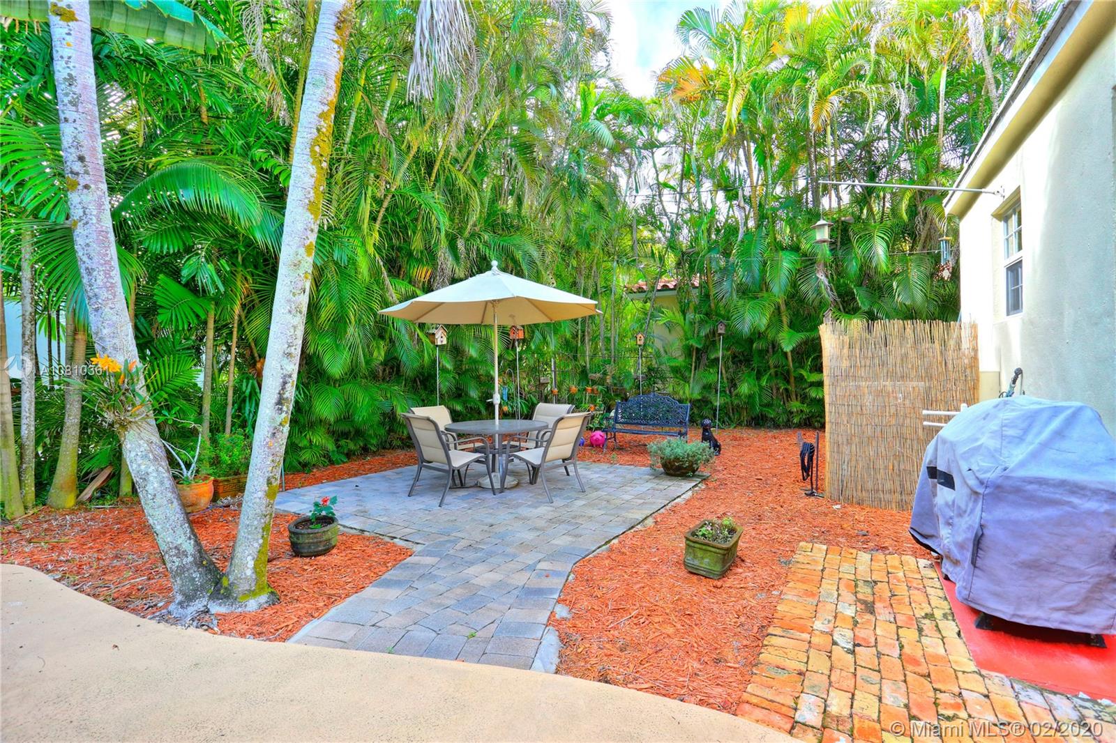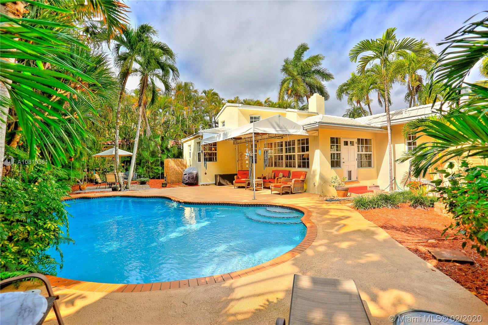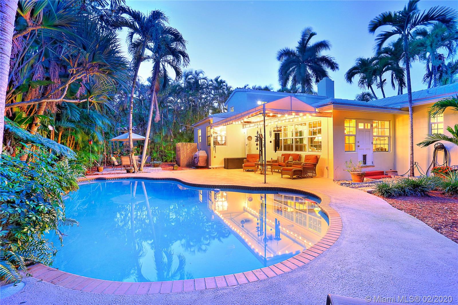 In the heart of Coral Gables lies this beautiful two-story three-bedroom, two-full bathroom home with a pool on a luscious 10,500 sq ft lot surrounded by palm trees designed by the first female architect in greater Miami, Marion Manley. Special features: original hardwood floors, updated kitchen with s/s appliances and granite countertops, separate laundry room, dining room, all impact windows, one-car garage and a working fireplace in the living room. Two bedrooms and a modern updated bathroom on the first level are split from the rest of the home. The spiral staircase takes you to a private bedroom with plenty of windows and a second bathroom. Florida room feels it is part of its lovely spacious backyard. Lots of light, a patio, fishpond, gardens, all great for relaxing and entertaining.