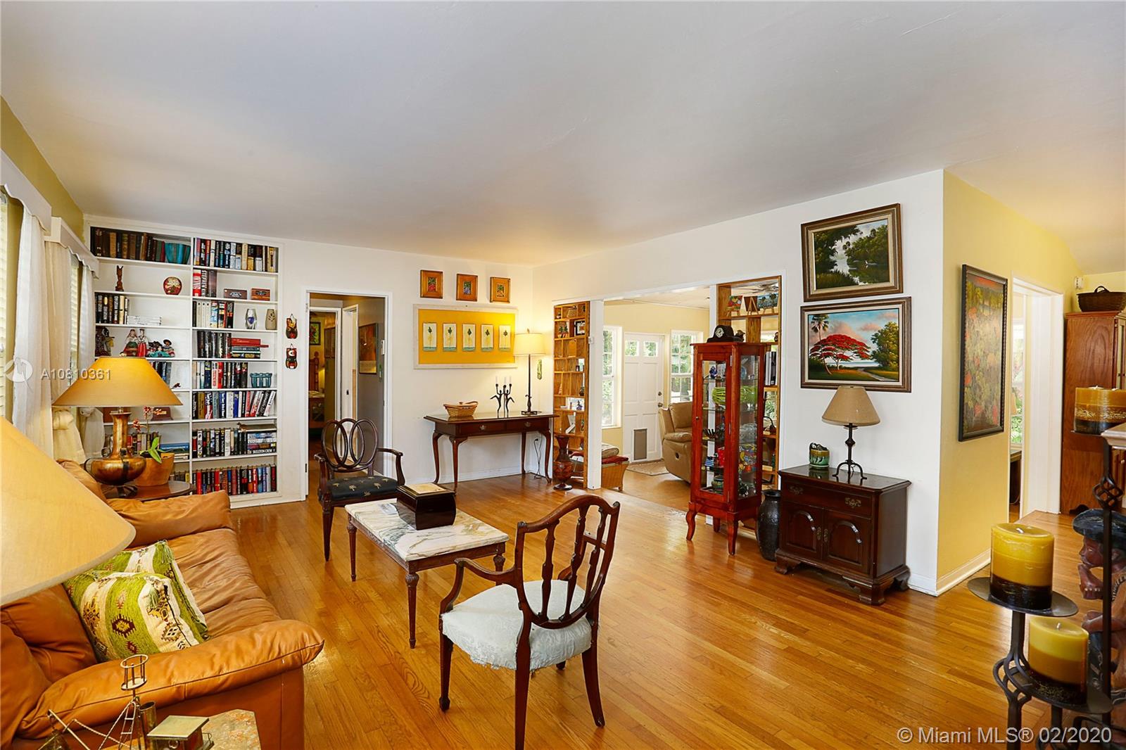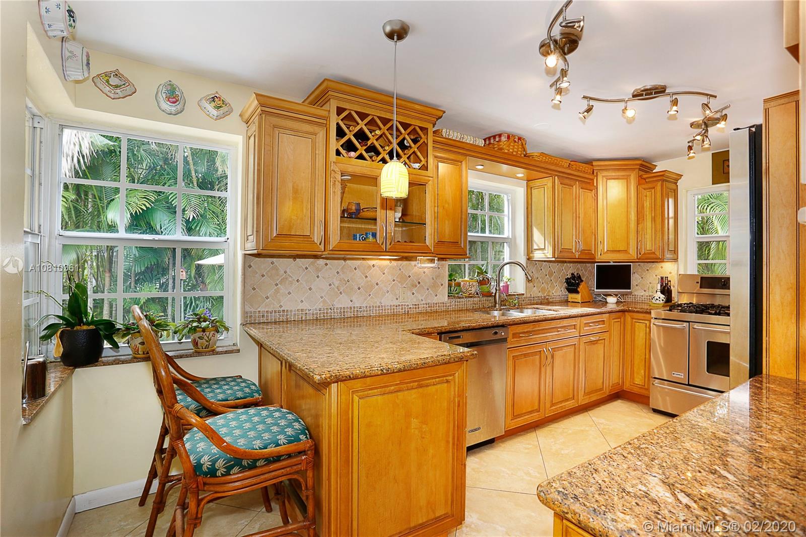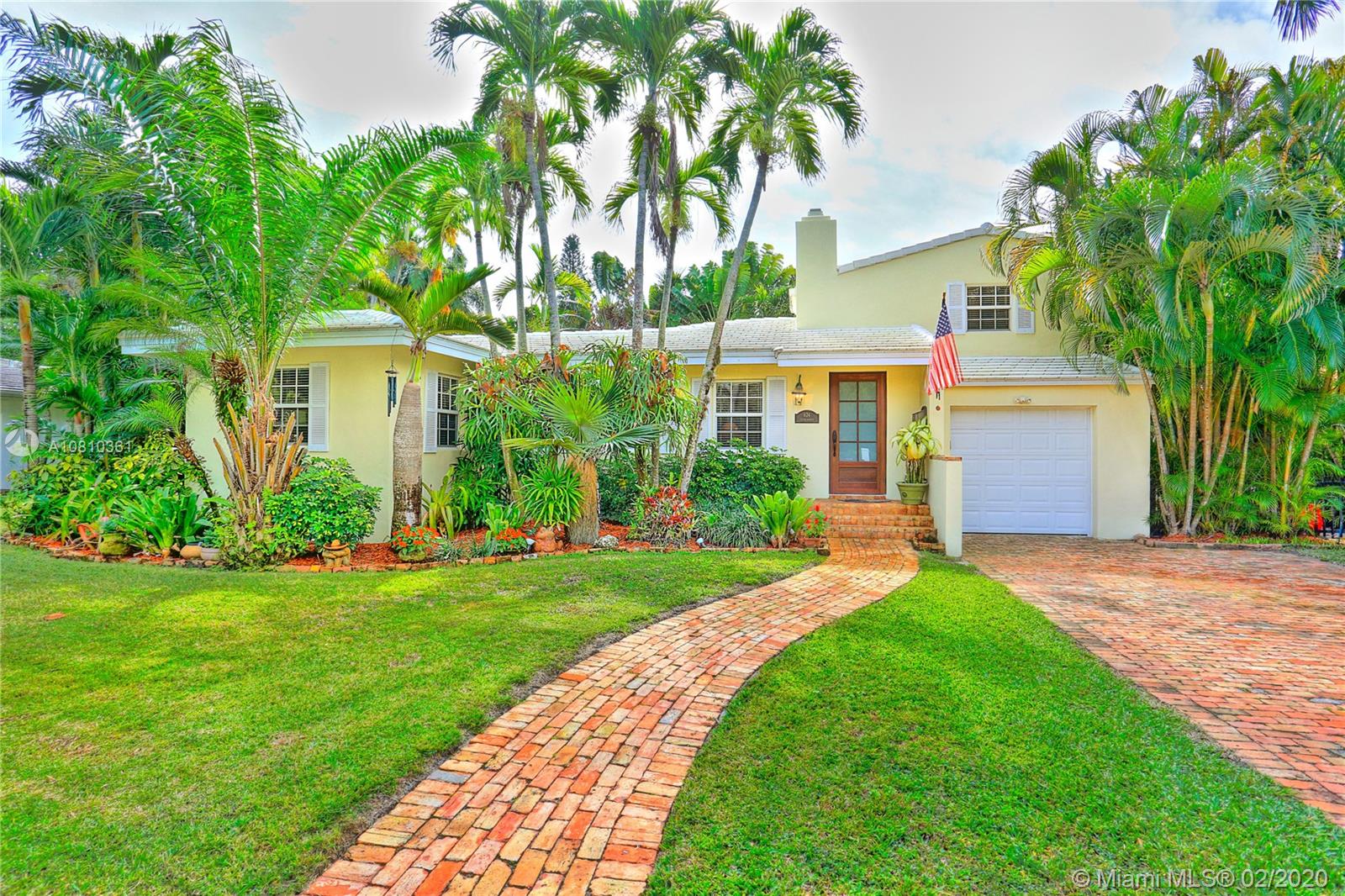 In the heart of Coral Gables lies this beautiful two-story three-bedroom, two-full bathroom home with a pool on a luscious 10,500 sq ft lot surrounded by palm trees designed by the first female architect in greater Miami, Marion Manley. Special features: original hardwood floors, updated kitchen with s/s appliances and granite countertops, separate laundry room, dining room, all impact windows, one-car garage and a working fireplace in the living room. Two bedrooms and a modern updated bathroom on the first level are split from the rest of the home. The spiral staircase takes you to a private bedroom with plenty of windows and a second bathroom. Florida room feels it is part of its lovely spacious backyard. Lots of light, a patio, fishpond, gardens, all great for relaxing and entertaining.