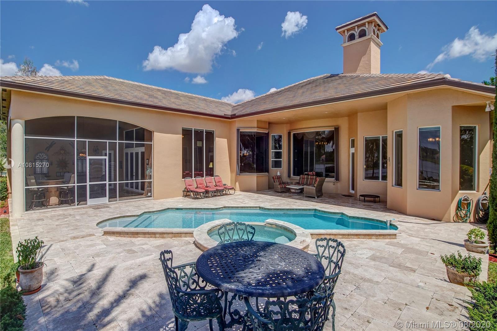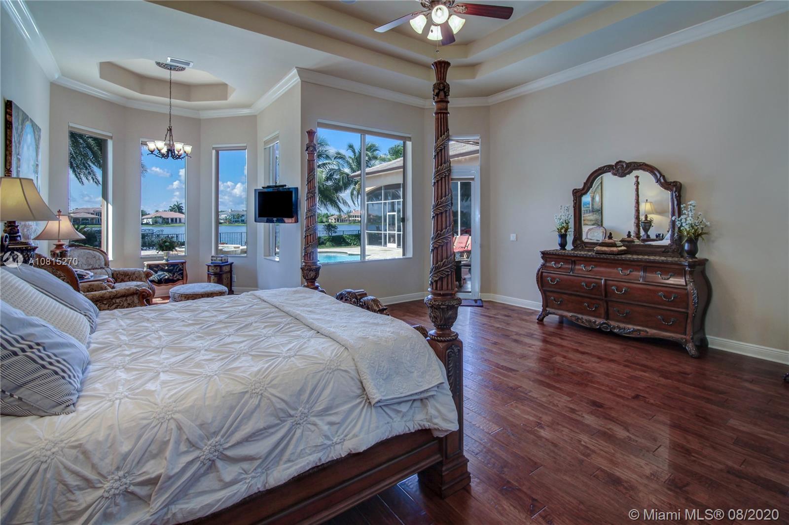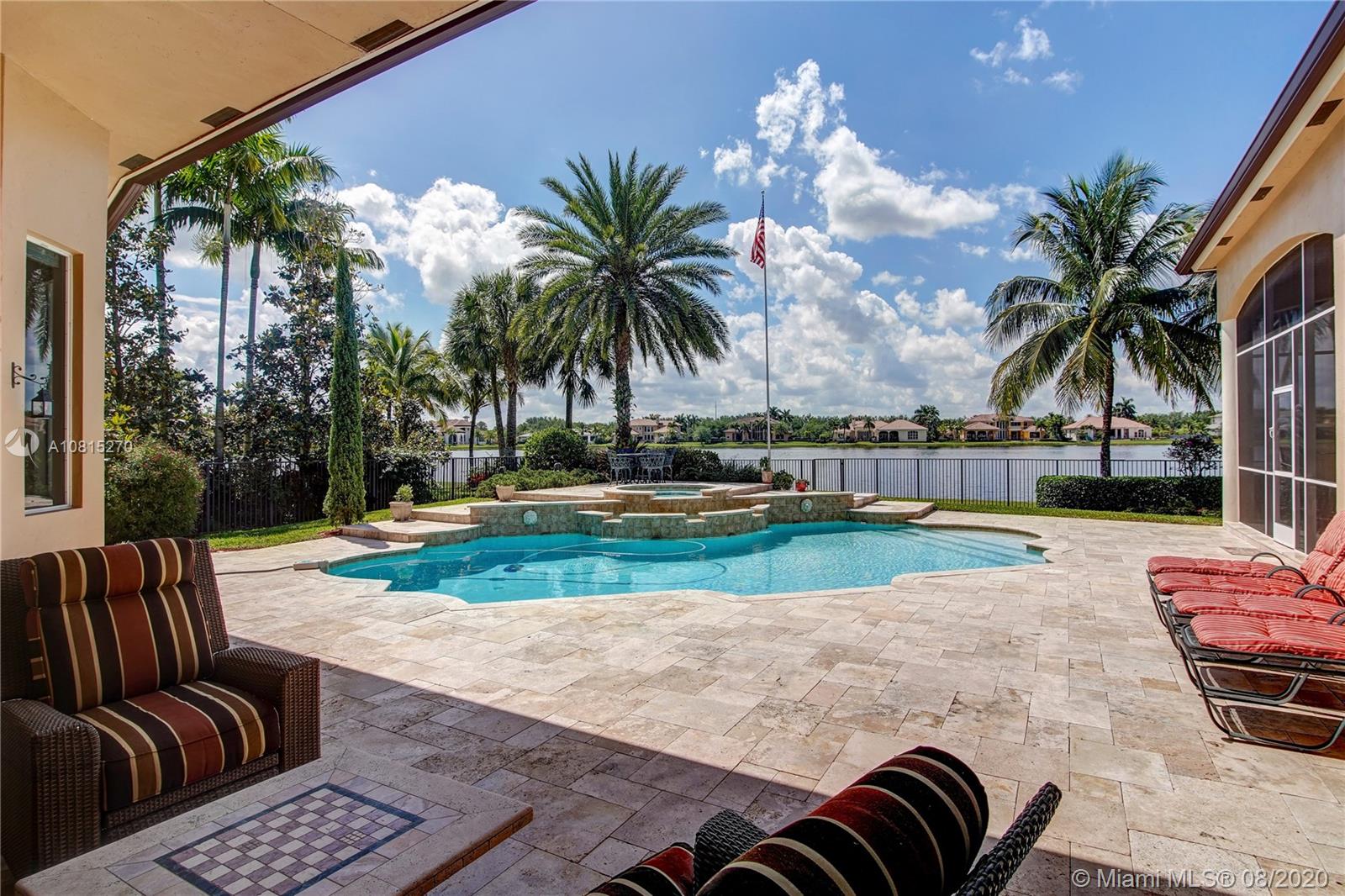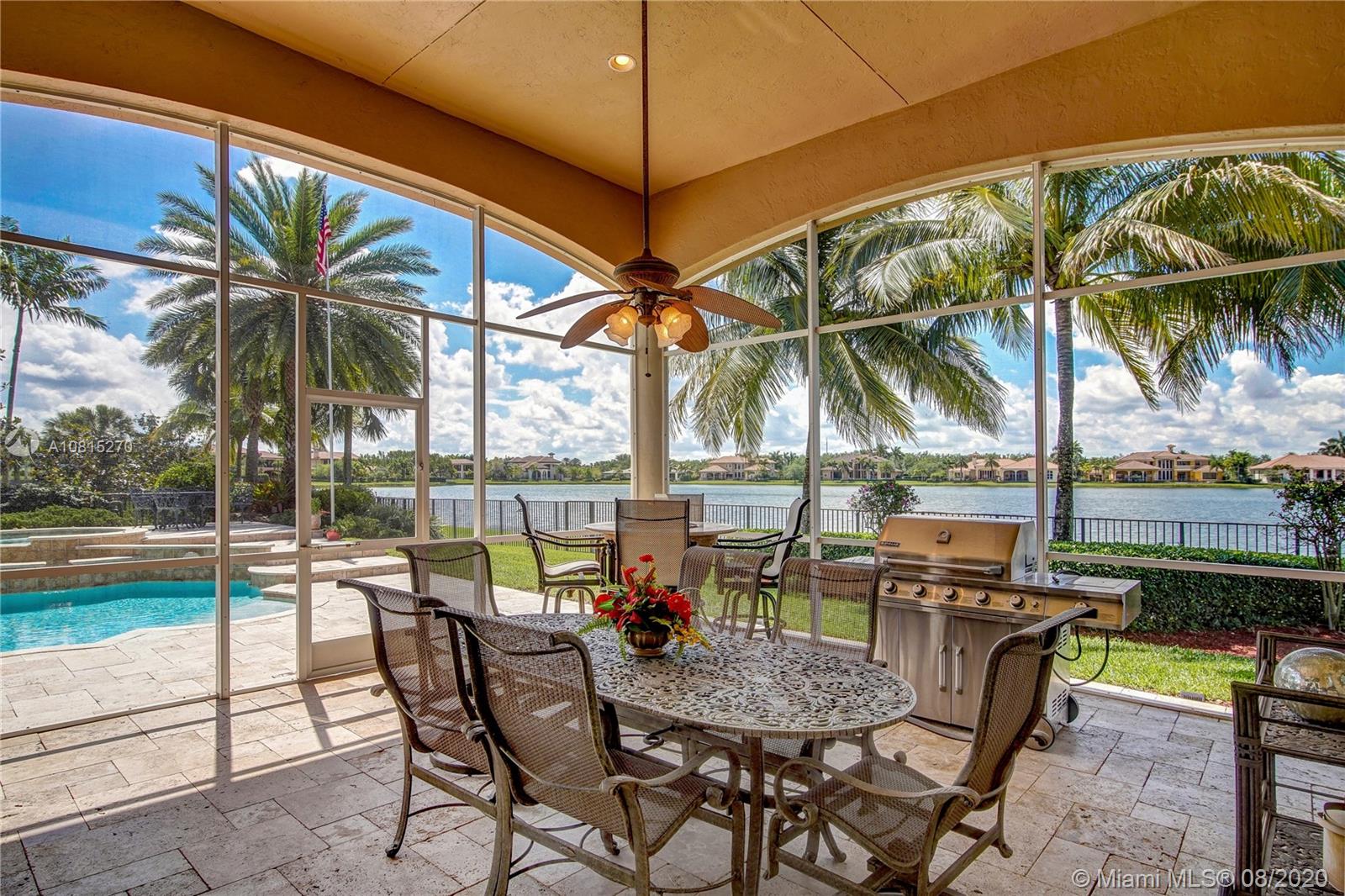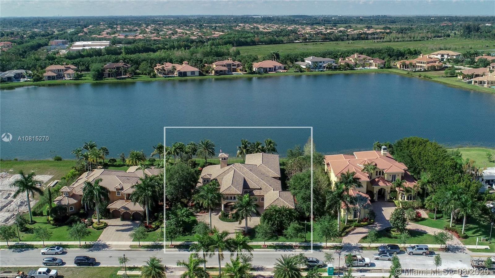 Elegant lakefront residence located in the exclusive community of Windmill Reserve! This custom home has it all! Grand porte cochere entrance with circular driveway, 5 bedrooms, 5 1/2 baths PLUS office and home theater, fantastic open floor plan with wood and marble floors, gorgeous views from every room, formal living room with gas fireplace, wet bar and wine cooler, impressive formal dining room, gourmet kitchen with gas stove and top-of-the-line appliances, all together with a spacious master wing with sitting area and luxurious bath. Enjoy the serene outdoor area with screened-in patio, newly refinished resort style pool with spa, and fenced private backyard - all with expansive lake views! Hurricane impact windows throughout and accordion shutters on bay windows. New roof!