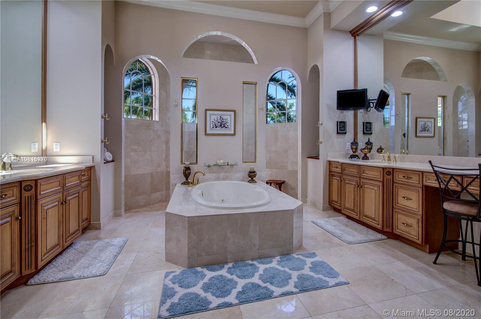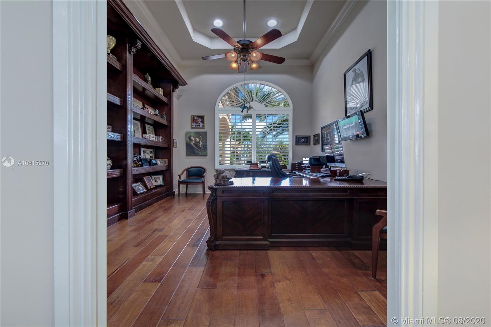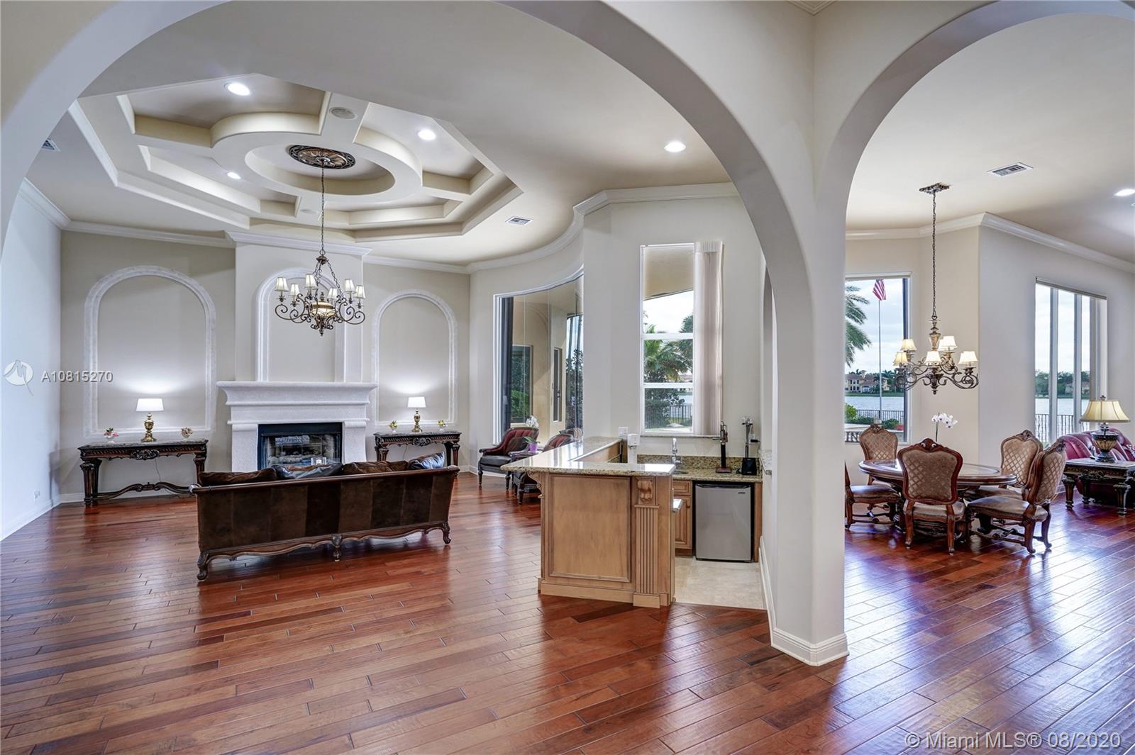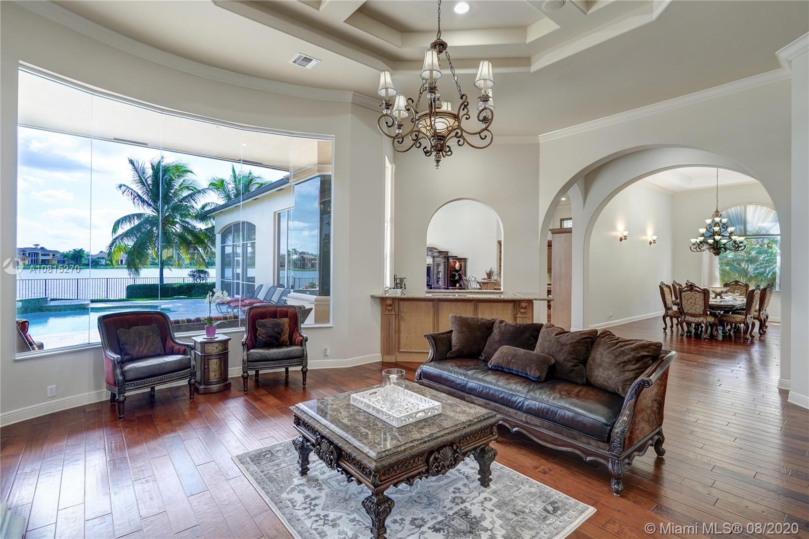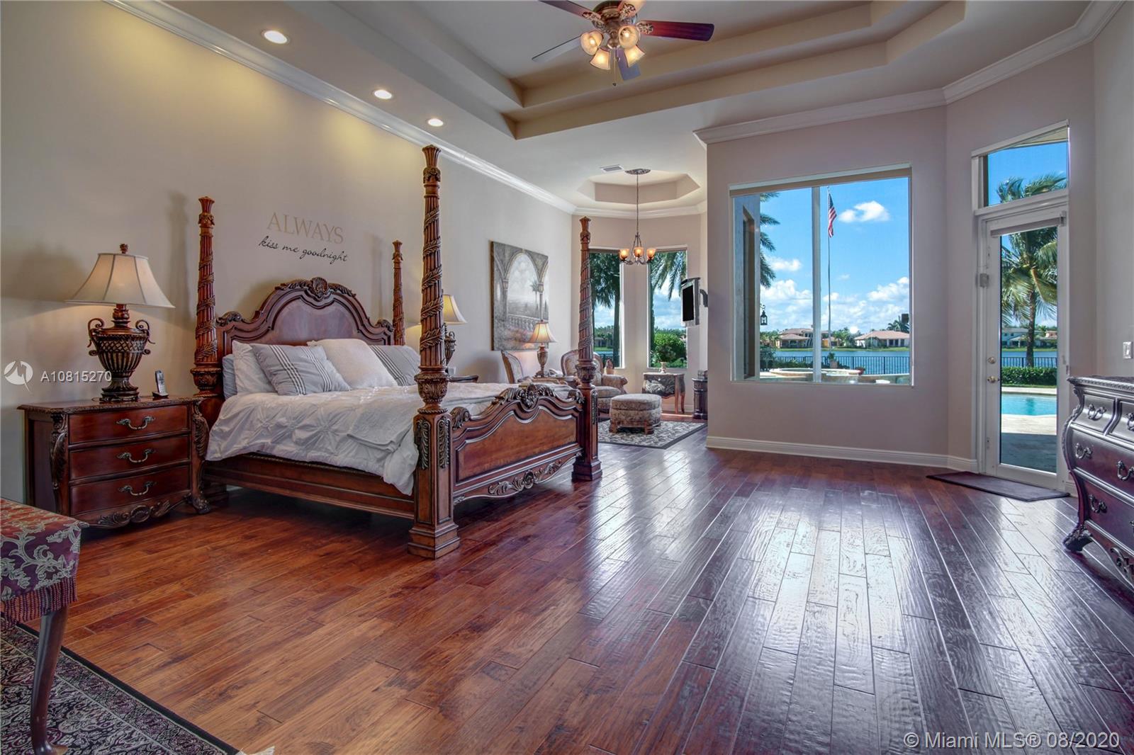 Elegant lakefront residence located in the exclusive community of Windmill Reserve! This custom home has it all! Grand porte cochere entrance with circular driveway, 5 bedrooms, 5 1/2 baths PLUS office and home theater, fantastic open floor plan with wood and marble floors, gorgeous views from every room, formal living room with gas fireplace, wet bar and wine cooler, impressive formal dining room, gourmet kitchen with gas stove and top-of-the-line appliances, all together with a spacious master wing with sitting area and luxurious bath. Enjoy the serene outdoor area with screened-in patio, newly refinished resort style pool with spa, and fenced private backyard - all with expansive lake views! Hurricane impact windows throughout and accordion shutters on bay windows. New roof!