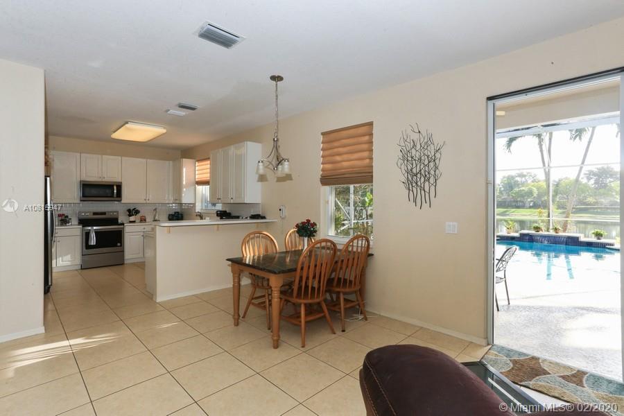 Fantastic Two Story Lakefront Home w/Screened Patio and Pool w/New Heater. This Impeccable Home Features 42" White Kitchen Cabinets, Stainless Steel Newer Appliances. Large Open Formal Living, Dining and Family Room. Large Master Bedroom with Sitting Room and Balcony off Master. New Water Heater, Impact Sliders, Garage Door and Front Doors. Hurricane Shutters. Hunter Douglas Plantation Shutters, Tile Downstairs, Wood Flooring Upstairs. Newer Front Loader Washer & Dryer. Seller Motivated and Offering $3000 Credit Towards Master Bedroom Carpeting.