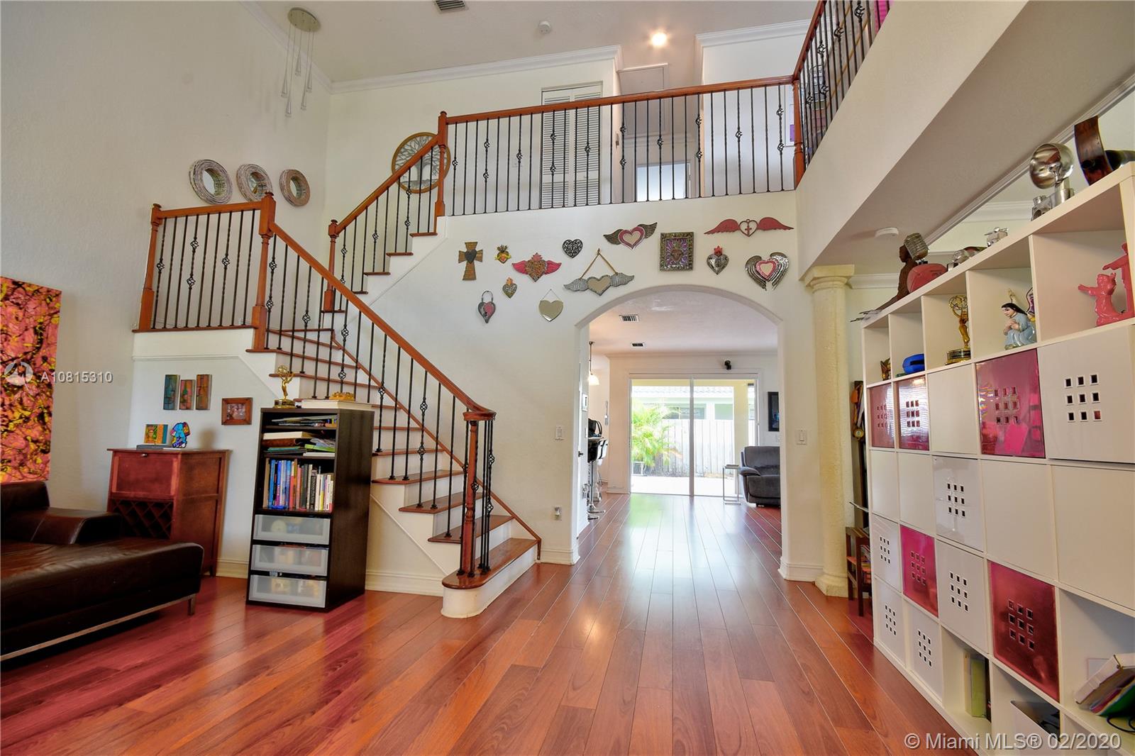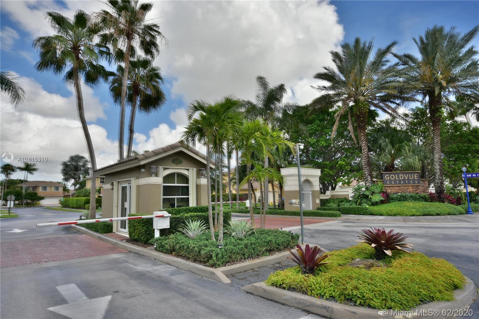 Elegant home located in the exclusive Gated Community of Goldvue Estates. Excellent Central Location in Doral. Two Stories home features 3 Bedrooms + DEN (Easily converted into a 4th Bedroom) and 2.5 Baths on an oversize lot in a private Cul-de-Sac. Kitchen with Stainless Steal Appliances, Granite counter tops. Spacious Family Room. Master Bedroom with sitting area, walking closet, Brand New AC, New Water Filter System, New Washer and Dryer. Accordion Shutters. Room For Pool, Barbecue, 2 car garage, Guest parking close to property. LOW HOA $235 monthly. Guard at the Gate/ 24 hs security, Playground for Kids and Community Pool. Close to fine dining and shopping centers. Walking distance to Walgreens, Publix & Starbucks. A+ Schools