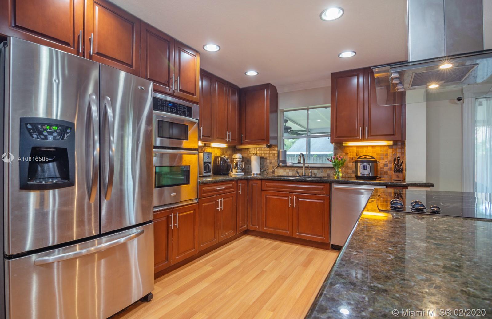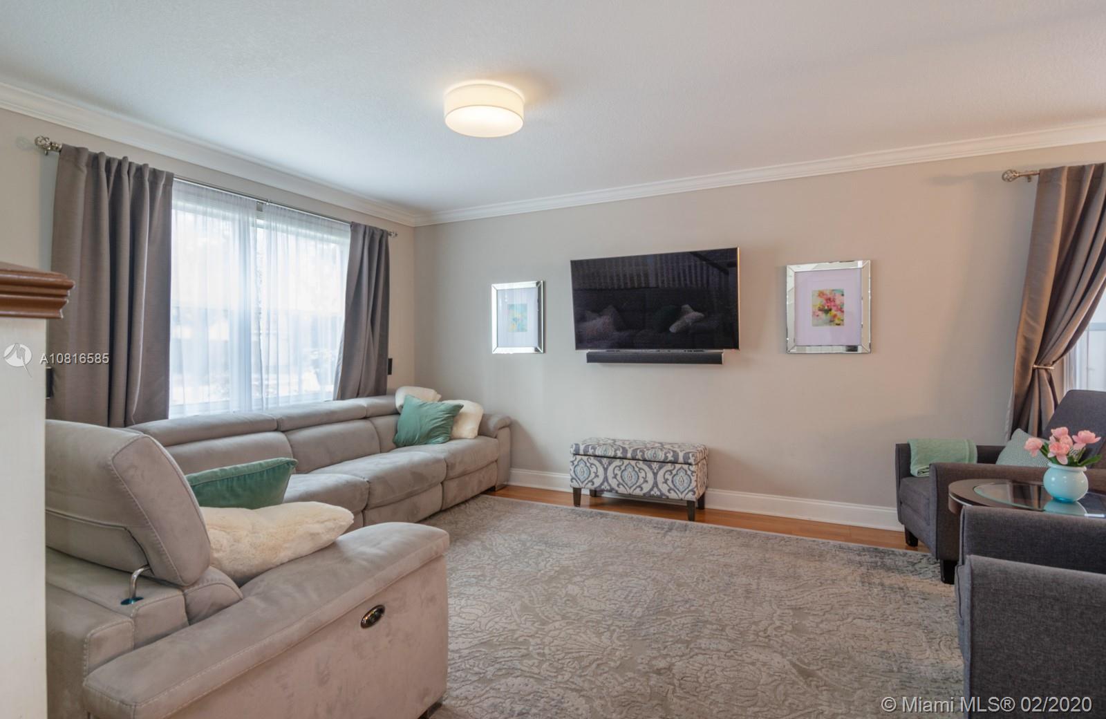 Gorgeous 3 bed, 2.5 bath home with laminate flooring throughout spacious living areas downstairs. Fully upgraded chef's kitchen with cooking island & stainless steel appliances. Upstairs, the master suite features a large walk-in closet w/built-ins and tastefully remodeled master bath. Offering outdoor living with an extended screened patio perfect for BBQ, this home is ready for entertaining! New Roof (2018), New A/C (2019) & huge fenced yard! Enjoy this beautiful light & bright home in the heart of Davie! Great location close to excellent A rated schools, shopping, dining, parks, highways & transportation!