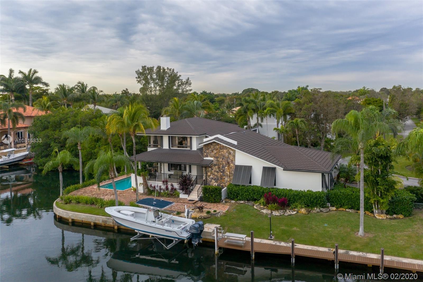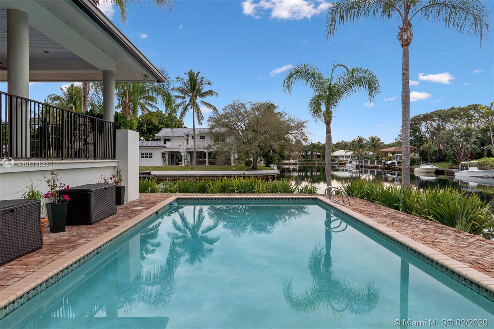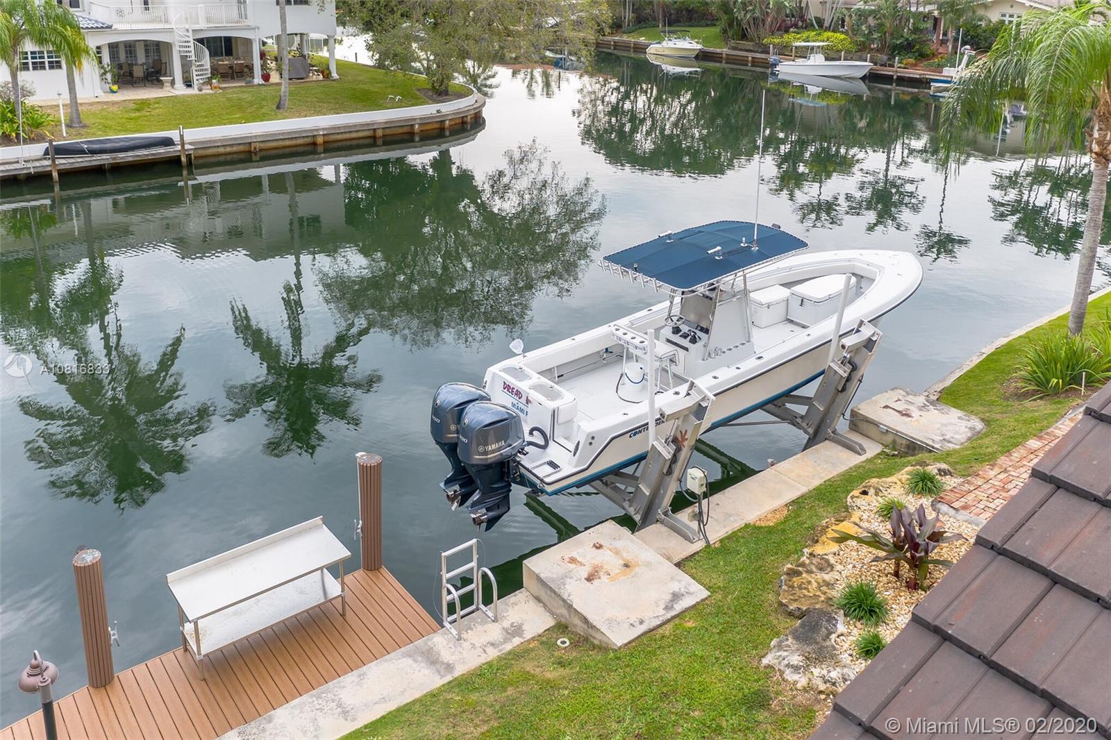 Gables By The Sea point lot waterfront home with Ocean access. Four bedrooms, three full baths. Close to 200 feet of water frontage. New dock with composite decking. New 14,000 lbs lift. New roof in 2016. Wrap around patio with amazing view of the water on both sides. 3 bedrooms & 3 full baths on the main floor. Large bedroom with 180 degree water views on the top floor which is used as an office and hobby room. Complete wind storm protection. Oversized 2 car garage with storage. Formal dining room. Eat in kitchen. Three zoned A/C. Nice size pool with Chicago bricked patio. This home is located at the end of a Cul-De-Sac in guard gated community. Living spaces are 12+ feet above sea level.