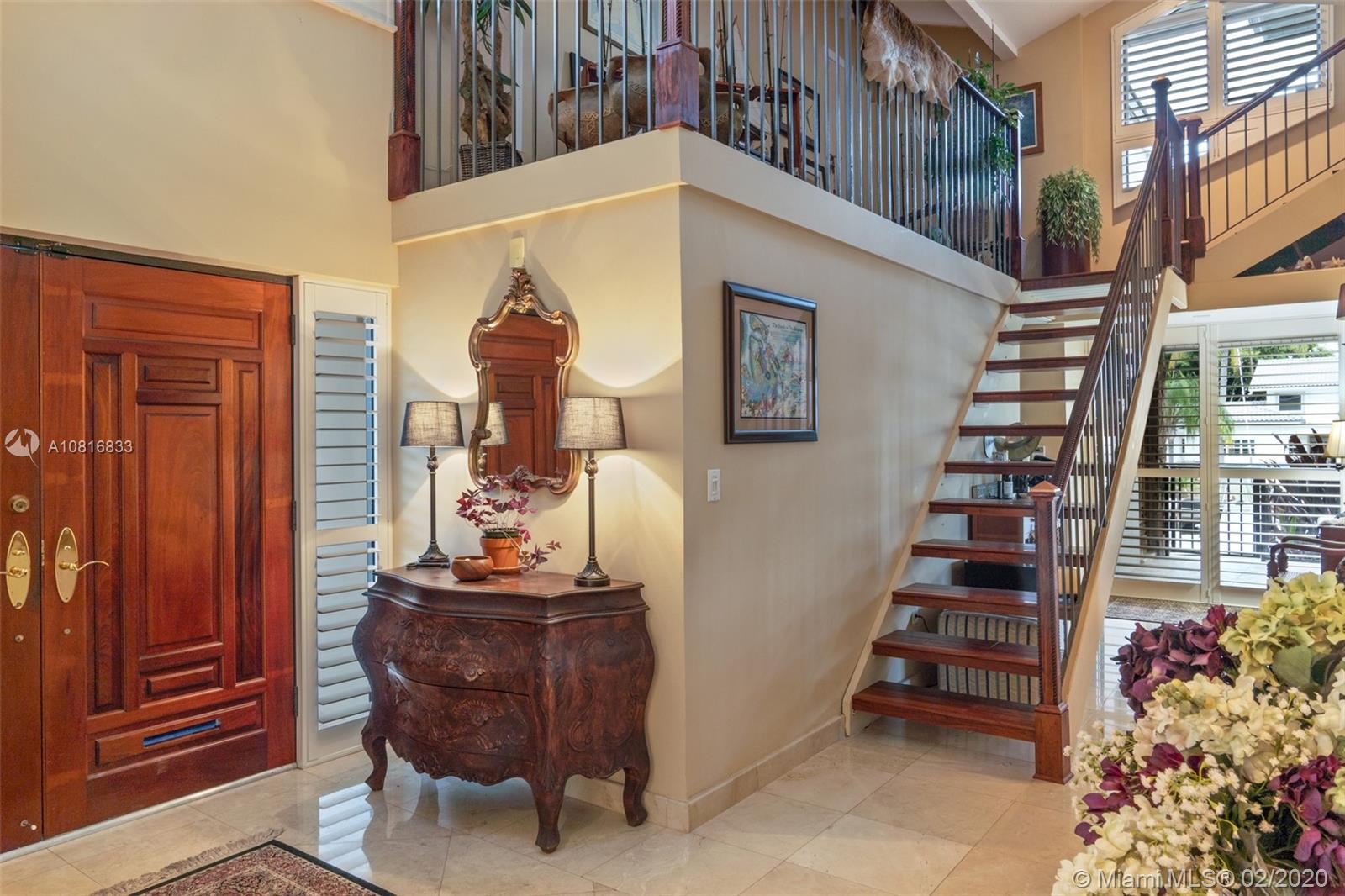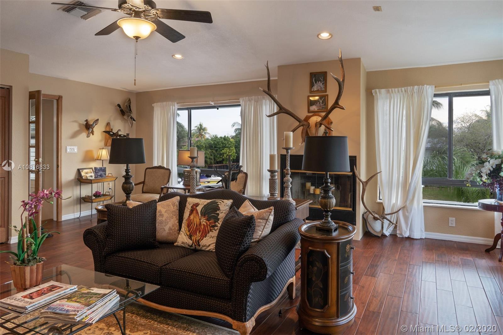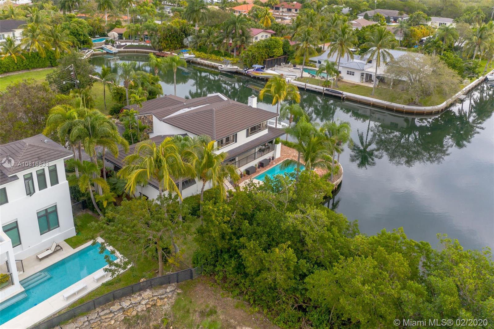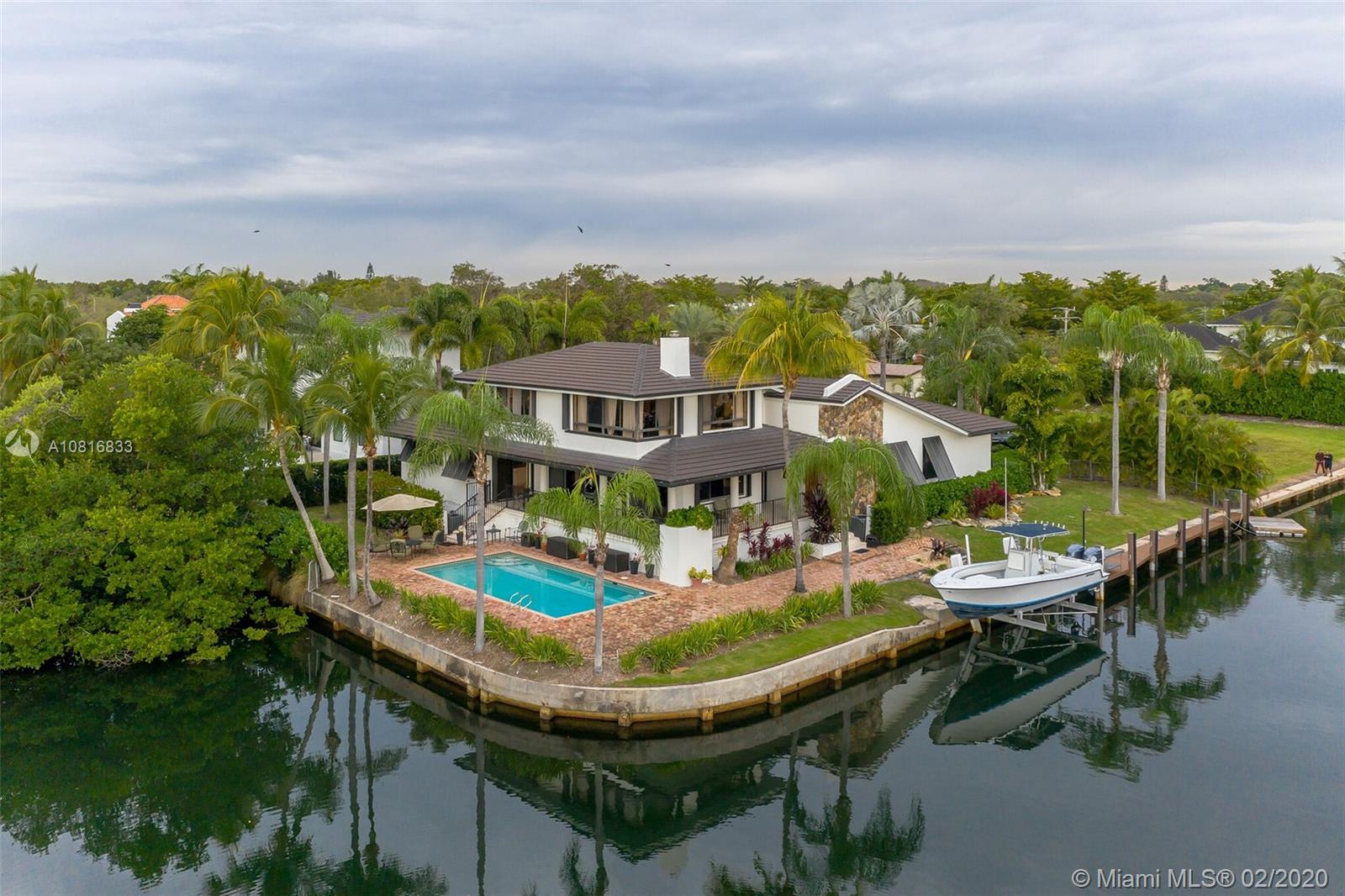 Gables By The Sea point lot waterfront home with Ocean access. Four bedrooms, three full baths. Close to 200 feet of water frontage. New dock with composite decking. New 14,000 lbs lift. New roof in 2016. Wrap around patio with amazing view of the water on both sides. 3 bedrooms & 3 full baths on the main floor. Large bedroom with 180 degree water views on the top floor which is used as an office and hobby room. Complete wind storm protection. Oversized 2 car garage with storage. Formal dining room. Eat in kitchen. Three zoned A/C. Nice size pool with Chicago bricked patio. This home is located at the end of a Cul-De-Sac in guard gated community. Living spaces are 12+ feet above sea level.
