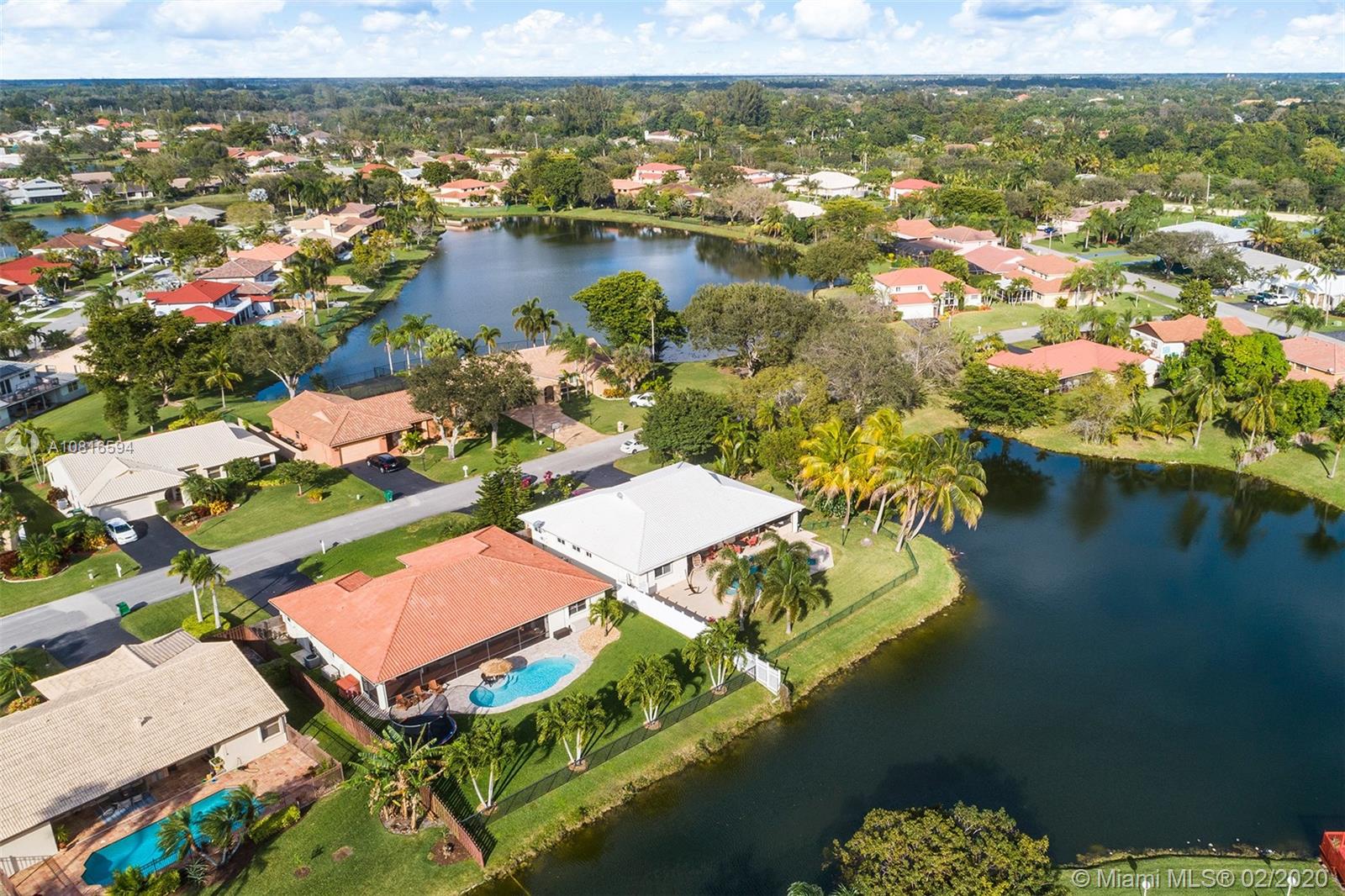 Bring the family home, look no further! Triple split 4 bedroom 3.5 bath pool home in Davie’s quiet & friendly Falcon’s Lea neighborhood. Spacious living areas with vaulted ceilings. Neutral tile in living areas, engineered wood in all the bedrooms. Freshly painted throughout with new interior doors. Granite counters & SS appliances in kitchen with open pass through to screened patio. Lovely open, wide views of the lake with fully fenced tropical yard and salt water pool (2015). Accordion shutters & storm rated garage door. Dual A/C 2015/2008. Updated secondary bathrooms. Large master suite with huge walk-in closet, dual sinks and large walk-in shower. Great location!