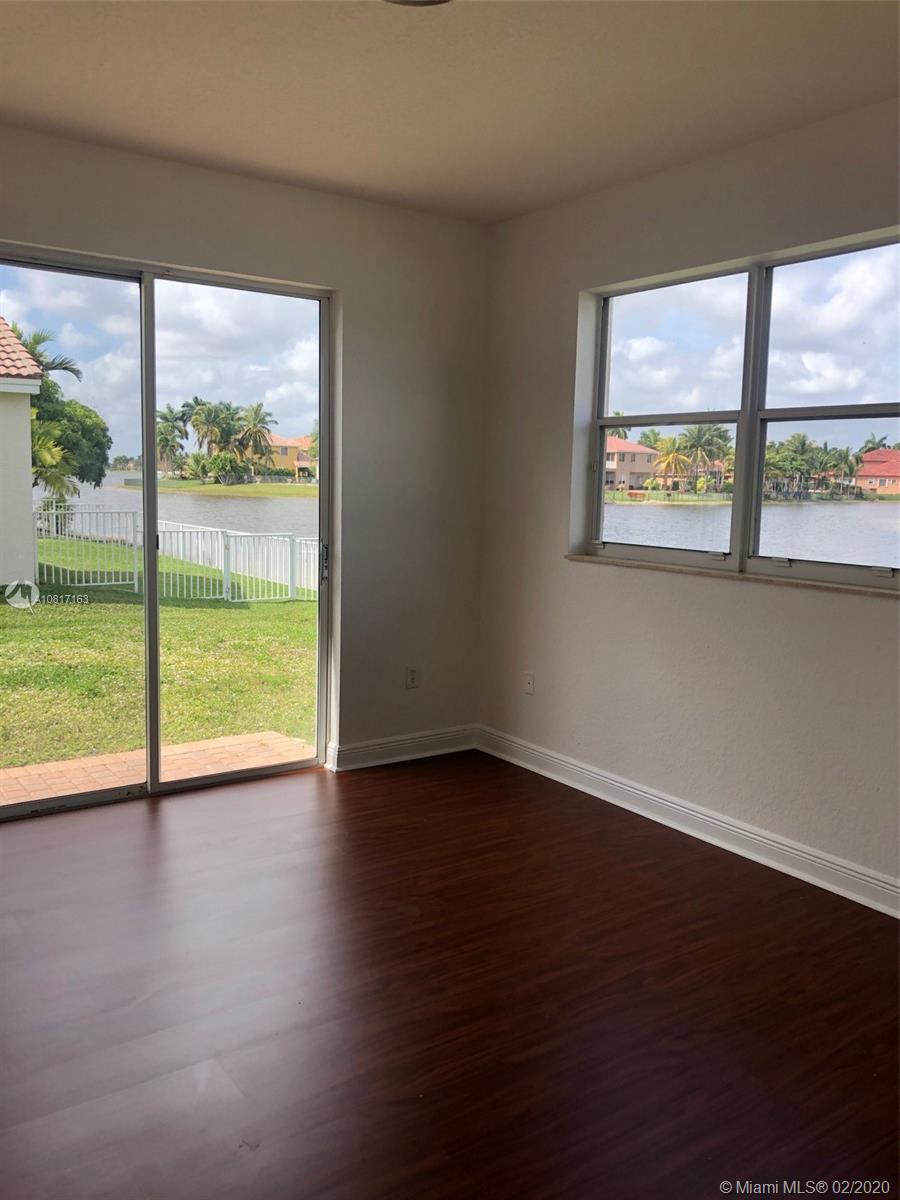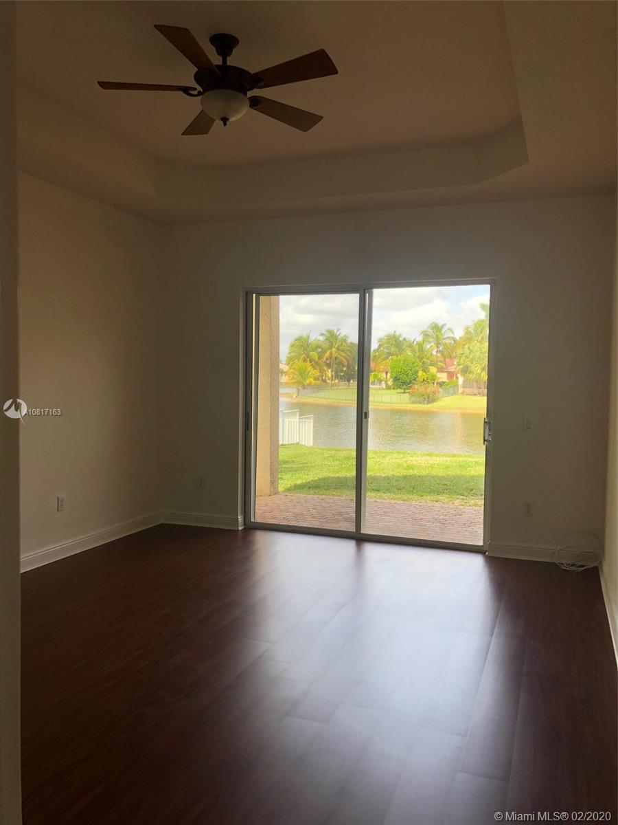 Lakefront 5 bedroom, 3 bath home in the prestigious gated community of Sunset Lakes. Brand new wood laminate floors in Formal living/dining rooms & all 5 bedrooms. Freshly painted with volume ceilings. Gourmet kitchen, Granite counters tops. Brand new appliances. The spacious family room has tranquil views of the lake and eat in dining. Private master has lake view/access + 2 walk-in closets. Master bath has two vanities, soak tub & water closet. Two additional bedrooms have lake view . AC units and water heater are new. Hurricane shutters. Association fee includes basic cable, alarm, and access to amazing amenities *Club house* Resort style pool*Complete gym*Basketball and Tennis courts*Playground*. Conveniently located to Schools, Highways, Shopping & Dining. This home is a must see!