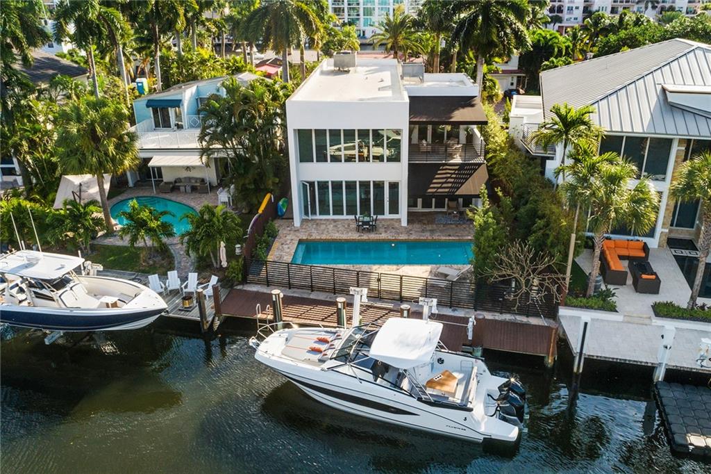 Grace, efficiency, and refinement come together on a deep, wide canal with no fixed bridges to the ocean. Soaring ceilings create bright and open spaces with a clean and modern look. Electric front gates, electric shades, a remodeled Mia Cucina kitchen with marble countertops and top of the line appliances make life joyous. An elevator connects the four bedrooms of which two are master suites, a private office and a large den with the second story offering two outdoor spaces with fabulous views from separate terraces. The boatlift can accomidate up to 20,000 lbs. The walk to famous Las Olas Blvd is barely long enough to decide which of your favorite restaurants to visit. Love the beach? Take a Scooter for a breezy ride or enjoy a short trek to the white sands of Lauderdale beach.