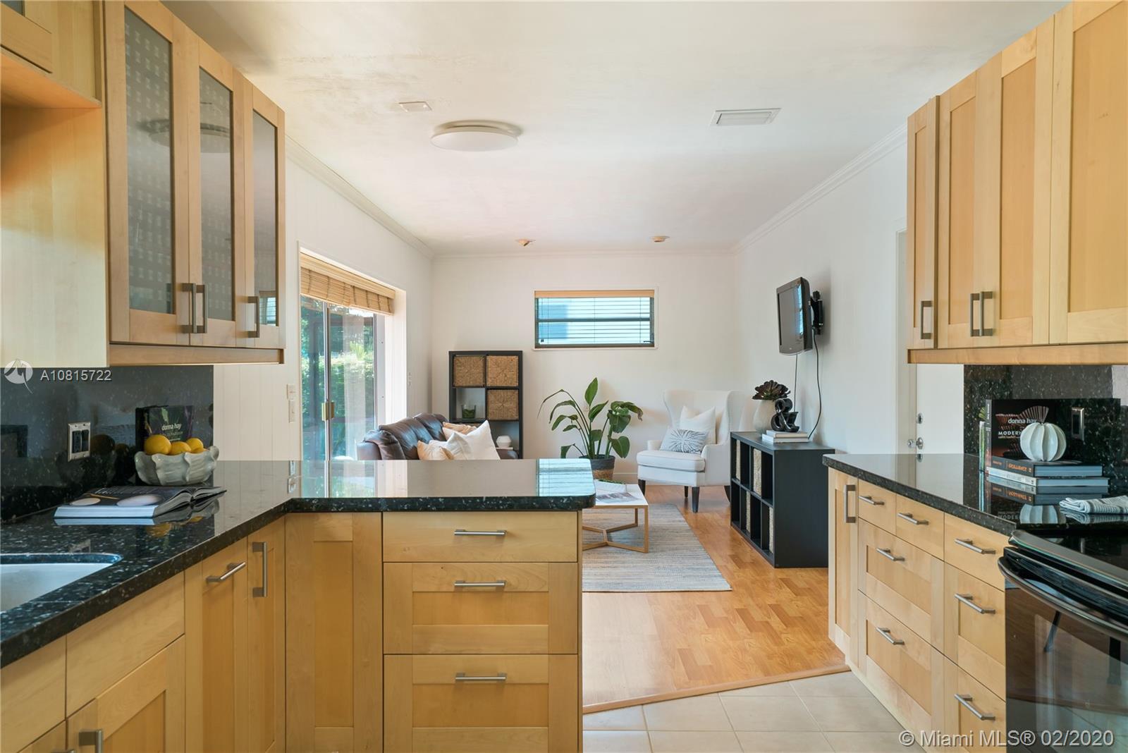 Charming 3/2 pool home with spacious 2-car garage. It is located on a quiet street yet close to a bus stop, schools, shops, restaurants and several parks. The living and the kitchen/family rooms open to a covered outside area and screened in pool deck for great entertainment flow. This house has many updates but waiting for new owner to put personal touch on master bathroom. Living areas have laminate floors, new tile in kitchen and terrazzo floors in bedroom wing (some damage from carpet removal).