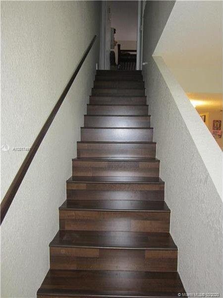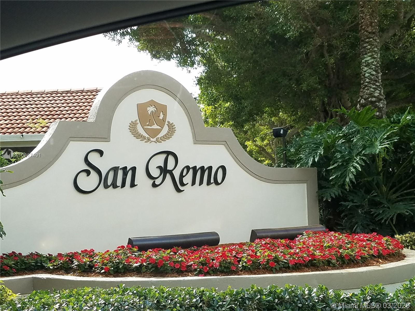 Townhome located in SAN REMO. Gated community. Close to I-75 and I-595. Walking distance to Schools, shops, and parks. Unit recently renovated. New A/C and Water heater. Screened patio with garden view. Hurricane shutters. Tiles floor downstairs and wood floor upstairs. Two (2) spacious bedrooms with their own bathrooms. Half bathroom downstairs for guest. Open concept kitchen with granite counter top. One car garage. Washer and dryer inside the unit with A/C. Storage. Community pool, basket ball court, and playground. Maintained community.