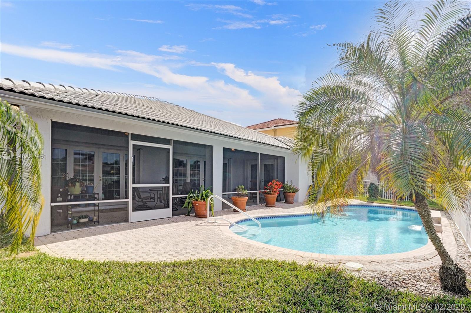 Gorgeous 3 bedrooms 2 baths in the desirable GATED community of Windsor Palms. Well maintained by original owners. Features volume ceilings with tons of natural lighting, beautifully updated kitchen with granite counters, stainless steel appliances. Split bedroom plan: Huge Master suite, 2 walk-in closets. Statefully renovated master bathroom with double vanities, separate tub & shower. Inviting pool with breathtaking lake view. Large screened patio, perfect for entertaining. Fully equipped with HURRICANE Accordion shutters & panels. Community park & kids play area. Newer AC units. Custom garage organizers & durable floors. Low HOA fee. Great family neighborhood, zoned for A-rated schools. Easy access to highways, shopping, beaches, and entertainment. Easy to show, call today for a tour!