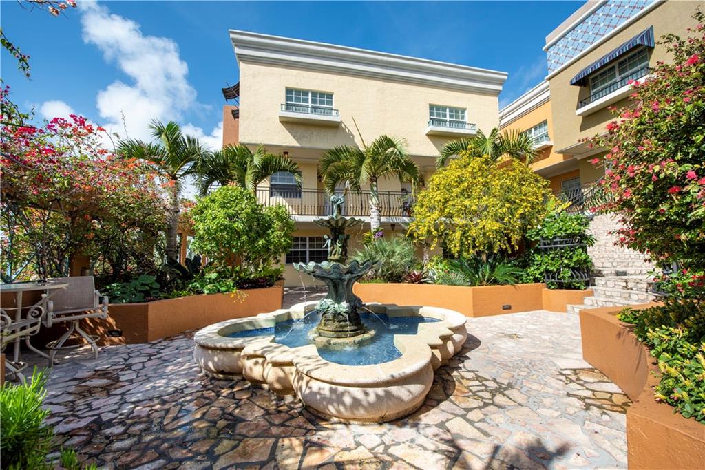 Motivated Seller ready for offer. European style low rise condo in charming courtyard setting. Complex has 23 condos total. TWO PARKING SPACES exclusive to this unit in second level secured garage. Lush central courtyard offers private relaxation with lounge chairs, gas grill, and dining tables. The unit has marble floors on the 1st level, carpet on 2nd, spacious rooms and closets, and cozy breakfast area overlooking the courtyard. Freshly painted interior, and all impact doors and windows. Balconies offer beautiful skyline views buffered by green space. This is a unique offering in a unique location. Stroll Las Olas Blvd, enjoy cafes, shopping, Performing Arts Center, Ann's Coffee Bar steps away, business district, one mile to ocean. One pet allowed w/restrictions. COME LIVE IN PARADISE!