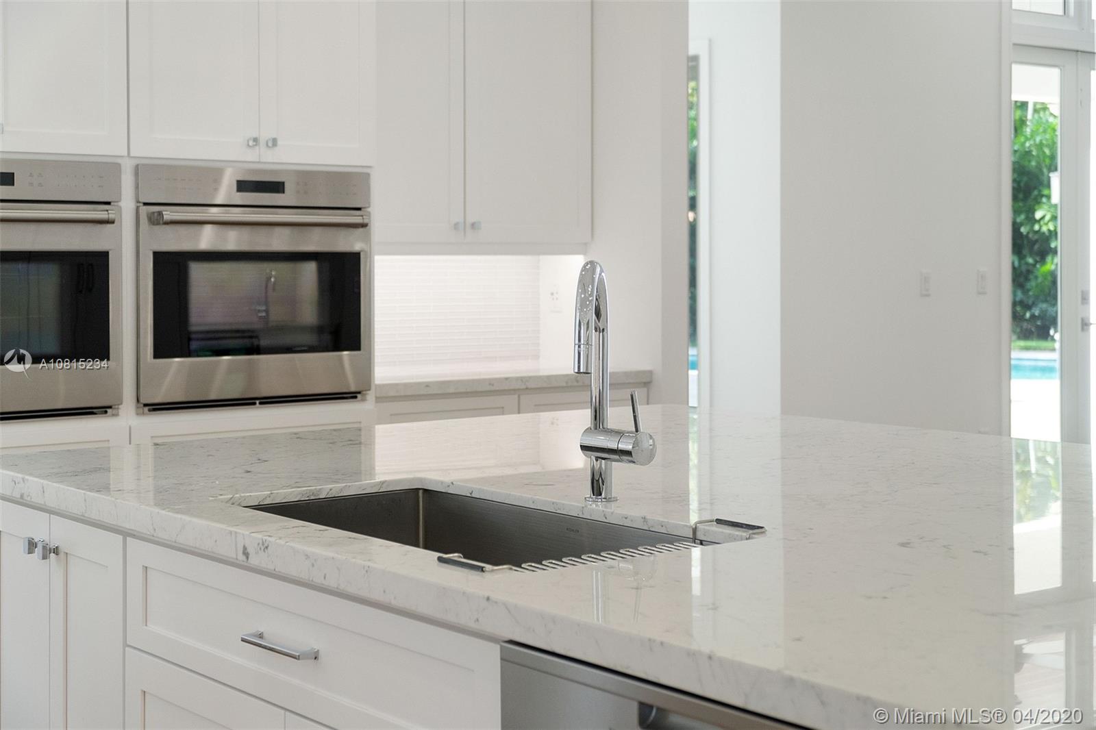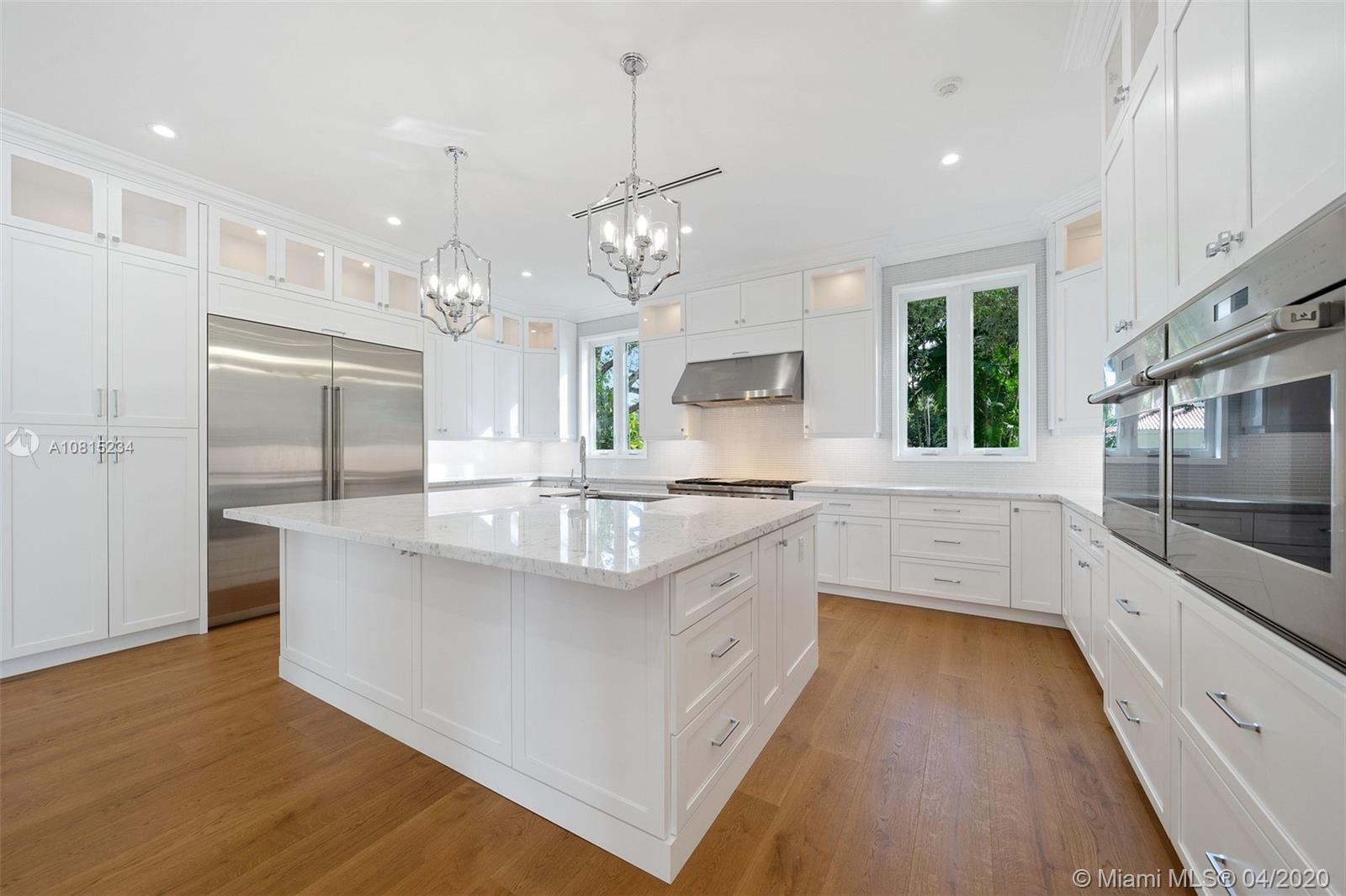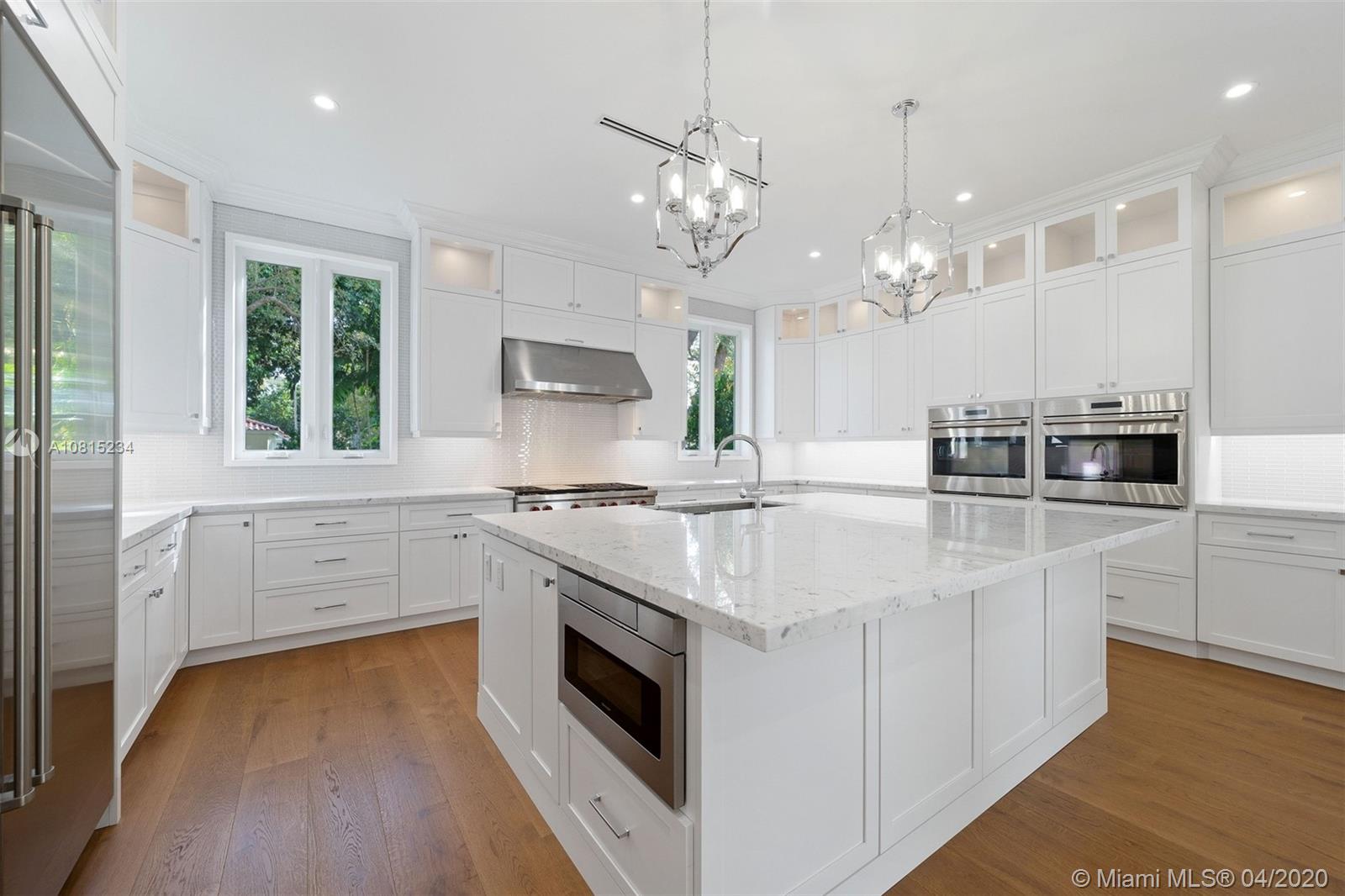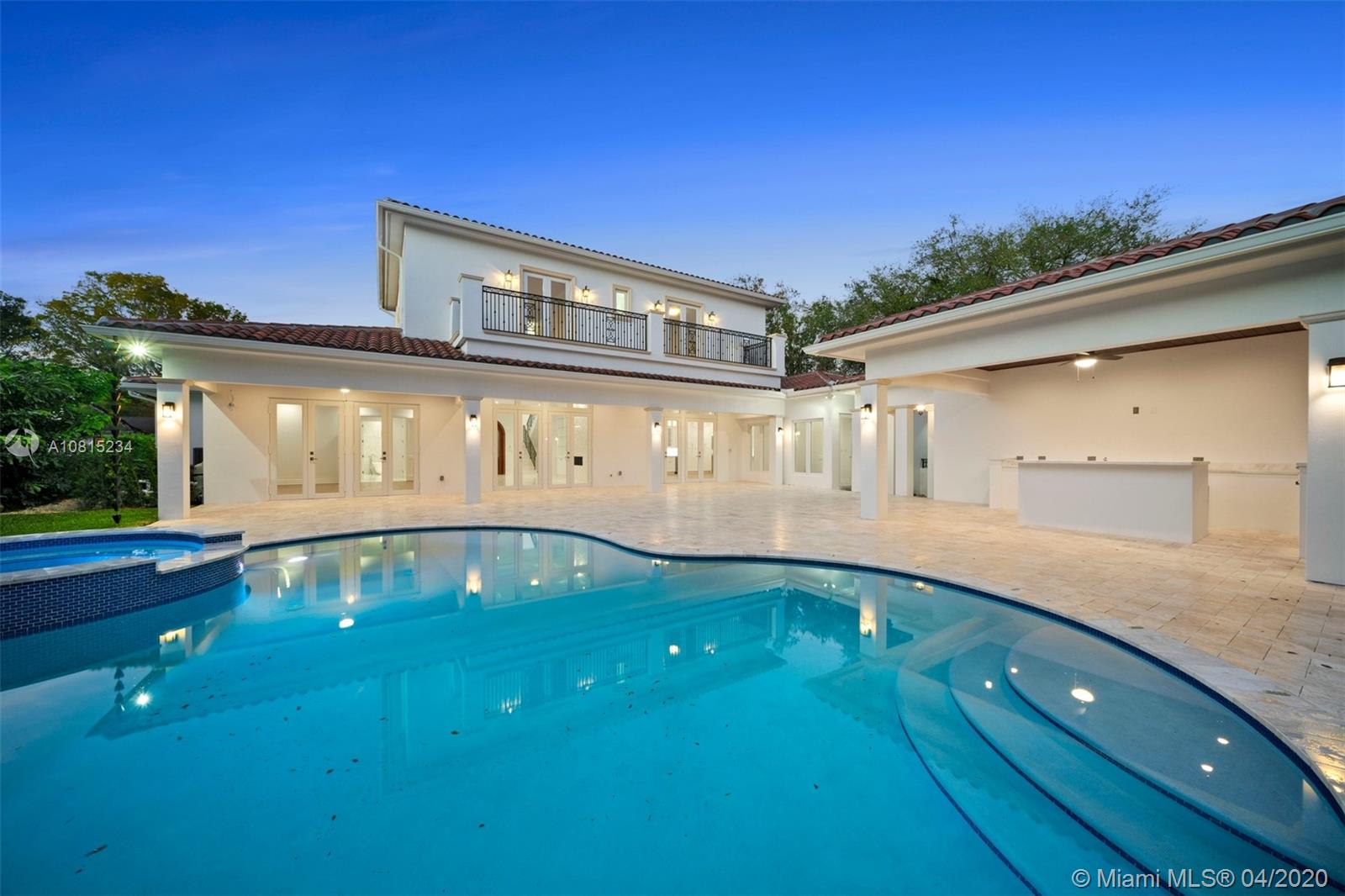 Timeless Beauty-Brand New Construction. Fabulous Coral Gables Golden Triangle corner location. Quality workmanship, open concept design & full of natural light. High ceilings, gourmet kitchen w/ top appliances incl. Sub-Zero refrigerator & freezer, beverage unit, Wolf 6 burner cooktop, microwave drawer, & huge island w/ seating. Spacious bedrms w/ en-suite bathrms +custom walk-in closets. Gorgeous marble & European wood flrs. Master Suite on 1st Floor overlooking pool/spa. Large laundry rm w/sink + storage, dining rm, living rm w coffered ceilings, gas fireplace, stone wall featuring glass shelving. 2 car gar. Heated pool/spa, covered patio & complete Summer Kitchen. Min. to Biltmore Hotel & Golf, walk to Venetian Pool, Youth Center, & Miracle Mile for shopping & dining. Generator ready.