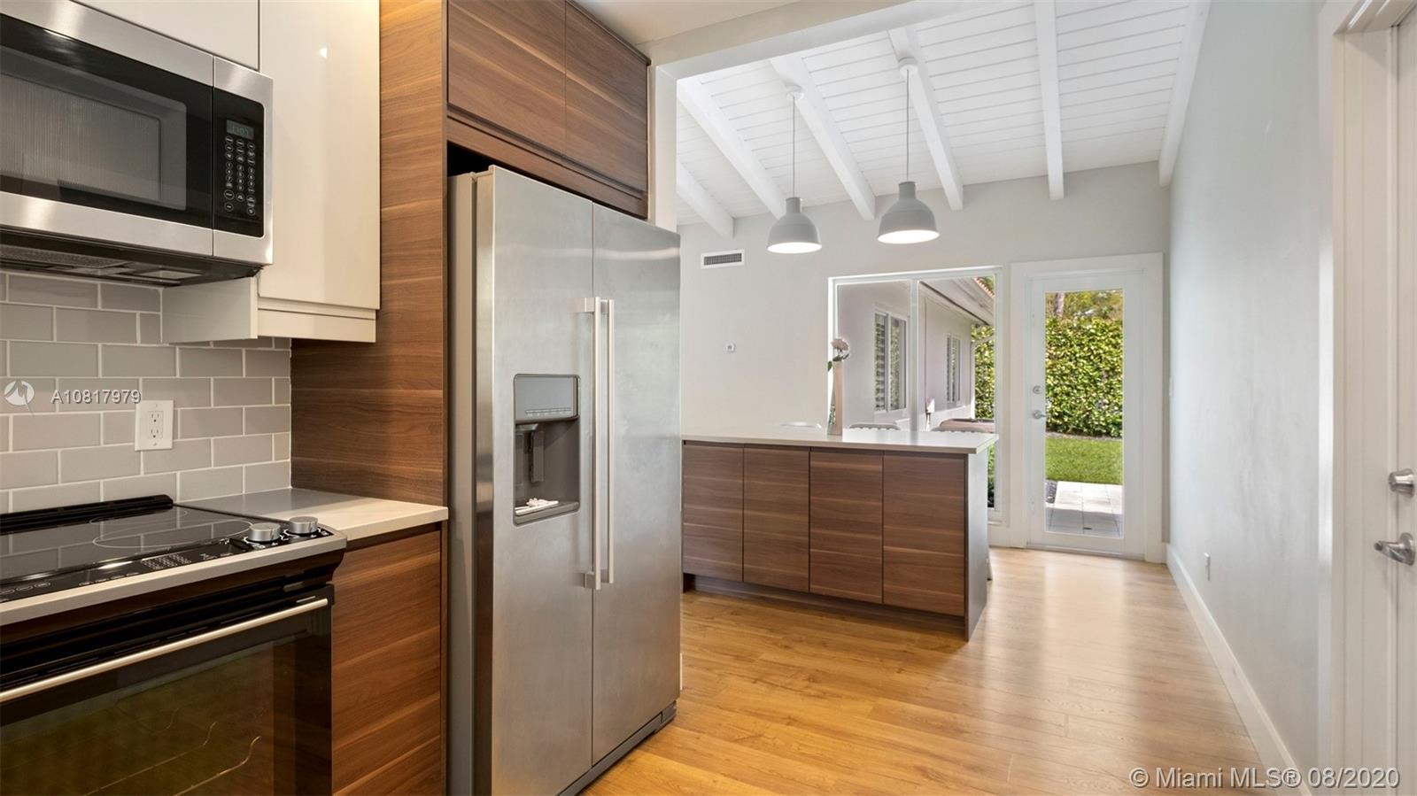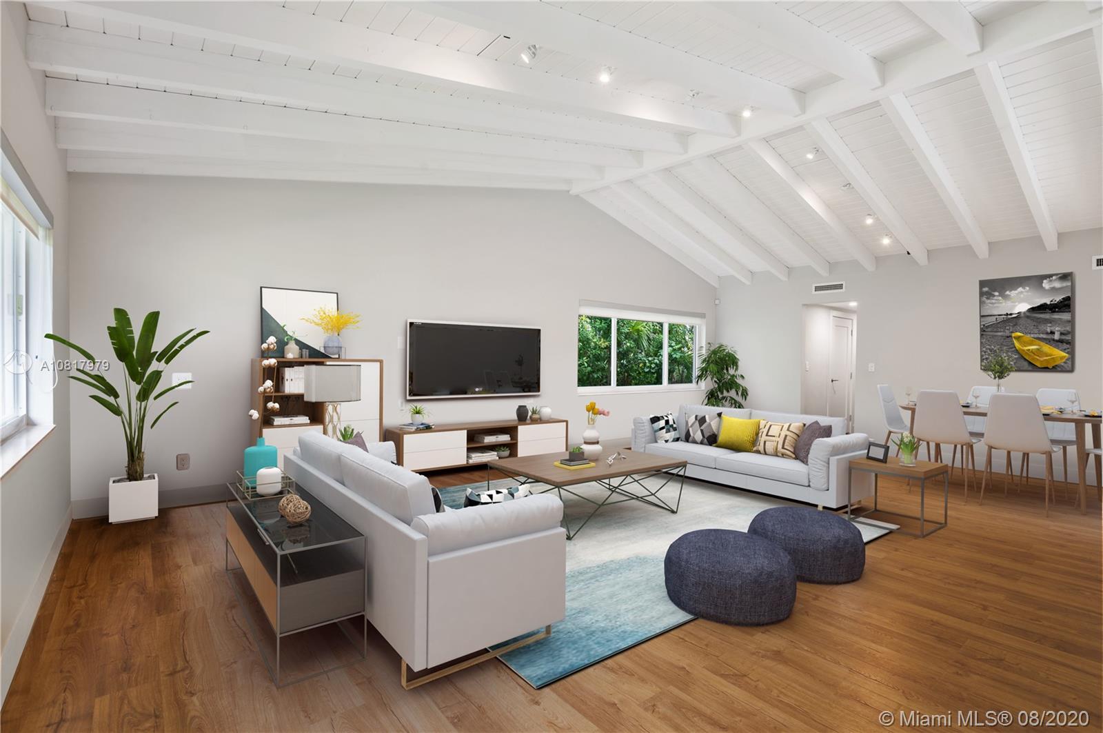 This is it! The ease of condo living with the privacy of a single family home. This 2-bedroom 2-bath updated north Gables beauty has new floors, vaulted ceilings, lighting, kitchen, appliances, wood cabinets with quartz counter tops, baths, A/C and abundant storage. Impact glass throughout, plantation shutters on the bedroom windows and a one-car garage complete this special home. The updates were done in 2018. Ready to be enjoyed! Vacant and easy to show.