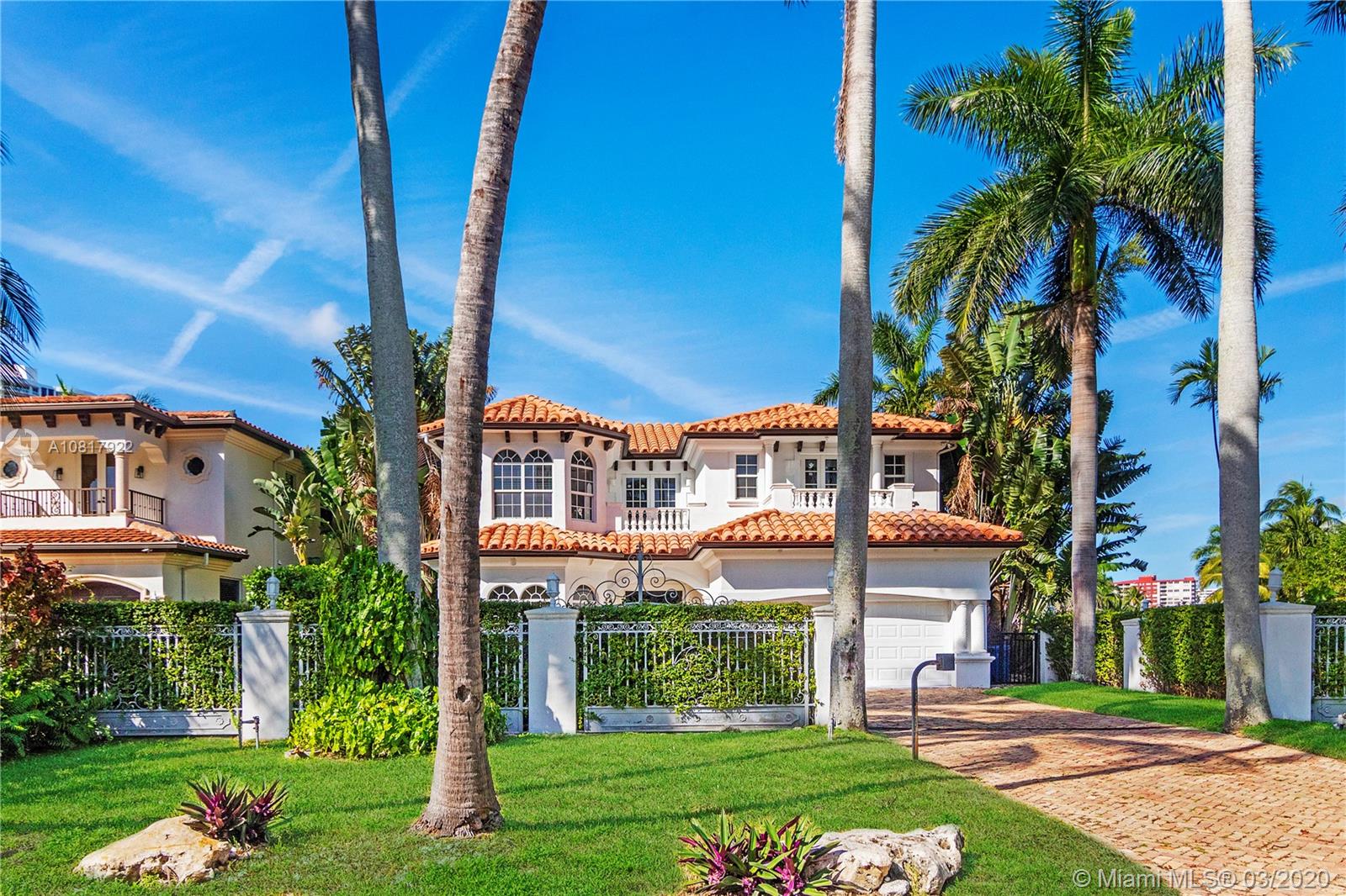 Luxury Mediterranean gated estate with Hollywood style pool and hot tub in the prestigious town of Golden Beach is ready for its new owners. The waterfront home feels airy with its high ceilings and spacious floorplan including five-bedrooms plus an office. With two-stories, the balconies offer attractive views of the Intracoastal and the tropical manicured park across the street. Located on a quiet street off North Parkway. Exclusive gated community w/ private beach for residents & their guests. Has it all- tennis, basketball & volleyball courts, playground, beach pavilion, jogging paths, dog parks, city hall & private police force. No association fee!