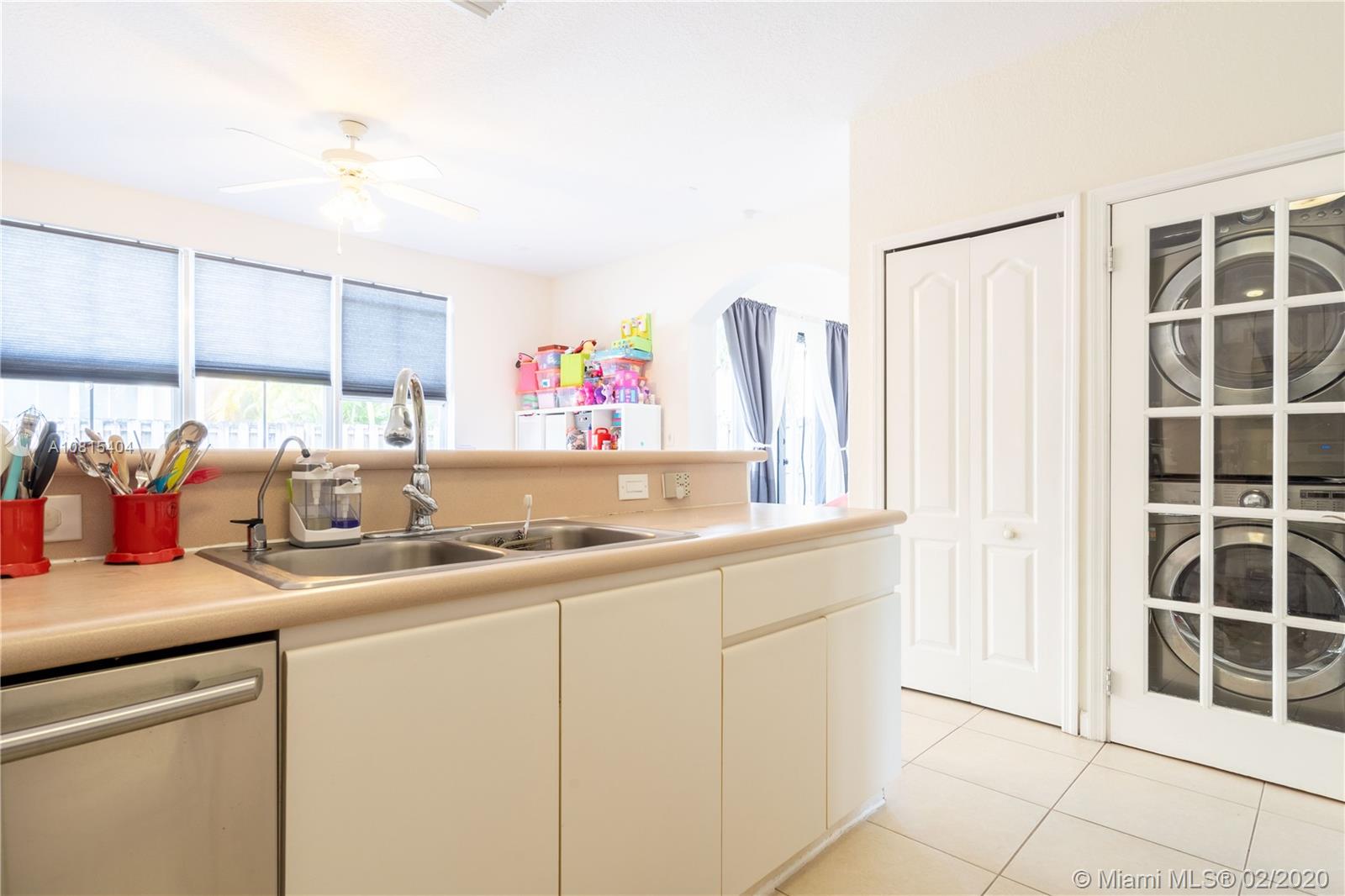 Don't miss out this great opportunity to own a corner unit surrounded with excellent dining and shopping. Great schools conveniently located close to highways. Garage was converted, could be office or kids play area, Hurricane protection, Travertine pavers. Huge backyard great for entertaining. Gated Community.