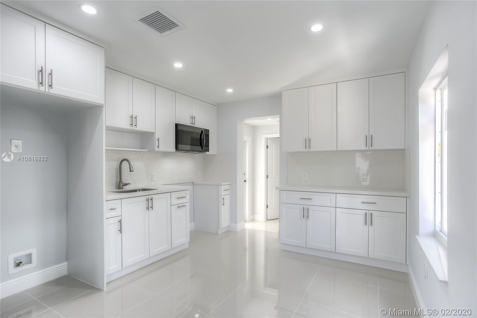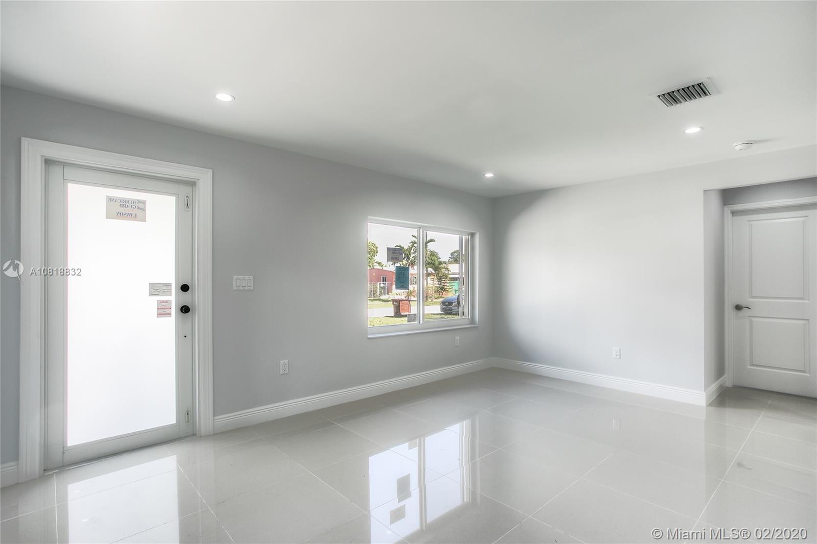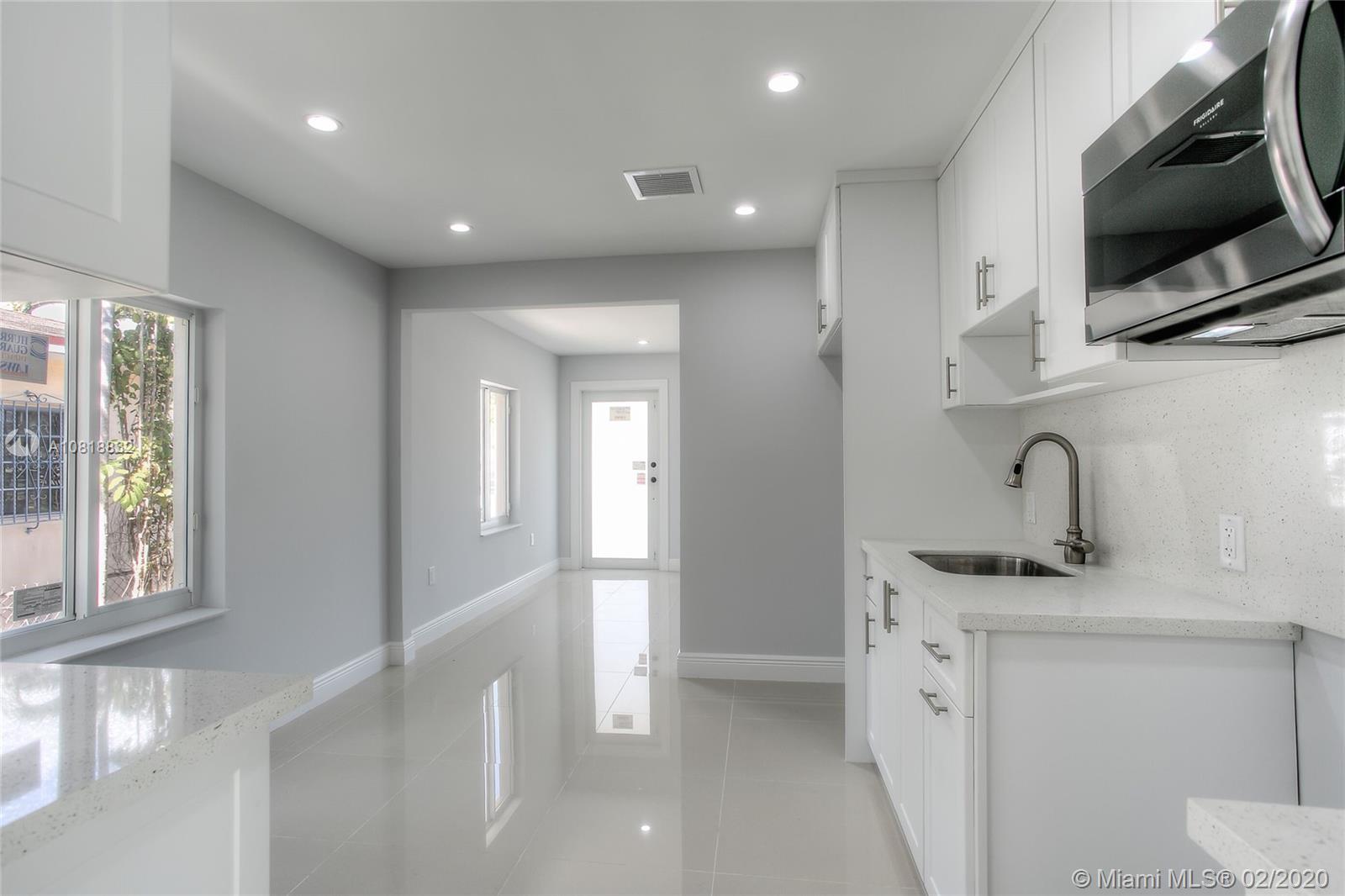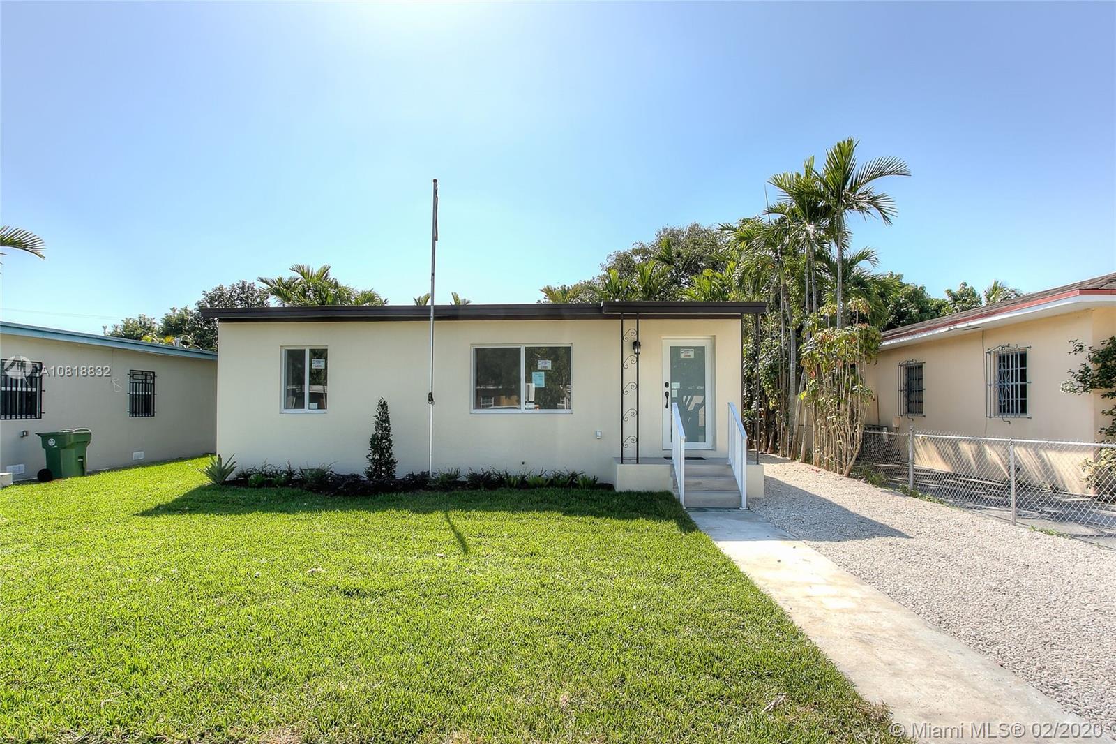Completely renovated in great location in Hialeah! This property has been redone from top to bottom including new roof, new exterior windows and doors, new interior doors, new floors, new kitchen, new bathrooms, new closets, new A/C units and ALL work was completed correctly with permits. Large lot with beautiful palm trees. Large master bedroom with ensuite master bath. Open layout finished with nice materials and craftsmanship.