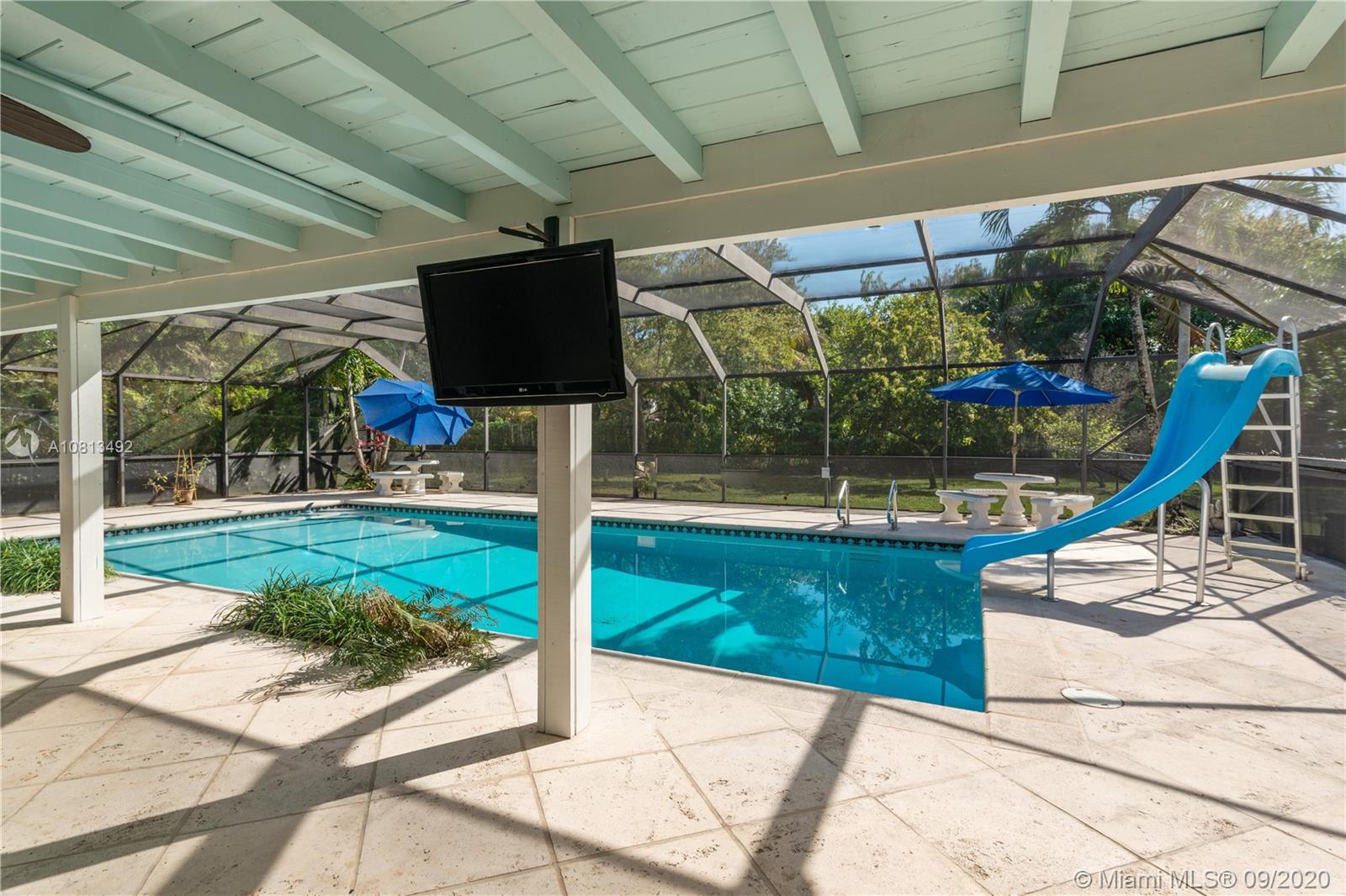 Fabulous pool home situated on a beautiful HUGE lush acre lot (39,000 sq ft) on quiet , friendly, low traffic street amongst newly constructed high-end homes. Home offers: high impact windows & doors including garage. New roof (50k) with high UV reflective tiles/ insulation. Modern chef's kitchen with custom pull out cabinets, lighting, top of line appliances and artist rendered back splash. Gas stove/oven and BBQ with underground gas line. Completely updated electrical (2011). 220v Tesla charge port. Beautiful back yard with fantastic trees , landscaping , fencing, great sprinkler system and fruit trees (mango, avocado, lychee, mamey, citrus ) . Large 8 ft 40x20 pool, resurfaced with diamond brite. Additional space that can be used for office/den /gym or bedroom. Easy to show!