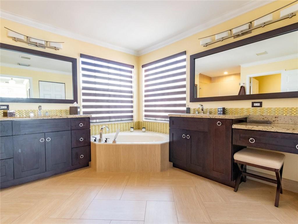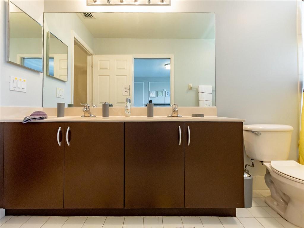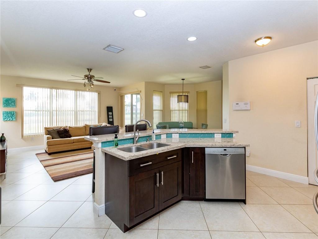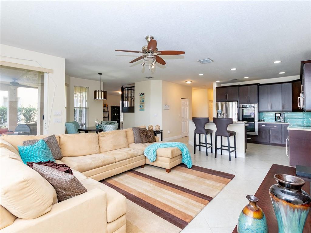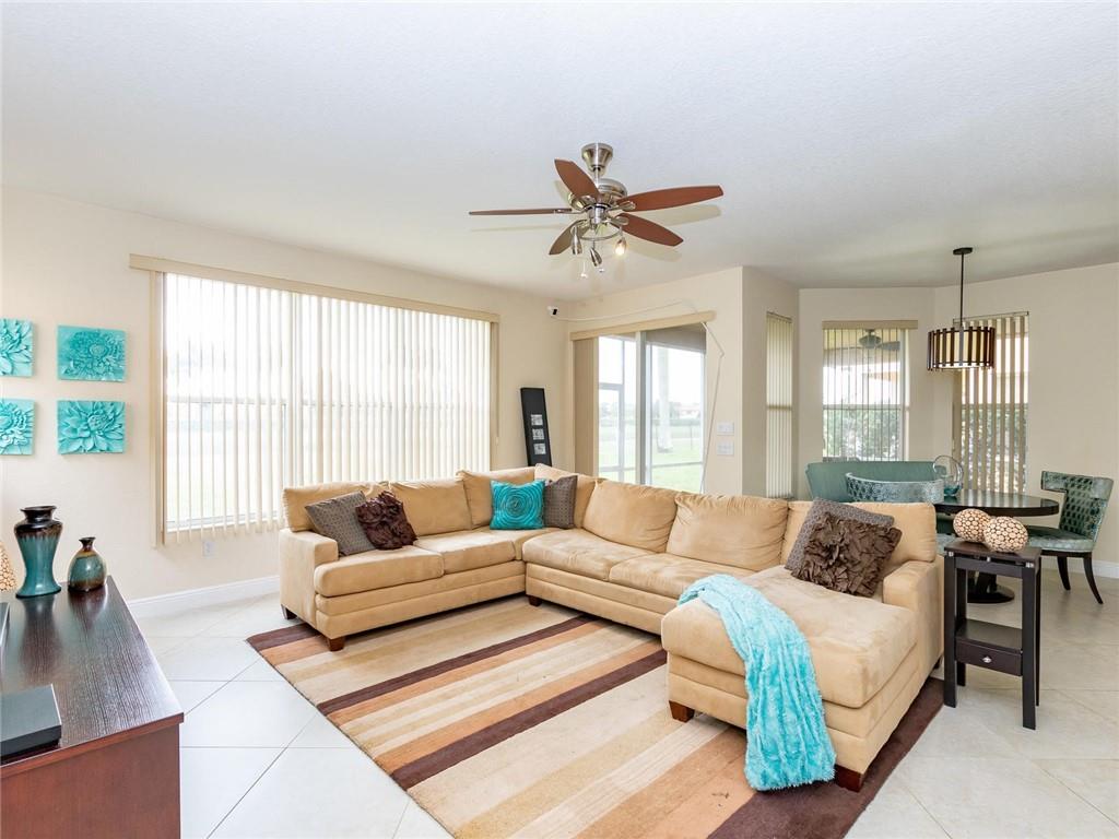 This remodeled 2 story in a 24 hr guard gated community features a great open floor plan, 6 full bedrooms, 4 baths & 3 car garage. Over $100k in upgrades. Largest model in Silver Falls. Formal dining & living rm leading to new open kitchen with quartz countertops, walk in pantry & high end appliances. Spacious family room. French doors open to new private screened in porch/patio overlooking canal. 24x24 diagonal tile. 1 full bedroom/1 new bath on the 1st floor. Oversized master bedroom suite with sitting area, fully renovated bathroom with his & hers vanities, 2 custom walk in closets & dressing room. Laundry rm downstairs. 2 Rheem 16 seer A/Cs 2014. Plenty of room for a pool & swing set. Maintenance fees include cable, recreation, pool, dog walking trails. Great family neighborhood.