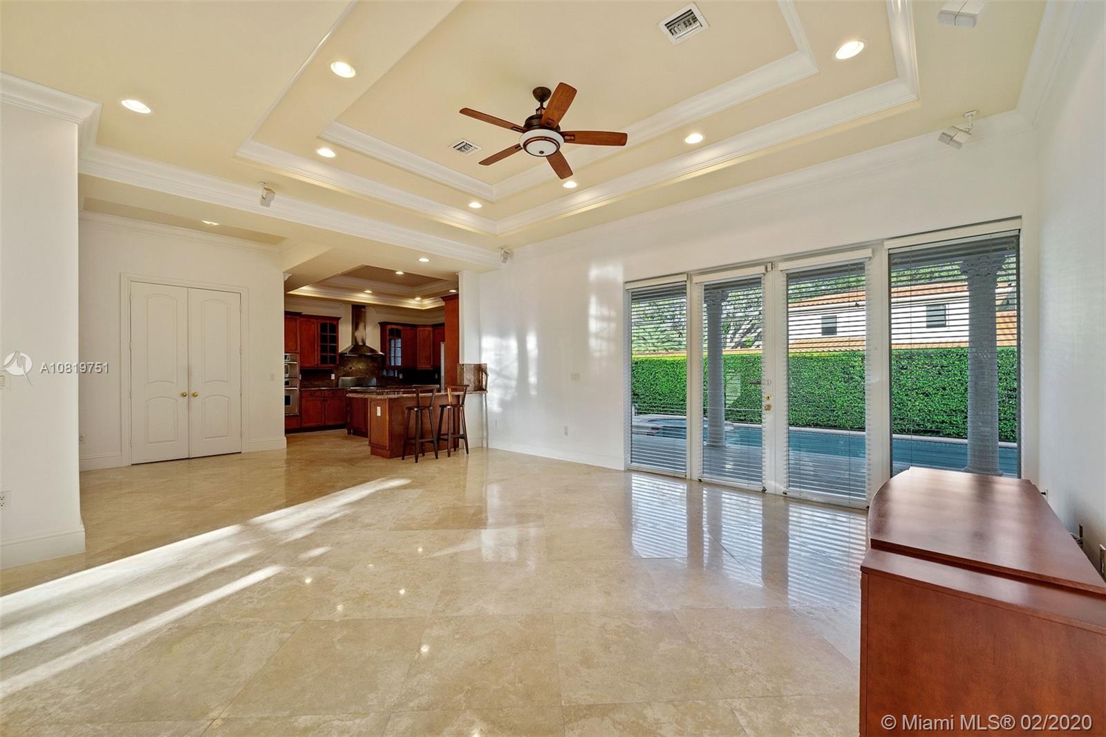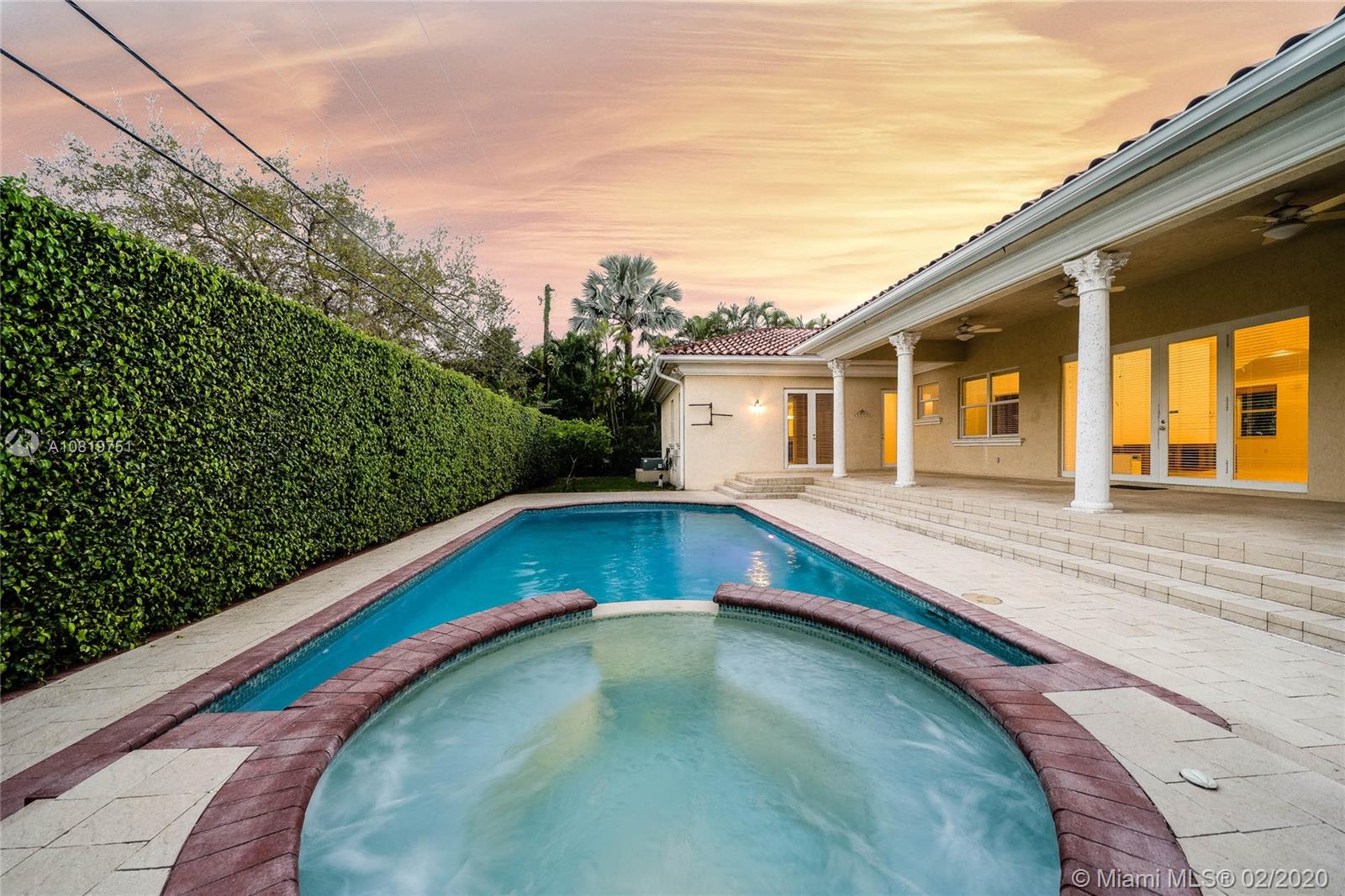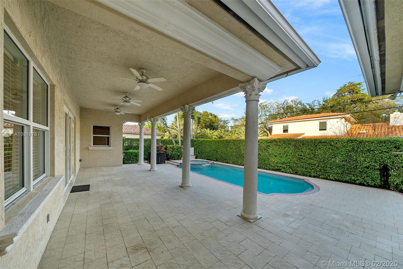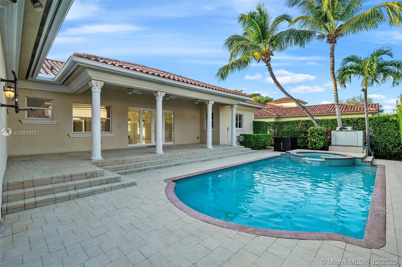 Gated & fenced, 4 bdrm + office/den, 4 bath Mediterranean beauty on a quiet street in prestigious, North Coral Gables. Built in 2005. Wonderful natural light, high ceilings, recessed lighting & crown molding. Marble flooring in living areas, wood flooring in bdrms. Grand living rm and dining rm. Fantastic family rm open to kitchen, overlooking the pool & backyard. Lovely kitchen has granite countertops, wood cabinetry, gas stove, double oven, eat in snack bar. Impact windows and doors. Indoor laundry room. 2 car garage. Great backyard with covered patio, pool/spa, whole home generator and grassy space. Close to Granada Golf Course, downtown Coral Gables and a short drive to the airport. Visit https://my.matterport.com/show/?m=bnLeHdZBg1Y&brand=0 to view the virtual floor plan & tour.