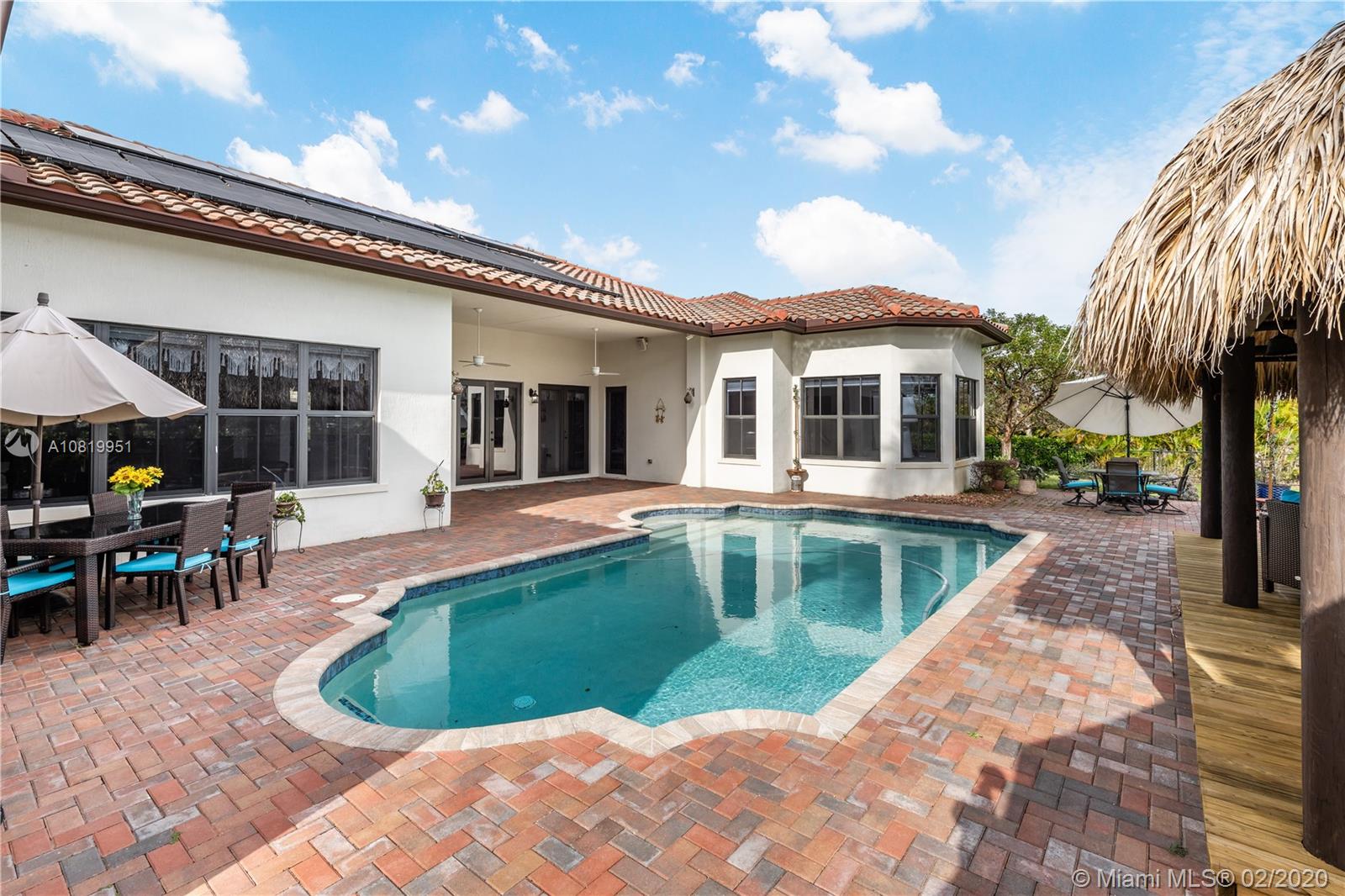 Magnificently upgraded 1 story home in the most prestigious community of Parkside Estates. This gorgeous smart home welcomes you upon entering the front door. 5 bright large-Bed/3 full-Bath home has a gourmet kitchen that would make you want to whip up yummy meals to serve your family and friends. Modern Style luxury estate has Marble flooring, impact windows T/O, luxury curtains and equipped with solar panels that helps reduce your electricity. Security System w/ Cameras + Wifi. Escape to blissful summers nights with you private below ground pool and Tiki HUT (2019) to entertain to your hearts content. Come and see the allure of this magnificent residence. Get away from it all and pamper yourself to some natural luxury as you make this lovely property your home.