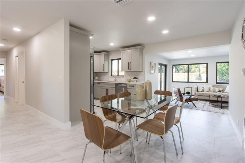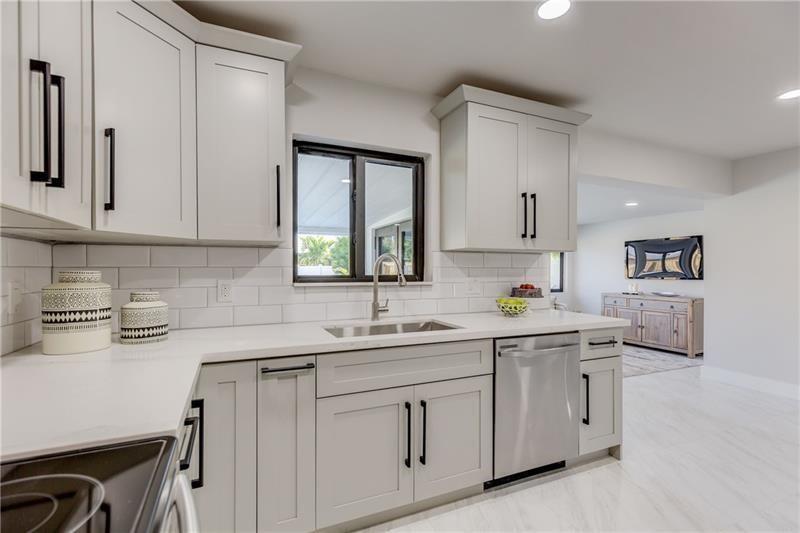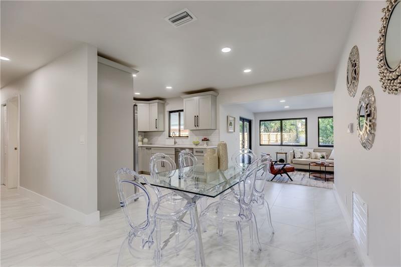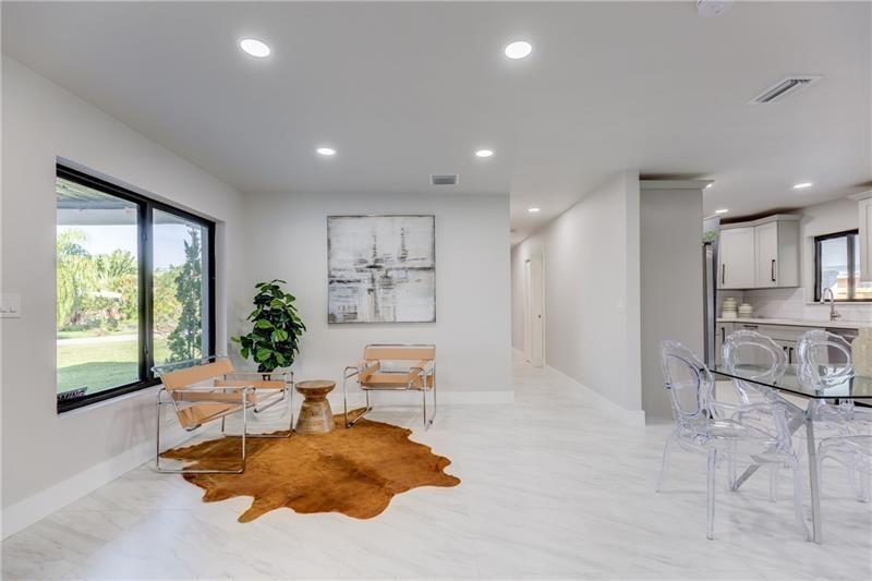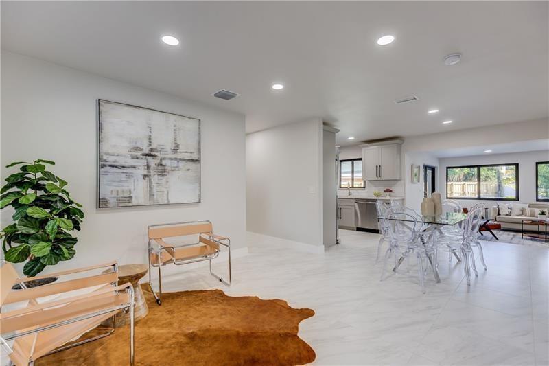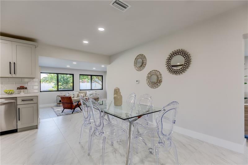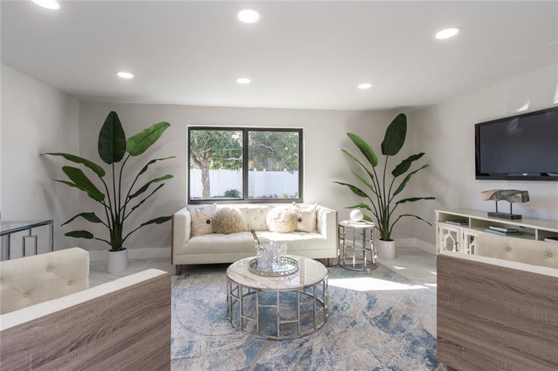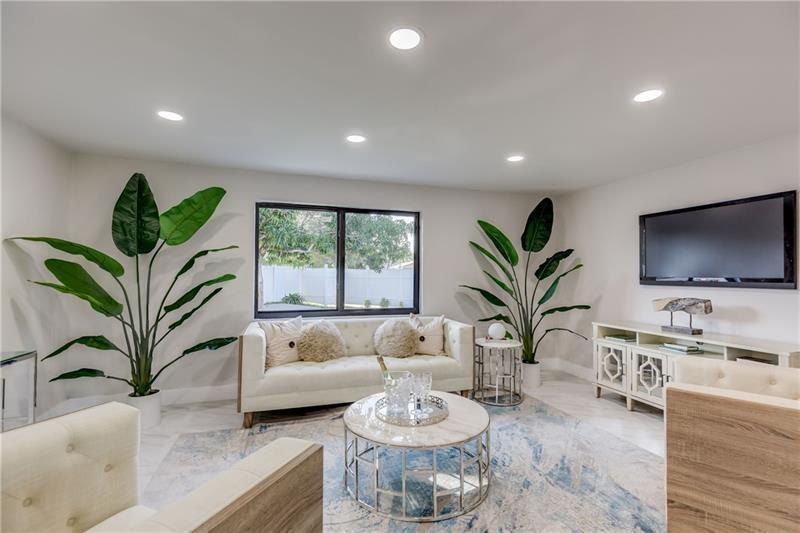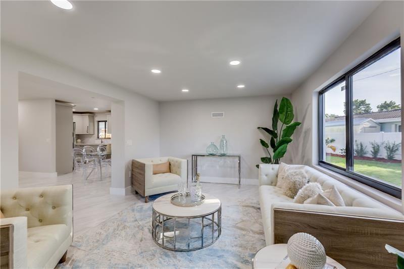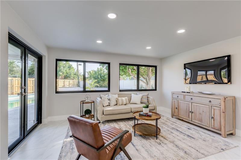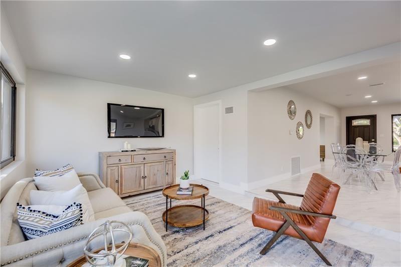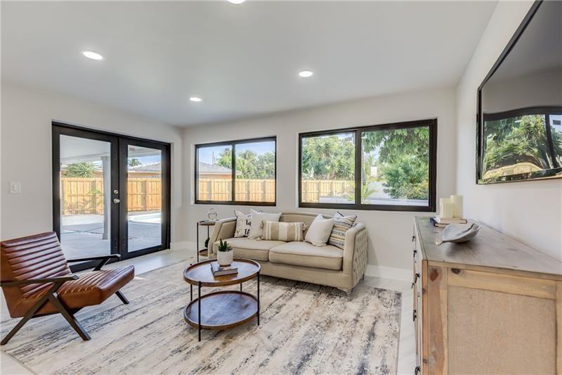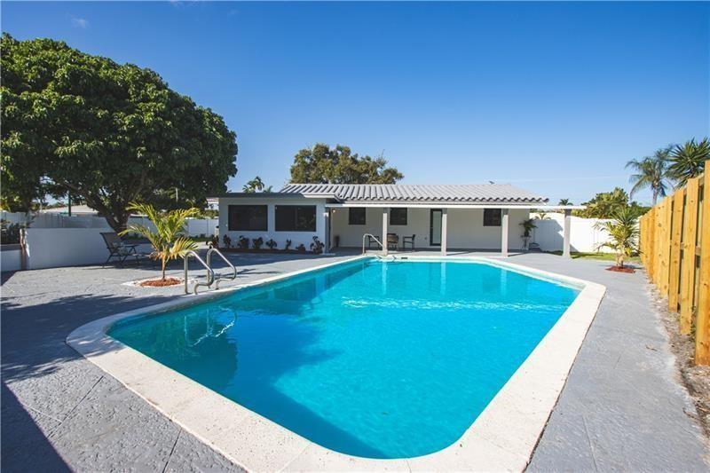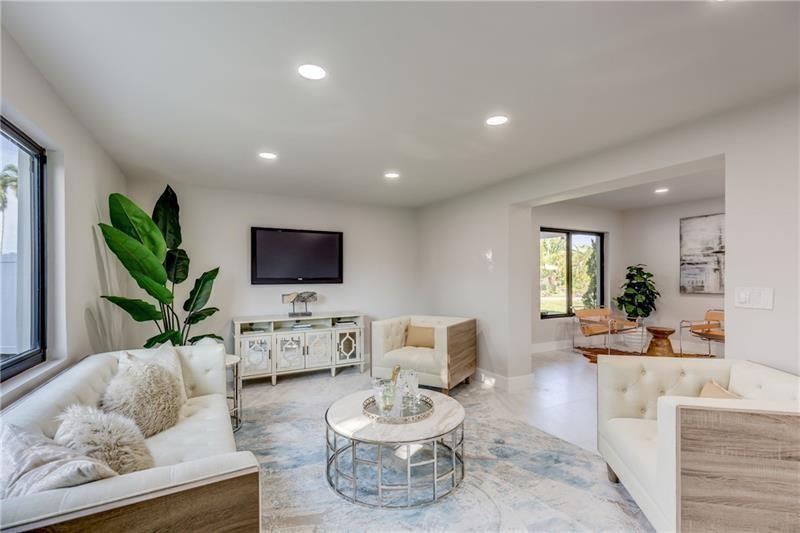Stunning custom remodeled home by AJ Fulton Construction Service. This modern home located on an over sized lot (12,190) has everything. Features include: Open kitchen concept, solid wood cabinetry, quartz counter tops, 2 living areas, pool views from the kitchen, dining and living room, covered outdoor area for entertaining by the pool, all impact windows & doors, new electric, newer A/C, storage area, corner lot, spacious fenced yard with room to park a boat or RV & more. Minutes to the beach, restaurants and shops & I-95.