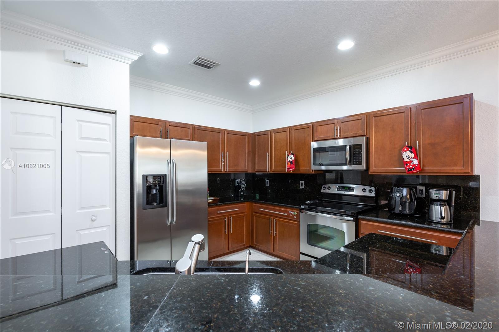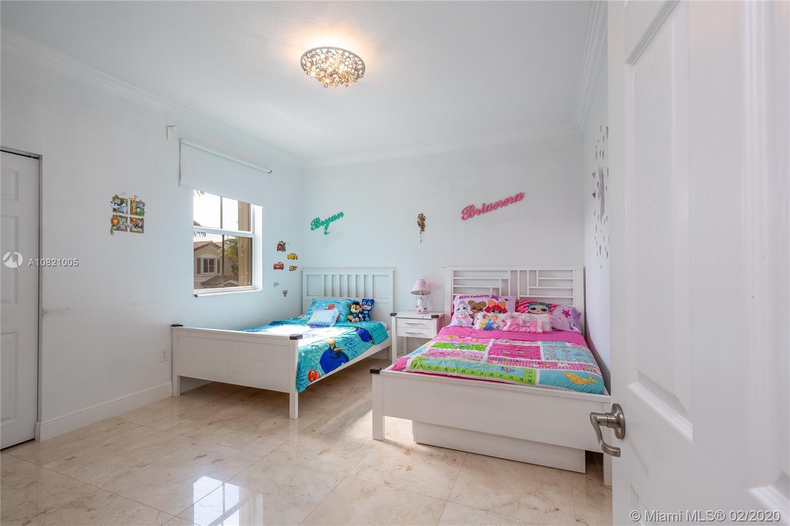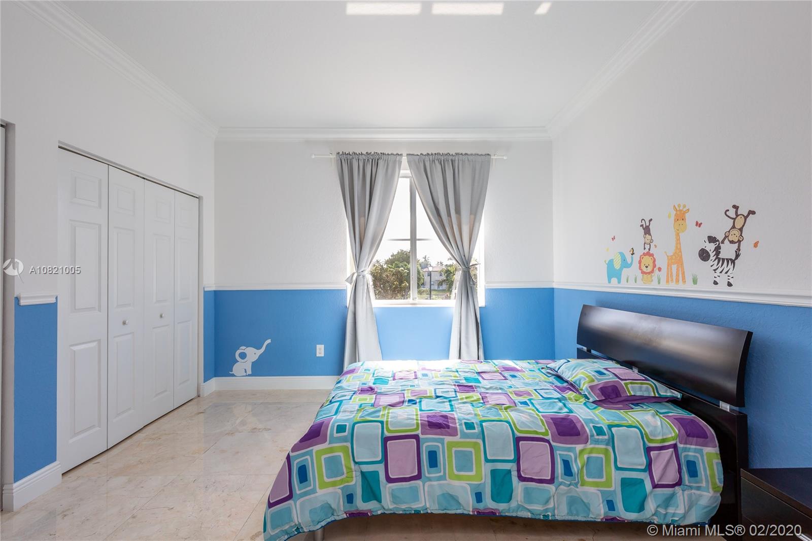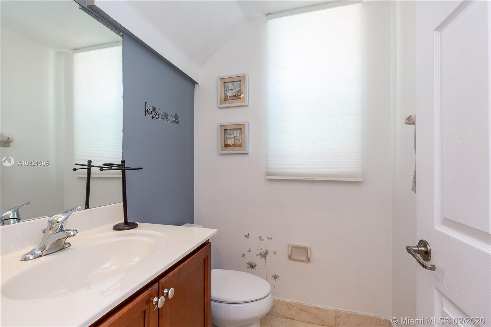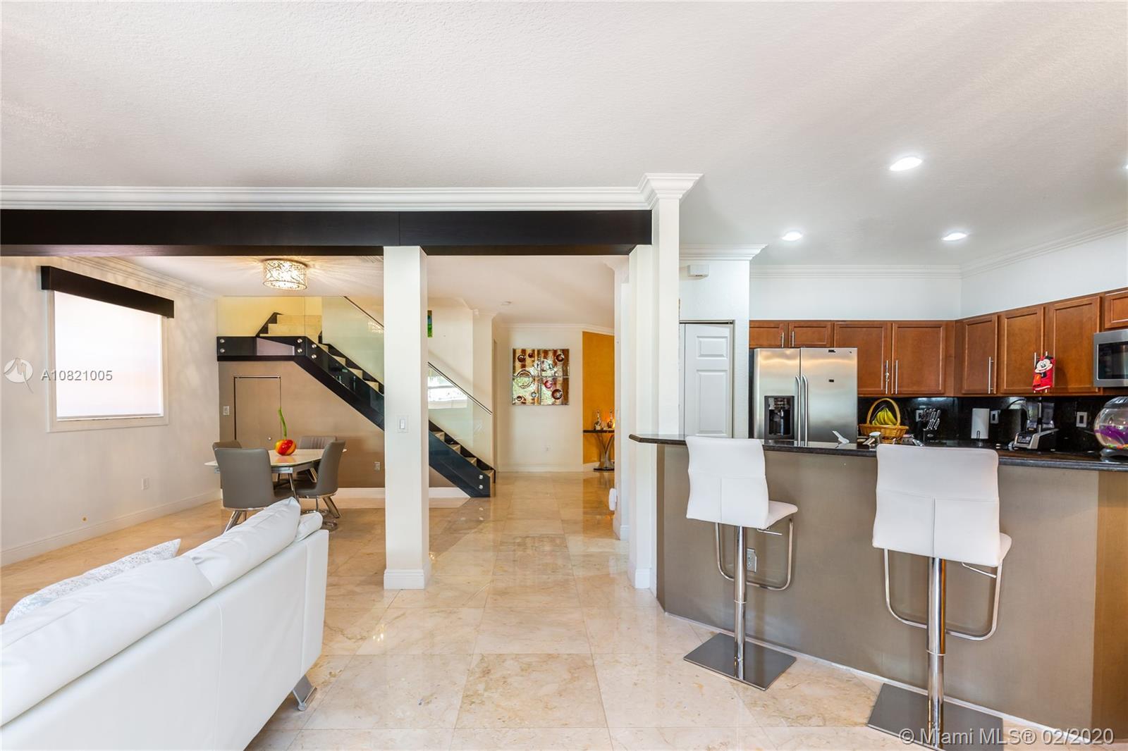 Gorgeous 4 bedrooms and 2.5 bathrooms two story single family in gated community Balmoral Estates in Doral. Open floor plan, beautiful marble flooring throughout the property. Kitchen with stainless steel appliances, wood cabinets and granite counter top. Modern stainless steel glass railing on the stairs. Spacious master suite with oversized walk-in closet, and master bathroom with double sinks. Large patio with pergola. Garage for 2 cars and driveway for 2 additional cars. Accordion hurricane shutters in all windows and sliding doors. Community pool. Walking distance of A+ schools, supermarkets, restaurants, banks and shops. Close to the Miami International Airport, Dolphin Mall, International Mall and the Turnpike. Ready to Move In.