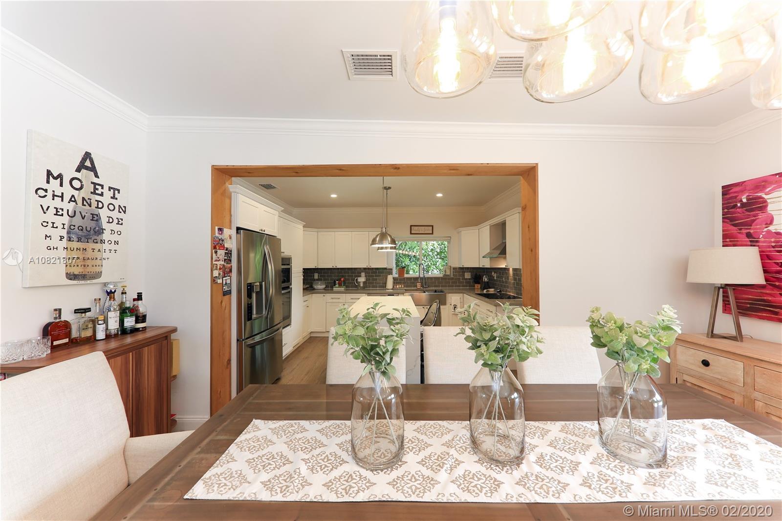 Beautiful home in a quiet street of Miami Shores. Open Concept and completely renovated three years ago with new roof, new electrical, new plumbing, new AC and impact windows. Custom closets in all rooms and stainless steel appliances in the kitchen. Large backyard with a modern pool and charming landscaping. One car garage. Must see !