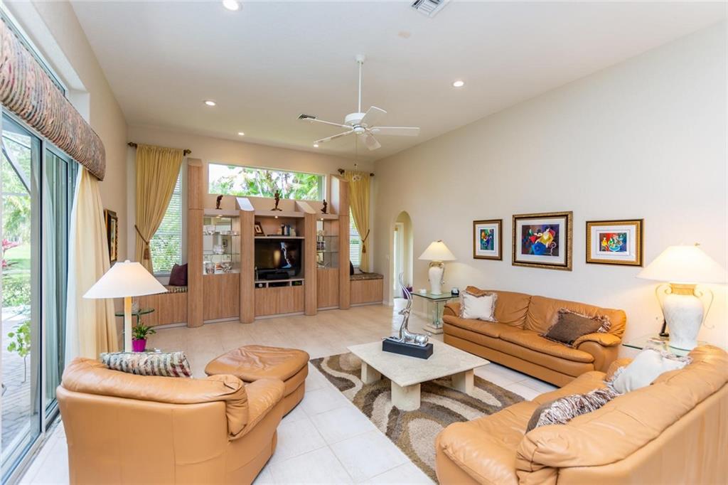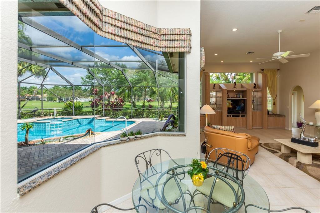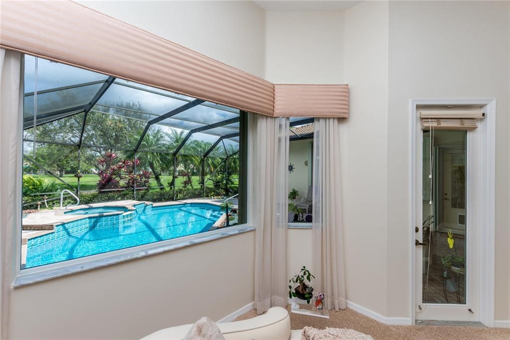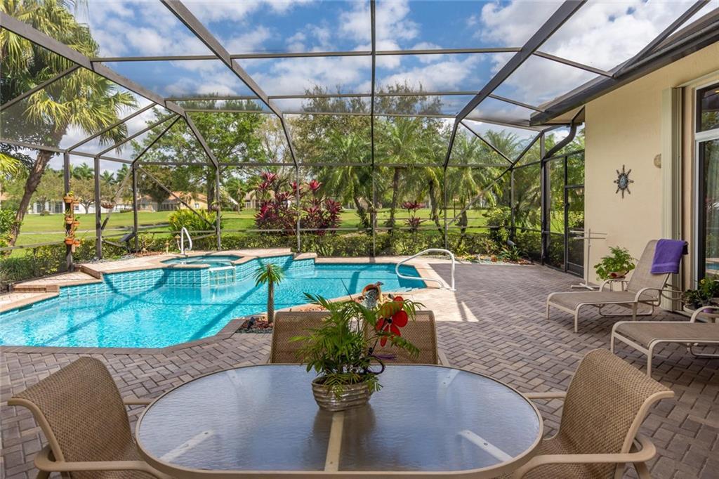 GOLF COURSE BEAUTY!! 4 BEDROOMS+OFFICE/3 FULL BATHS OPEN, SPACIOUS LIVING AREAS ALL OVERLOOKING THE AMAZING SCREENED-IN POOL/PATIO AND GOLF! NEW ROOF, 2 NEWER A/C UNITS, ACCORDION SHUTTERS,HIGH VOLUME CEILINGS, TRIPLE SPLIT FLOOR PLAN WITH NEUTRAL FLOORING THROUGHOUT. CUSTOM KITCHEN, 42" CABINETS, PULLOUTS, GRANITE COUNTERS & BACKSPLASH, CENTER WORK ISLAND & LARGE SNACK COUNTER. MASTER FEATURES A LARGE SITTING AREA, 2 CUSTOM WALK-IN CLOSETS, MARBLE FLOORS IN BATH WITH SEPARATE SHOWER & TUB. ORIGINAL OWNER HAS MAINTAINED IMPECCABLY. CENTRAL VAC, FINISHED GARAGE WITH EXTRA STORAGE, POOL RECENTLY RESURFACED, PAVER DRIVE/WALKWAY/PATIO.
