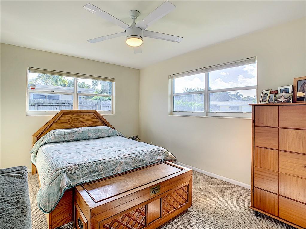 Do you want to live in a quiet neighborhood just a short bike ride from the beach? Then this cute 2 bed/2 bath home is it. This home is situated on a quiet dead end street in Beachway Estates. It features tile floor throughout main living areas with newer berber carpet in the bedrooms and a very spacious laundry room under air. There are Impact window/doors and the interior/exterior was recently painted. In 2018 – the gutters, irrigation system, kitchen appliances and all bathroom and kitchen fixtures were replaced. AC was replaced in 2017. There is a huge backyard with a privacy fence and has plenty of room to add a pool and make your own private oasis. This meticulously maintained home is in a highly desirable area at a great price! Just pack your bags and move your furniture in.
