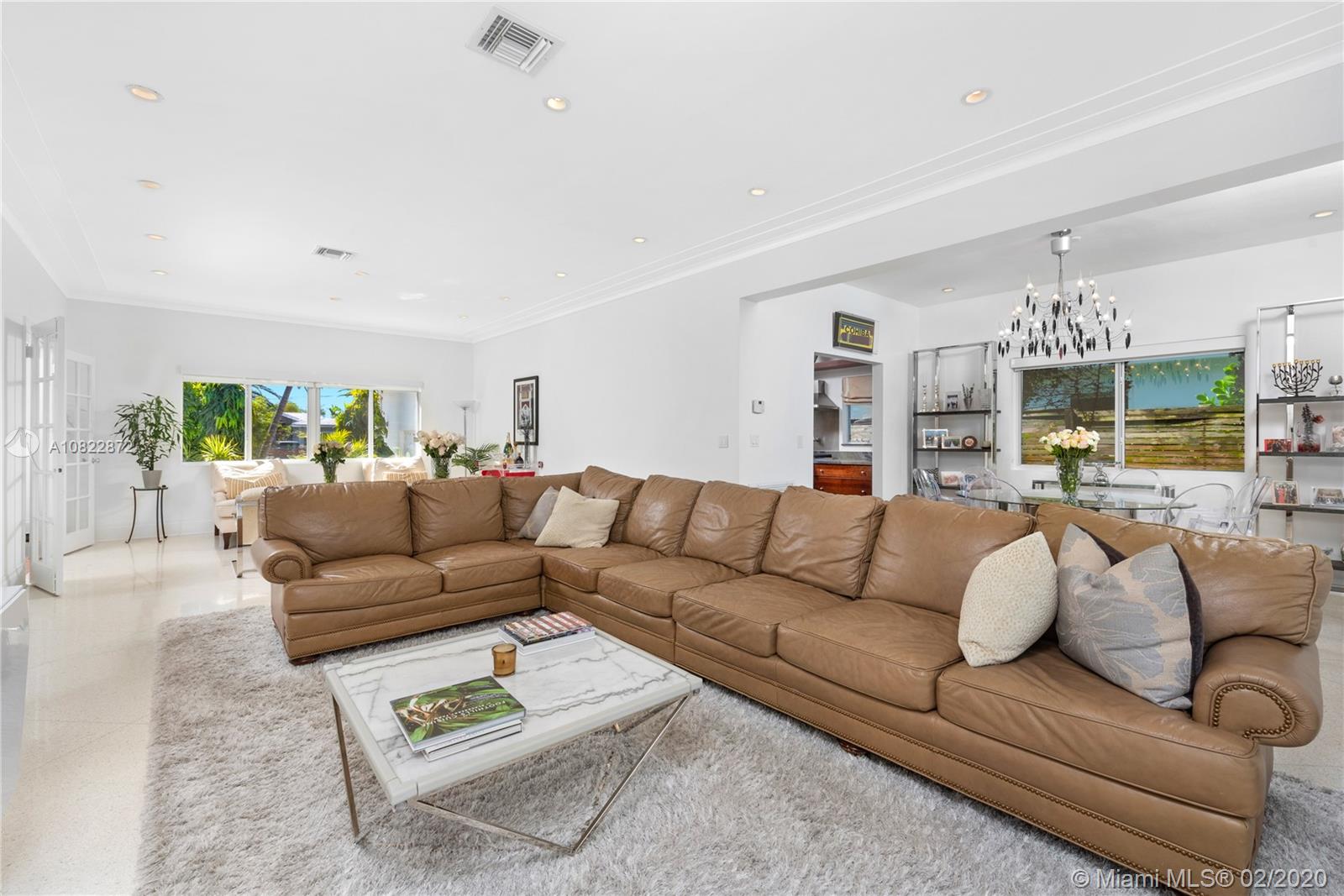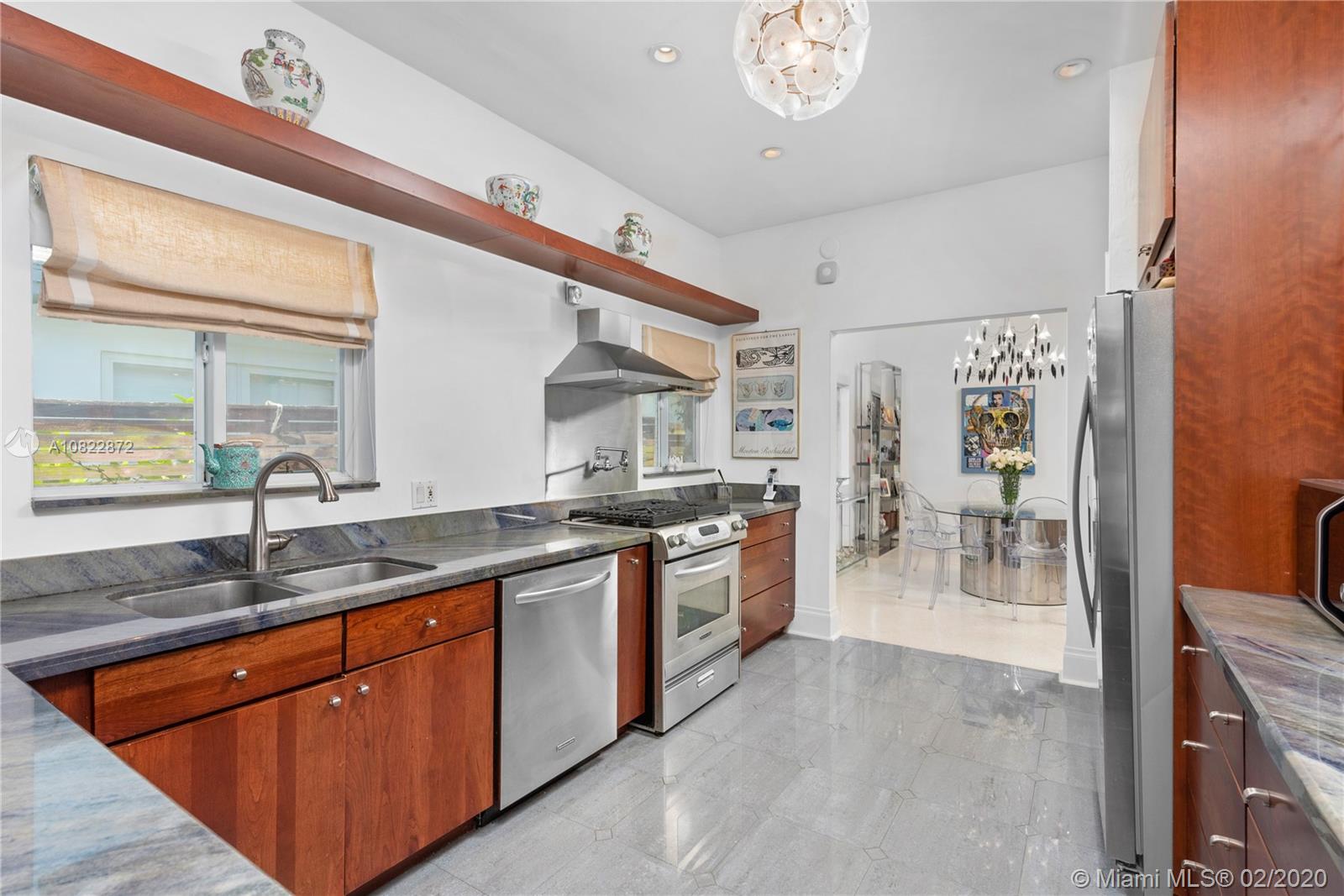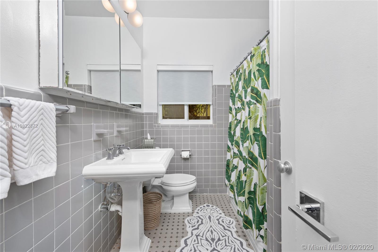 Art Deco Chic Family Residence in coveted Lakeview neighborhood. Flooded w/ natural light & lush tropical landscaping, relish a swim in your heated lap pool & built-in spa, or private outdoor dining on your terrace w/ electric sun canopy. All bedrooms w/ en-suite bathrooms, impact windows & doors, remodeled kitchen w/ granite countertops, gas & stainless-steel appliances. Open-concept living & dining, terrazzo flooring, & elevated ceilings. 2 rooms feature hardwood flooring & the third bedroom remodeled w/ contemporary bathroom, porcelain flooring, & custom shades. Quiet Mid-Beach location great for kids & pets, close to beaches, LGCC, JCC, Fisher Park, hip dining & shopping! Easy commute to highways, MIA, downtown,& great schools! Matterport @ my.matterport.com/show/?m=Xm1v81CBbnF&mls=1
