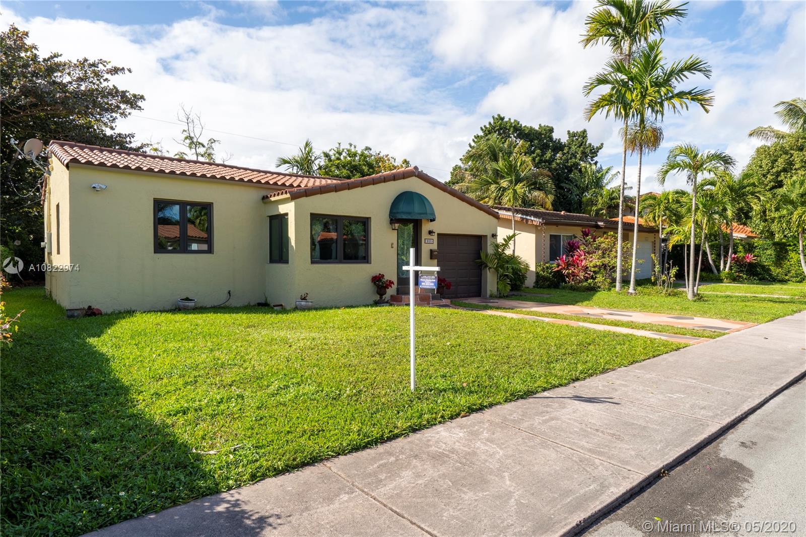 WELL PRICED AND READY TO MOVE! 3 bedroom / 2 bath Single family home w/ TOTAL LIVING AREA OF 1,310SQFT located in the heart of Coral Gables, surrounded by lush green areas. Strategically located in a cul-de-sac street with minimal traffic. The roof was replaced 4 years ago and HIGH IMPACT windows throughout --Freshly painted exterior, new driveway, original polished hardwood floors. Additional bedroom with own bathroom in stylishly converted garage. The best location in the area: 15 minutes from Miami International Airport, UM Campus, Hospitals and A+ Schools. Few steps from the Granada Golf Course, Athletic Club & Country Club and Miracle Mile. NO open, expired or existing permits----- EASY TO SHOW!