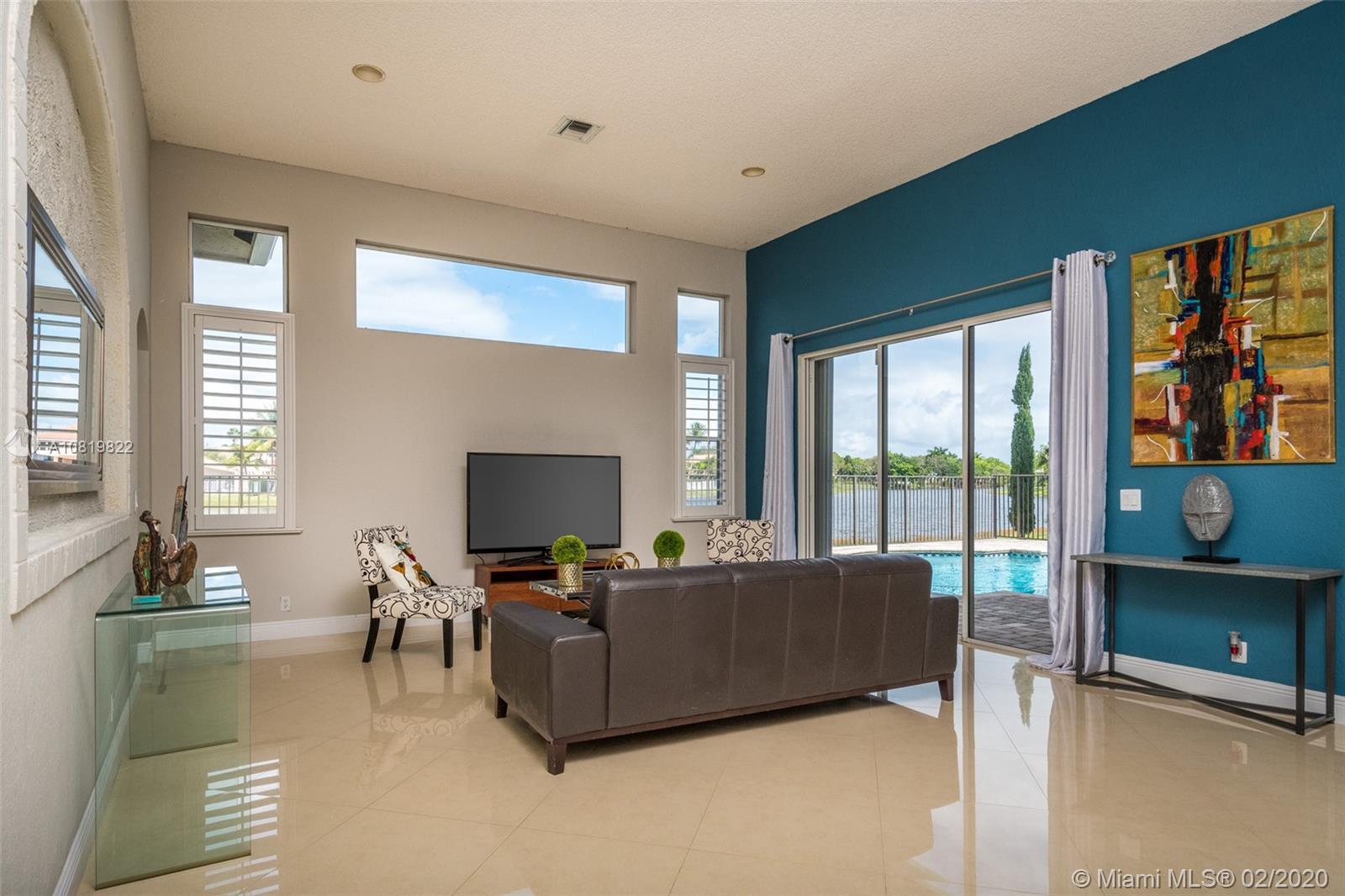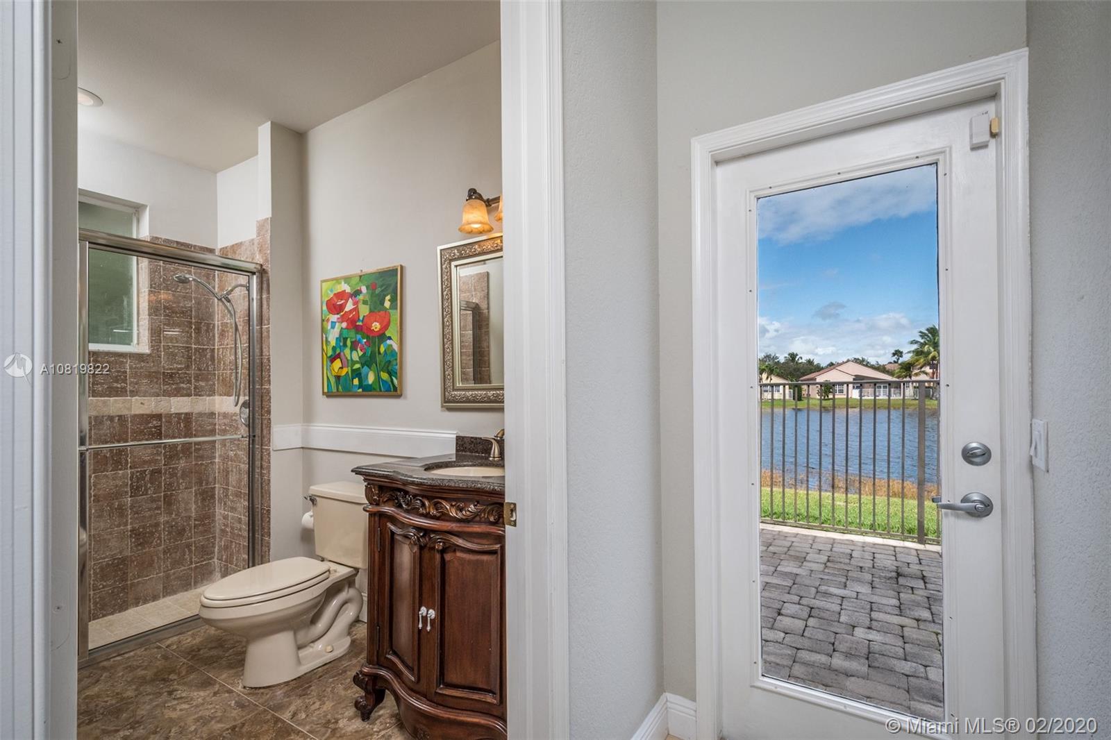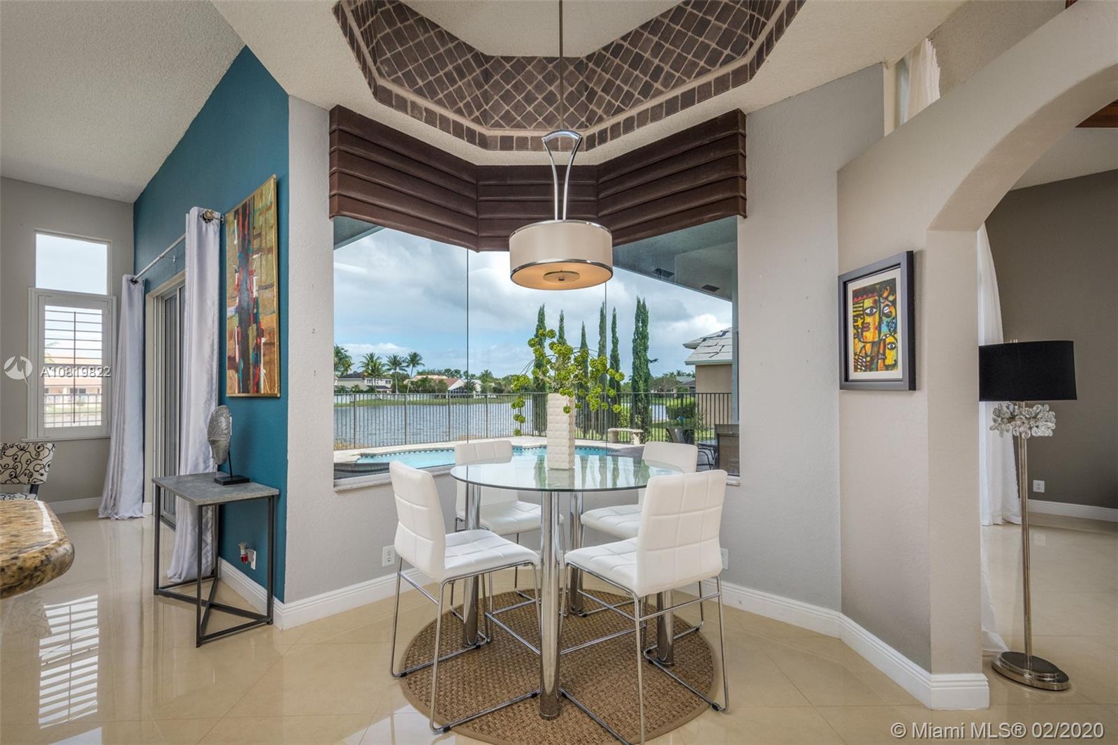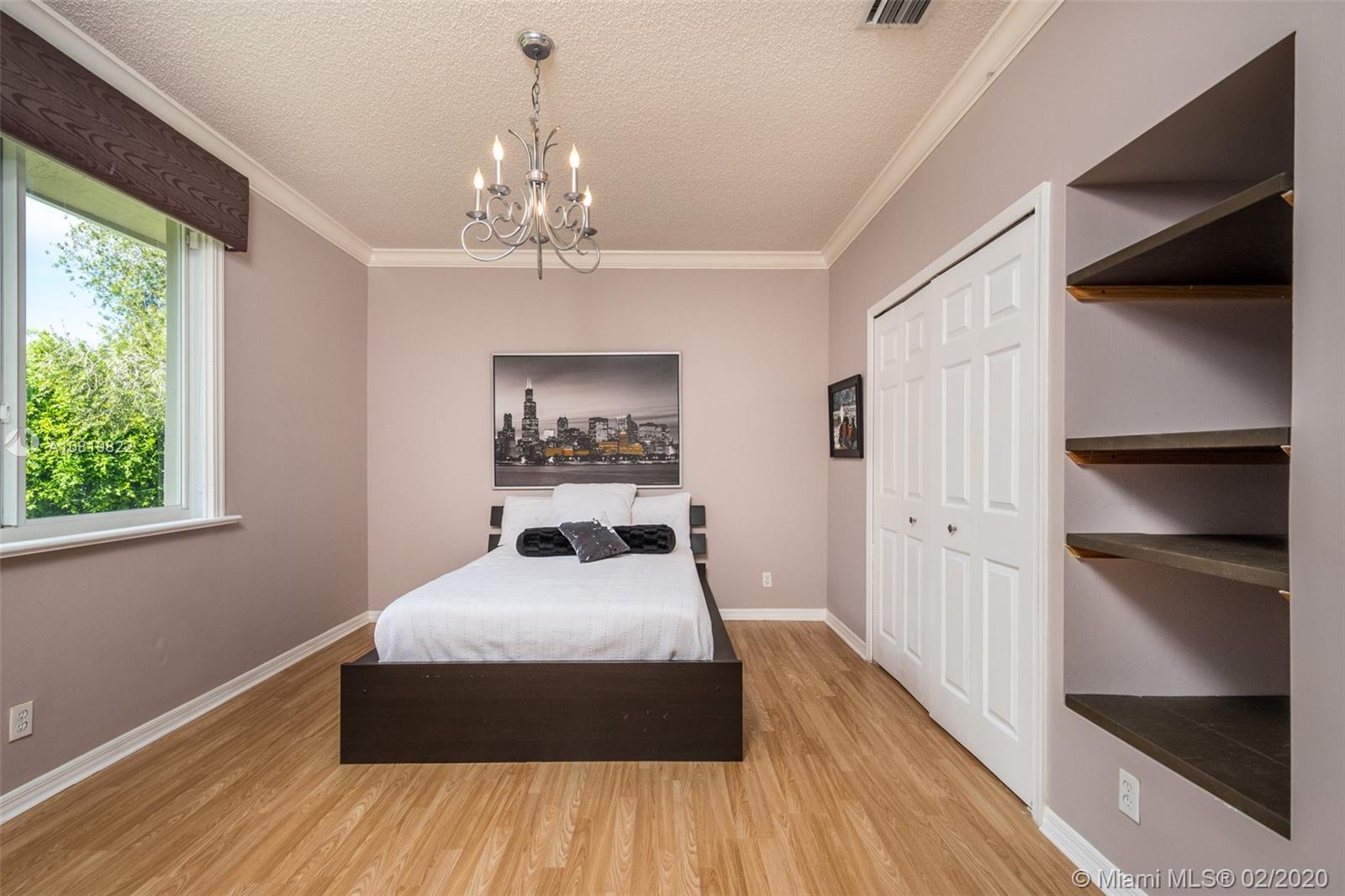 Check out our new 3D tour. Tucked on a quiet cul de sac street this custom built home features chicago brick driveway and walkway. This four bedroom plus office one story shows light and bright. Enjoy long lake views from expansive paver patio, remodeled pool with large overhang fully fenced yard. Neutral porcelain tile in living areas with soaring ceilings. Freshly painted interior. Enjoy contemporary white kitchen, granite countertops, center island and Stainless Steel appliances. Grand master bedroom with windows on water and pool. Master bath with roman tub, dual sinks and shower. Extensive crown molding. plantation shutters. Cabana bath and so much more.
