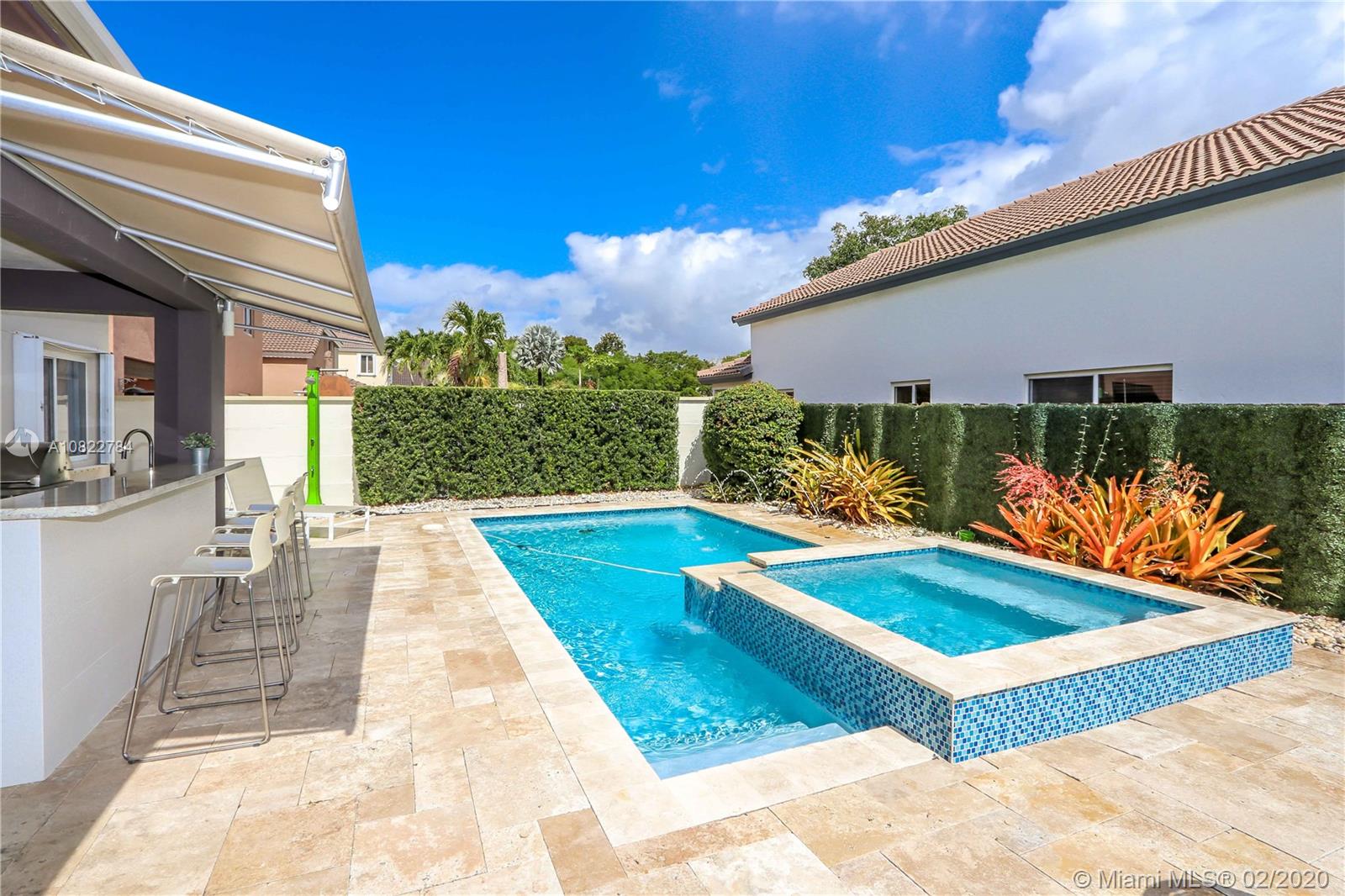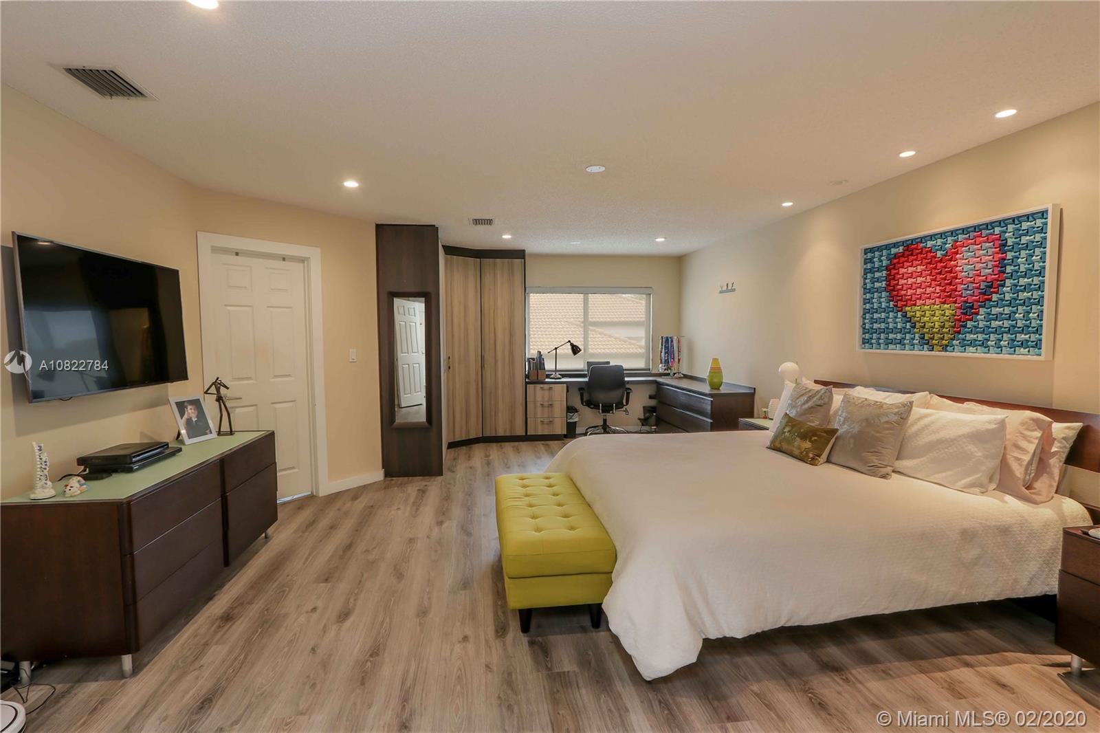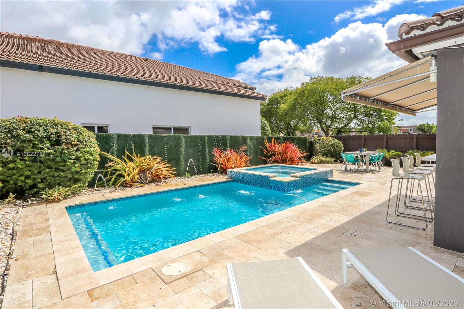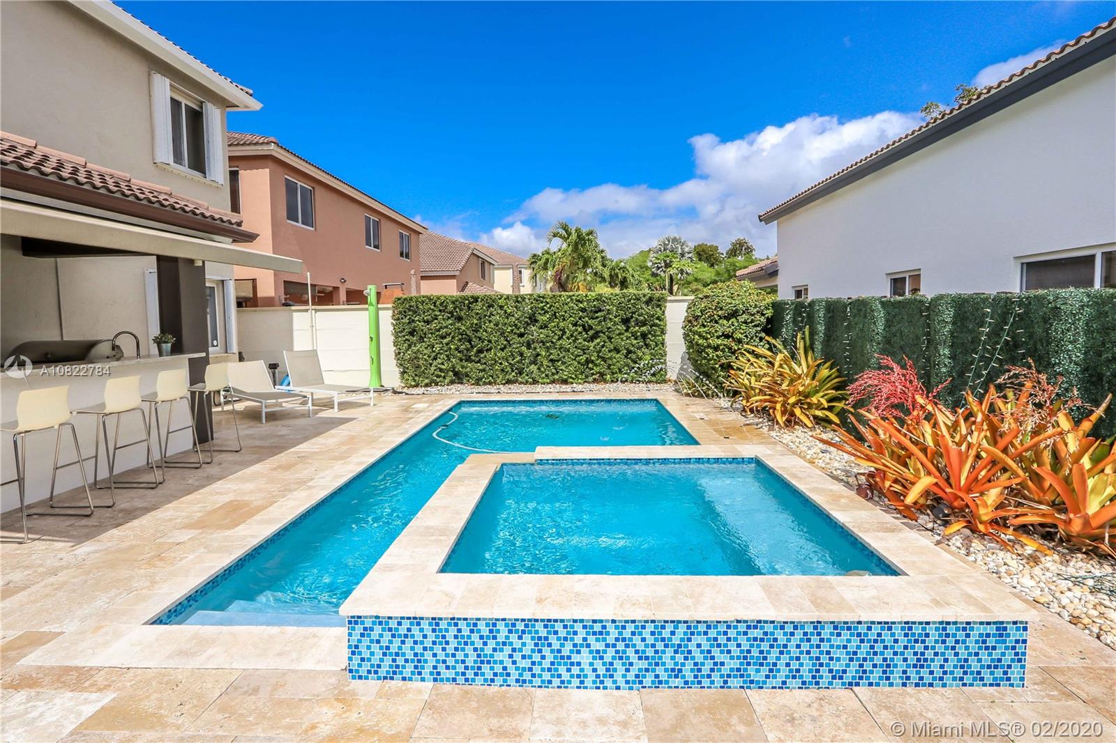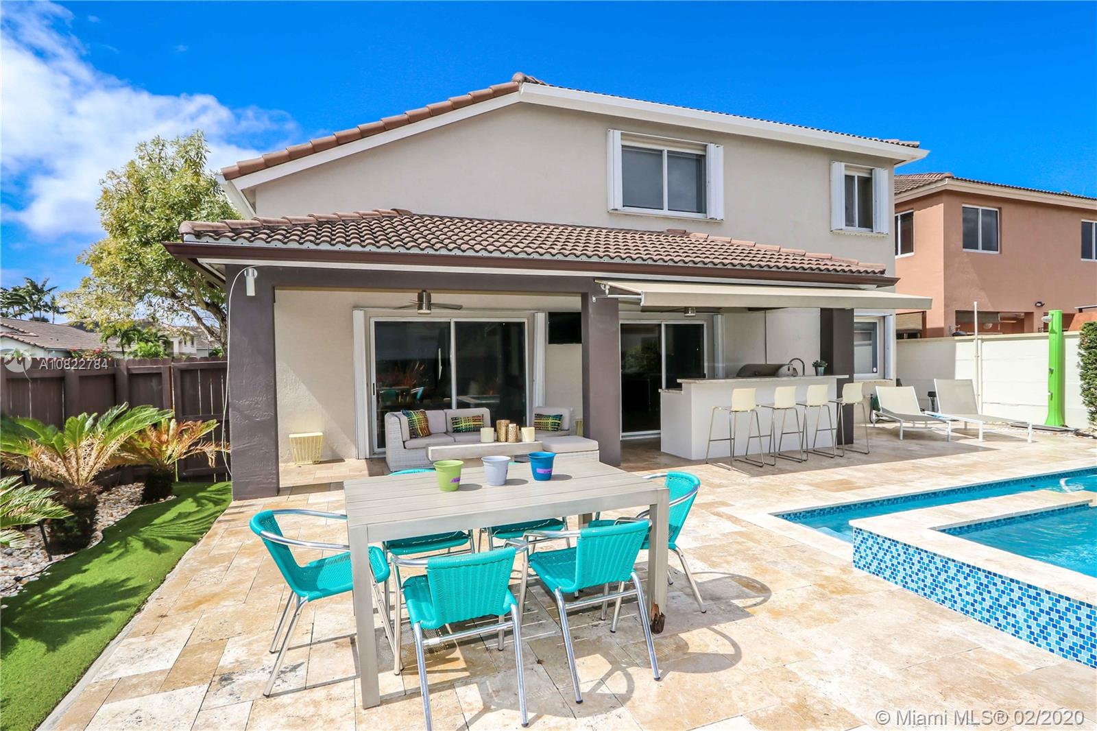 This property is a must see!! This impeccably renovated 4 bedroom, 3 bathroom house is ready to move in. This house has been completely upgraded with an open social area that encompasses the living, dining, and family room into one large space. The beautifully remodeled gourmet kitchen located right next to the cava features a large cooking island, and top of the line appliances. The summer kitchen is set next to the sparkling heated and salted water pool, which is ideal for entertainment. This corner lot location conveniently has one bedroom and full bathroom on the first floor, and do not forget the low association fee. A rated schools, gated community. Come in, and make this dream house your new home today!!