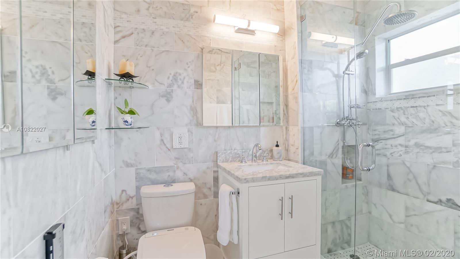 Pristine home conviniently located just a short walk to the beach and Surfside center, North Beach Recreational Park and Bay Harbour Shops. Spacious 3 bed / 2 bath home with open flowing split floor plan with tons of natural light. A fully renovated gourmet style kitchen with all wood, soft close cabinets. An intimate master bedroom featuring a walk in closet and brand new en suite marble bathroom with multi-head spa shower and estate glass shower door. Fully renovated second bath, smooth ceilings, dimmer switches thru out, security system, tankless water heater, full roof replacement in 2015. Fully fenced and private back yard with tropical landscaping and automatic sprinkler system. Fully functioning garage has been insulated and includes ample storage and travertine stone floors.