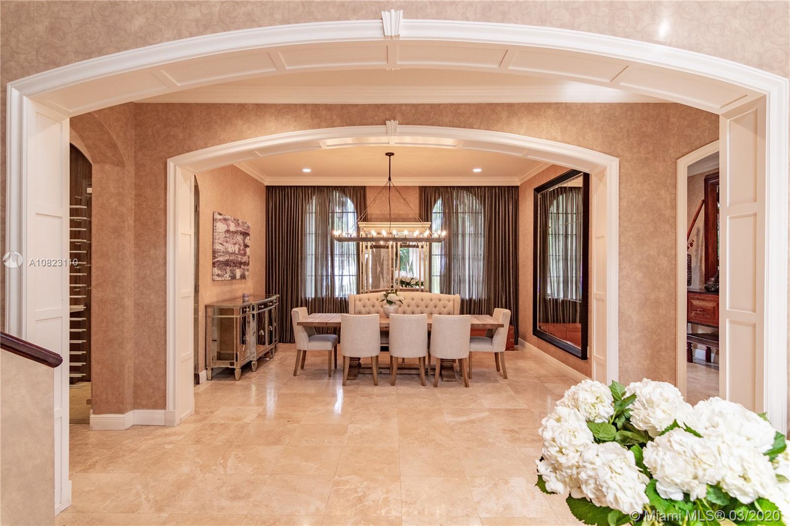Tastefully appointed Mediterranean estate in the Bay Harbor Islands only two blocks from the beach! The voluminous high ceilings are striking and give a grand impression upon entering the 5 bedrooms home. New modern white kitchen with separate entertaining bar & wine cellar. The second floor was renovated with new floors and AC. Live the Florida lifestyle and relax in your backyard with pool and spacious covered space for shaded entertaining and BBQ. Enjoy manicured landscaping and tropical gardening from balconies facing the front and backyard. Great neighborhood for families. Excellent location with world-famous Bal Harbour Shops, Publix, "A" rated school , and community centers within walking distance. 24 hour notice is encouraged. Two car garage.