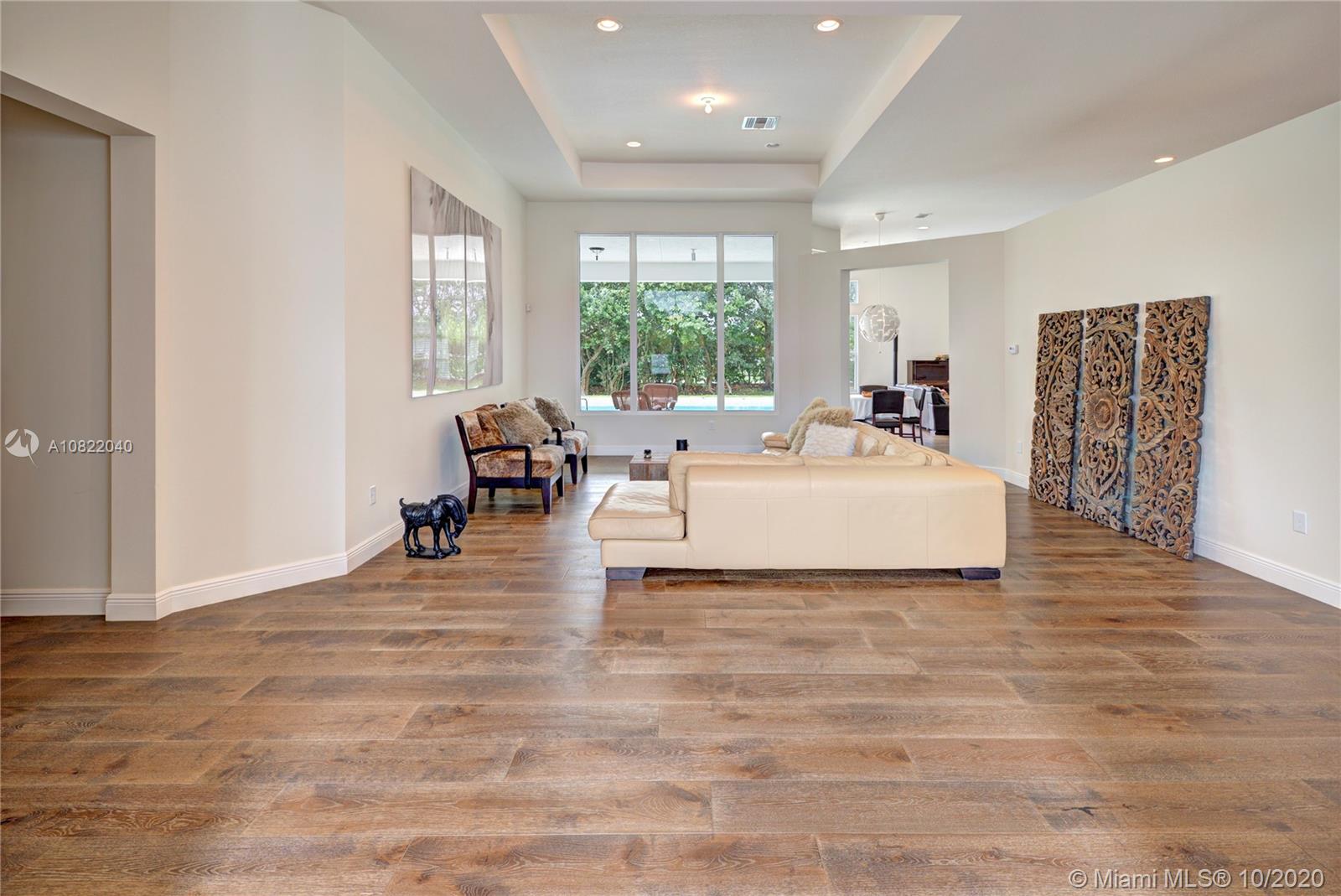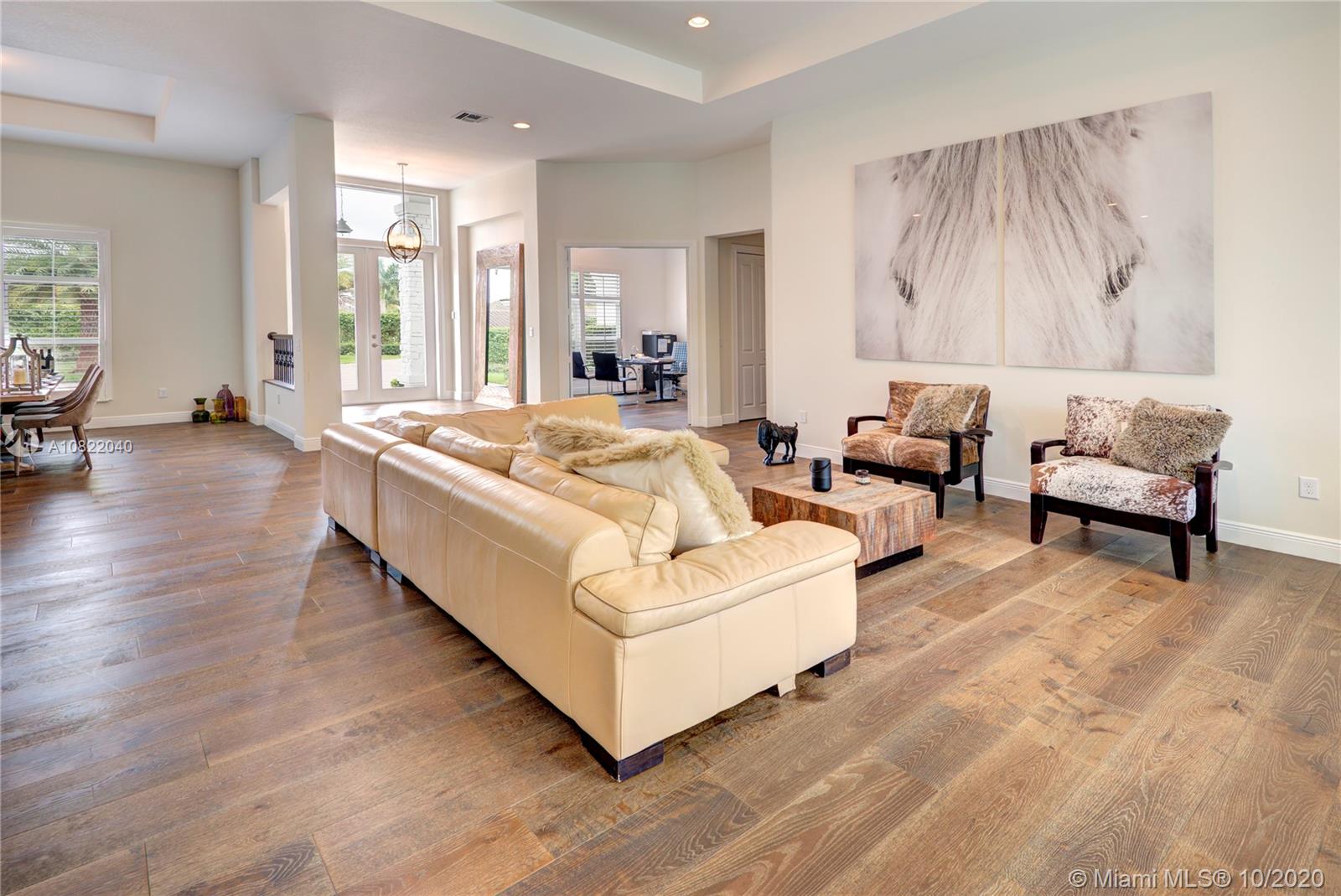 SPECTACULAR 5 BEDROOM 5.5 BATH + PLAYROOM or GYM + OFFICE Built 2016. Indulge yourself in this single-story gem situated on a builder’s acre, private fenced and gated in the sought after, exclusive banquet community of Woodbridge Ranches. this 5,000+ square-foot FEATURING WATER RESISTANT NATURAL WOOD FLOORING, PLANTATION SHUTTERS, IMPACT WINDOWS AND DOORS, MODERN WHITE KITCHEN WITH QUARTZ COUNTER TOPS AND ISLAND, STAINLESS STEEL APPLIANCES, SINGLE BASIN FARMHOUSE SINK. HUGE MASTER CLOSETS, ALL LARGE EN-SUITE BEDROOMS. (2) A/C UNITS, W/H, Tankless Water Heater. SALT WATER POOL AND SYNTHETIC GRASS MESH IN PAVER POOL DECK AND SO MUCH MORE. THIS EXCLUSIVE DAVIE NEIGHBORHOOD CLOSE TO CLEVELAND CLINIC, GREAT SCHOOLS, SHOPPING AND SHORT DISTANCE TO MAJOR HGWYS. The garage accommodates 3 cars.