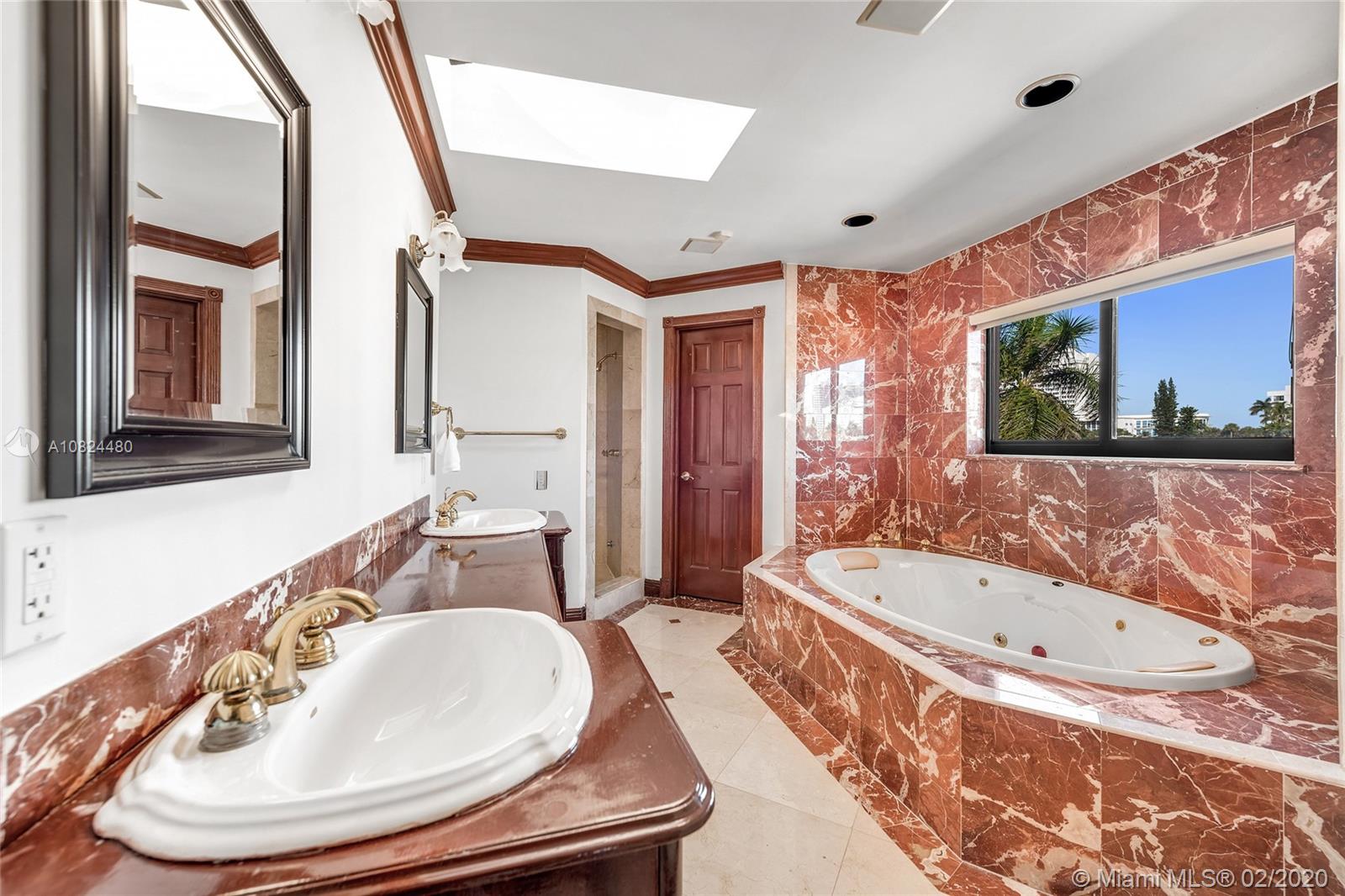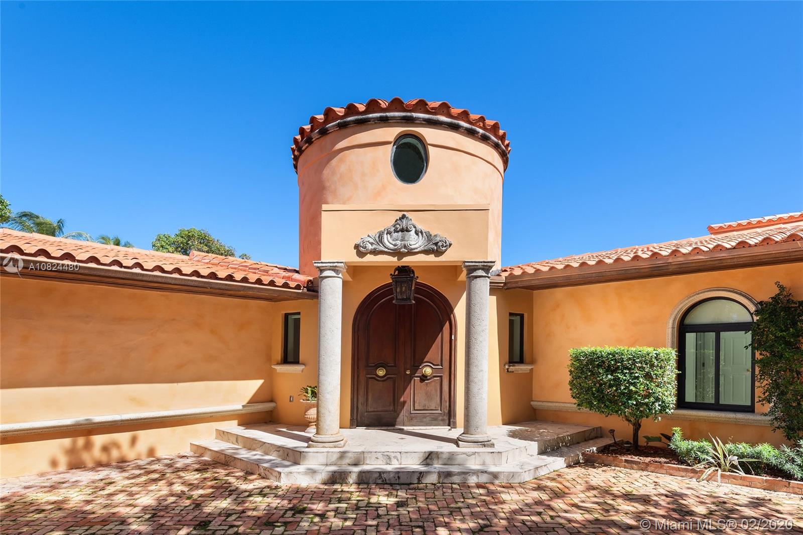 This 2-story Mediterranean waterfront home on exclusive Pinetree Drive is a must see. The 4BR/5+1BA home features fine marble floors, and sits on lush 11,954 SF lot w/4,443 ADJSF of interior space. An open foyer greets w/ circular rotunda ceiling, large living room space with a fireplace & spacious private dining & family/media rooms each w/direct access to the large pool deck. The open kitchen sports a granite center island, counter tops/backsplash, top-of-the-line appliances & private breakfast area. The 2nd floor principal suite has a balcony that overlooking the pool & Intracoastal Waterway, large bathroom w/sunken spa tub and steam shower.